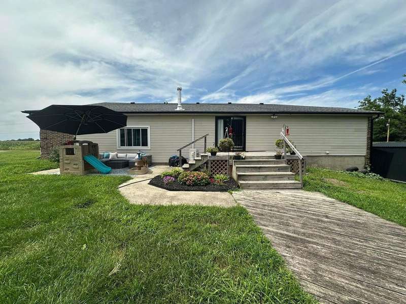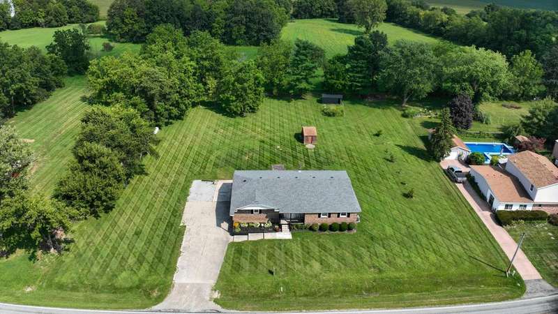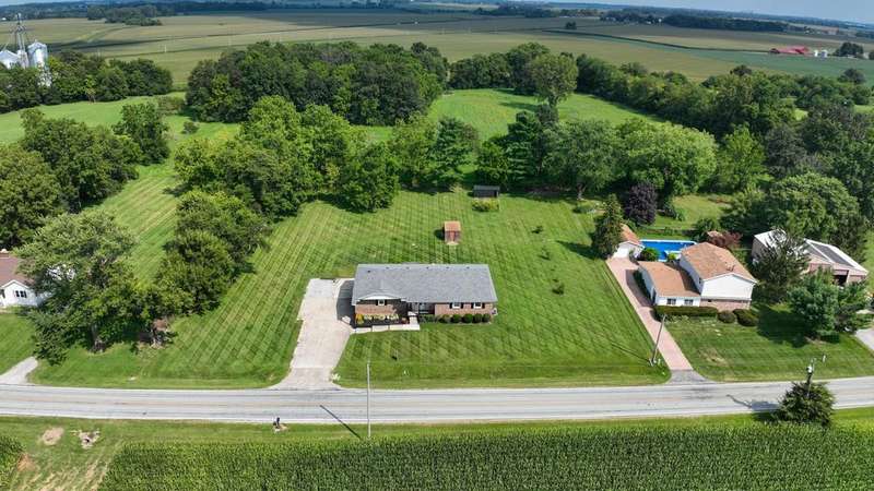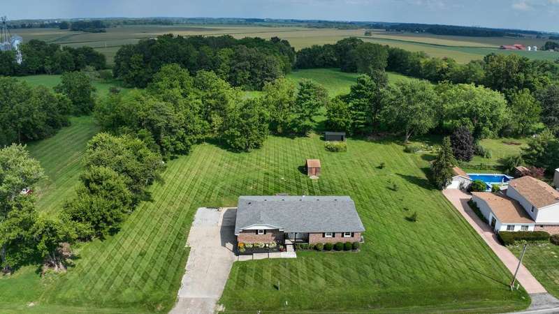HAPPINESS can be found in 9.23 acres! This property has it all! 4 parcels totaling just under 10 acres and ready for your ADVENTURES. Welcome home to this well-maintained brick ranch with tons of STORAGE space and many updates. The gas fireplace will greet you in the living room and you'll flow into the hub of the home with an OPEN KITCHEN to the dining and family room where you'll appreciate a woodburner this winter! French doors open to the DECK and awesome views of the property. Laundry is just off the dining as well as the garage with storage, storage and storage! 4H projects? Car projects? Woodworking? Gardening? Lots of room and possibilities to enjoy all the things! 3 bedrooms and 2 UPDATED full baths including master en suite with whirlpool tub and double vanity. So many updates to this home, new gutters and shutters (25), partial roof (21), iron filter (21), whole house water filtration (23), windows, well liner, lines and tank (10). Updated flooring throughout. Lots of natural light! Home includes appliances - range, frig, dishwasher, microwave. Howard Hanna exclusive MONEY BACK GUARANTEE! See this one fast!!!