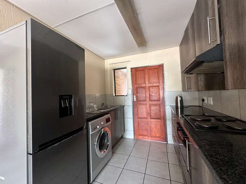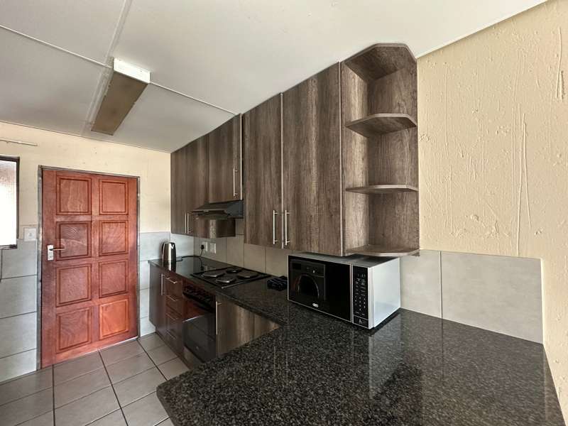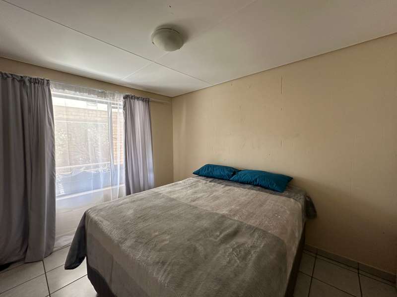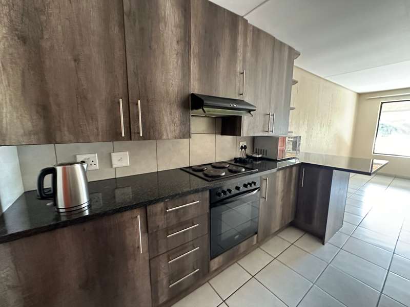 This lovely 65m2 first floor apartment in Ashanti Villas consists of: - 2 bedrooms with built in cupboards - 1 bathroom - Spacious lounge area - Modern kitchen with a built in oven, hob and extractor - Massive balcony - 1 carport and ample visitors parking - Communal kids play area - 24 hour security