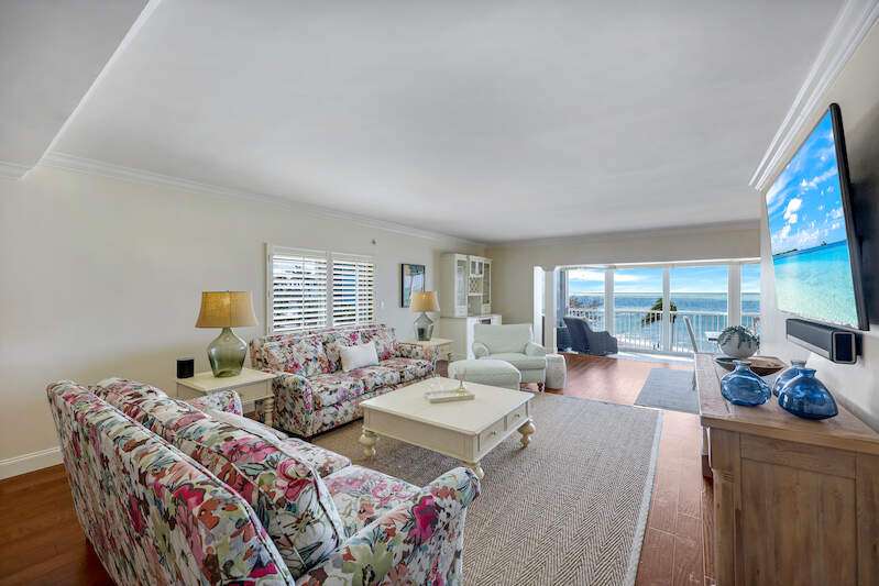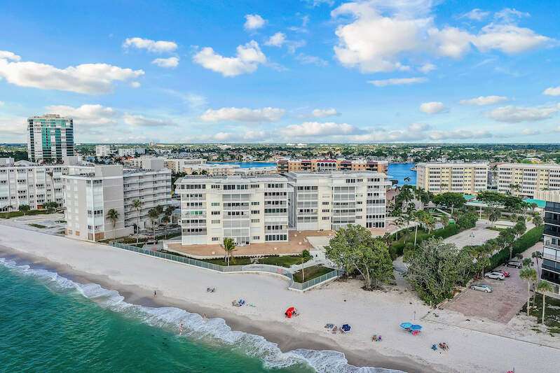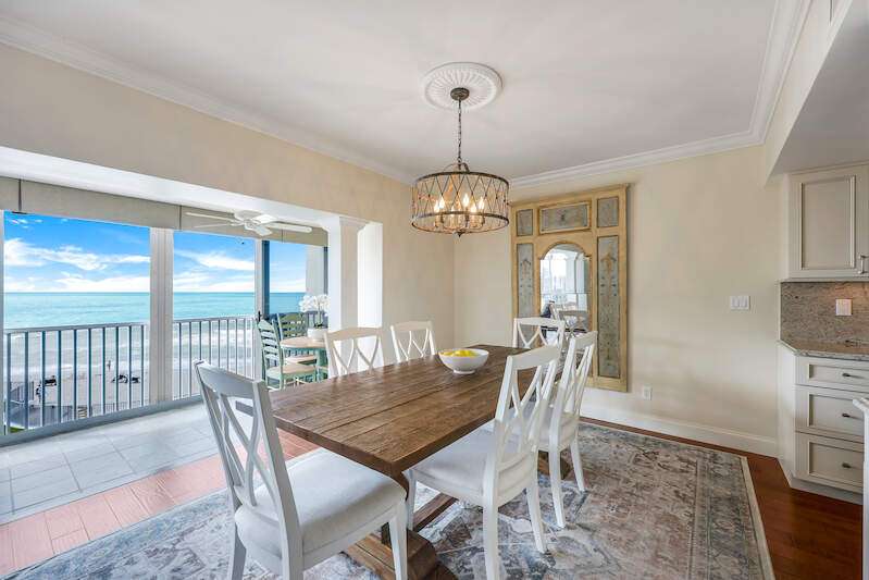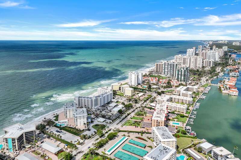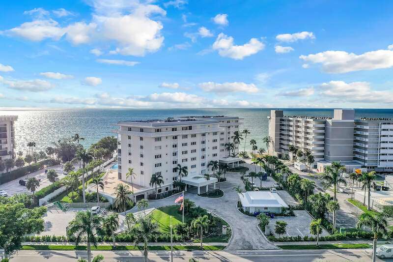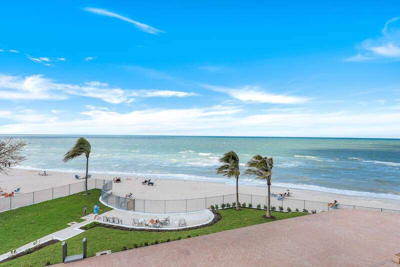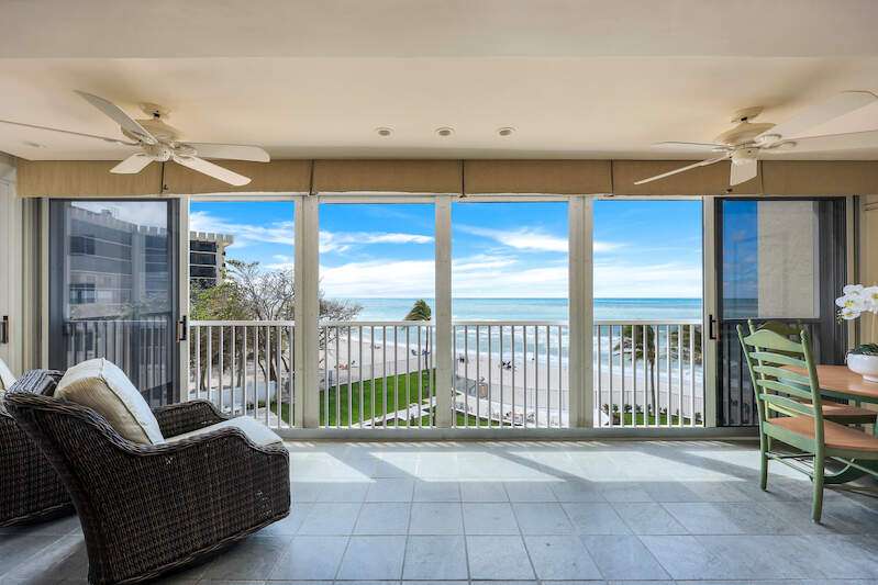 Welcome to Dolphin View ~ Sophisticated Boutique Beachfront Living. Wake up to the soothing sounds of the Gulf and take in breathtaking panoramic views from this tastefully updated beachfront residence. Nestled in the prestigious Moorings neighborhood, this rare gem offers an elevated coastal lifestyle just steps from the shore, with exclusive concierge services ensuring effortless luxury. Offered at pre-pandemic pricing, this home presents an exceptional value as the best-priced beachfront property on the market. From its beachside vantage, enjoy unobstructed views of the Gulf, creating a front-row seat to mesmerizing sunsets. Situated in an exclusive, low-density community, residents benefit from private beach access and on-site management, ensuring an intimate and tranquil retreat. Positioned in the coveted 3-stack location of the West Tower, this residence boasts one of the most sought-after floor plans, designed for seamless comfort while hosting and entertaining. The spacious and open layout flows effortlessly into an expansive lanai-an ideal setting for morning coffee or evening cocktails against a stunning coastal backdrop. Three luxurious master suites each feature en-suite bathrooms and custom-built designer closets, offering the ultimate in privacy and comfort. Resort-style boutique amenities enhance the experience, including a heated pool, spa, fitness center, and an elegant social lounge. Located just minutes from Venetian Village, 5th Avenue, and Waterside Shops, the home provides easy access to fine dining, upscale shopping, and luxury boutiques. Indulge in Naples' renowned culinary scene, where exceptional restaurants offer everything from fresh seafood to gourmet international cuisine, all just moments from your doorstep. This rare end-unit combines elegance, comfort, and exclusivity with refined designer finishes, ample storage, and under-building parking-all completely move-in ready. Now available at an exceptional value, this is a rare opportunity to own a sophisticated beachfront residence in one of Naples' most coveted coastal communities. Don't miss your chance to experience the ultimate in beachfront luxury. The association owns the land.