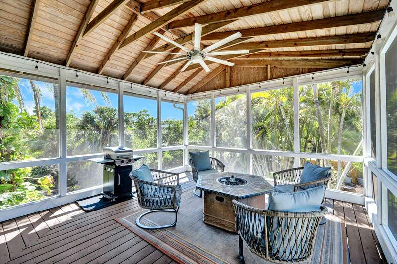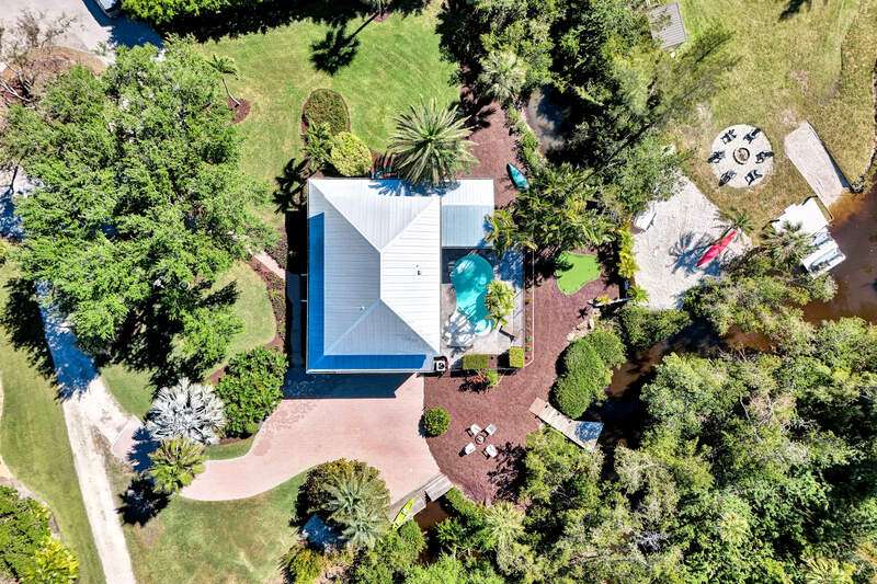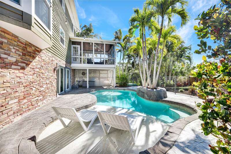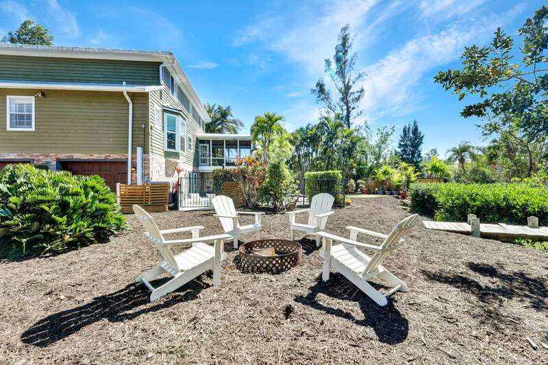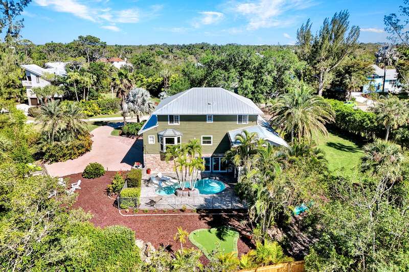 Old Florida-Style charm defines this 3+ bedroom pool home situated on an oversized waterfront lot on a cul de sac , private pool, putting green, and fire pit. Located in the highly sought after Hendry Creek Community. Kayak, jet ski or take your fishing skiff right from your backyard dock! Large rooms, a wrap-around porch and an additional screened in porch make this idyllic property perfect for family living and entertaining. The property features beautiful hardwood floors, a light-filled living room with fireplace, formal dining room with French doors leading to the screened-in porch, family room, breakfast area and updated kitchen, and 1/2 bath on the first floor. Upstairs includes the primary suite with sitting room and en suite bath, two additional bedrooms, an additional full bath and laundry room. The ground level offers an additional 415 square feet of air-conditioned living with a full bathroom, and two additional large rooms. Sliding doors lead to the to the outdoor spaces which make this property a true waterfront gem, with custom pool, dock, kayak launch, and large yard. A private oasis on Hendry Creek, cruise the short boat ride through the mangroves to the open Gulf water. The idyllic setting of this property is hard to find. Hendry Creek is a low HOA neighborhood that features a community boat dock & tennis courts.