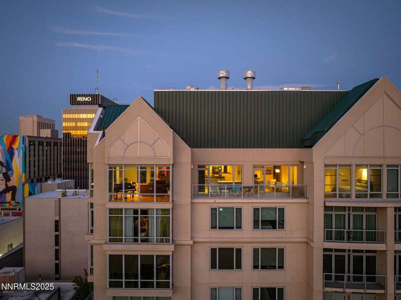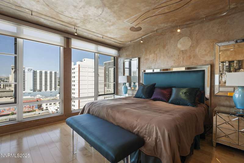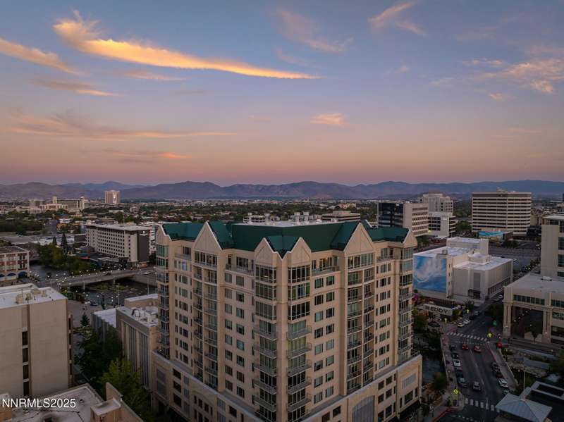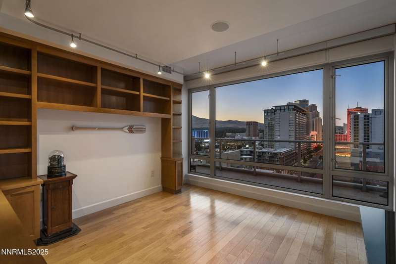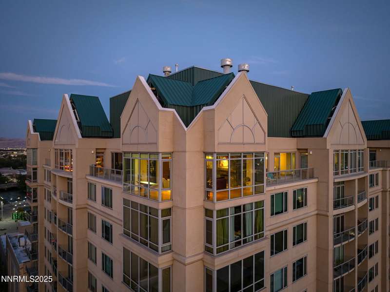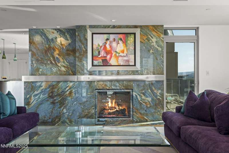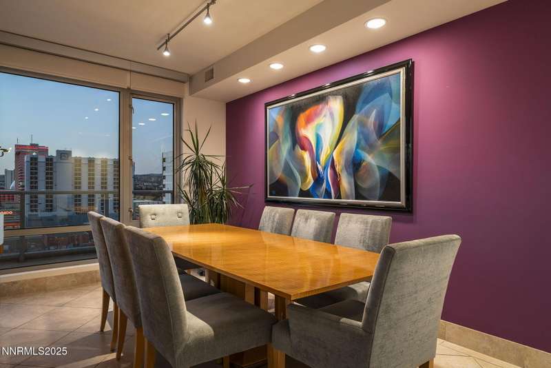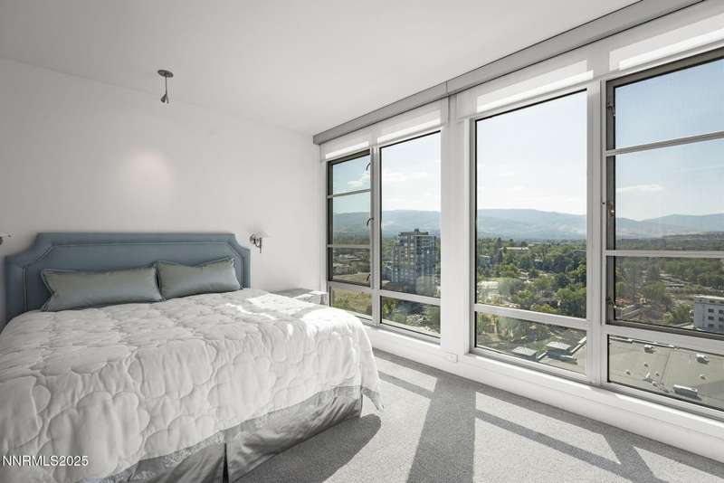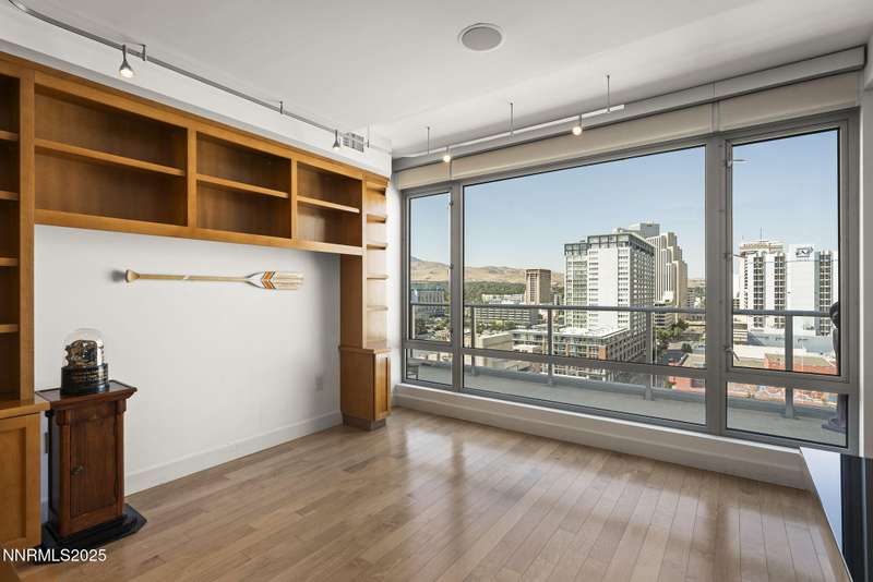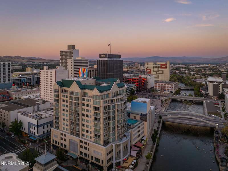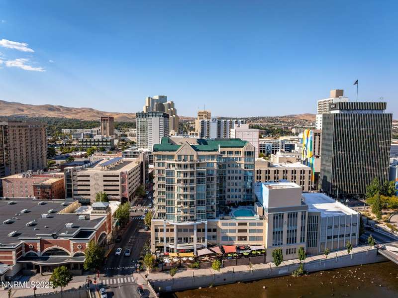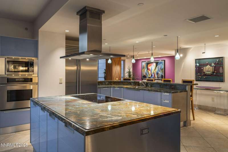 Where space meets sky: this penthouse at The Palladio offers a rare combination of size, privacy, and views seldom seen in downtown Reno. Available for the first time in nearly 20 years and one of only four penthouses in the building, this 3,066 sq ft residence blends genuine single-family scale with the convenience of lock-and-leave living. The great room at 50 N Sierra St PH13 sets the tone with maple floors, custom wood details, and a fireplace wrapped in striking Blue Louise granite—both a stunning feature and a cozy hearth. Walls of glass reach full height, bringing the horizon indoors and turning sunrises, sunsets, and city lights into part of everyday life. Two terraces extend the living space skyward, showcasing a sweeping panorama from Sierra peaks to the Truckee River and the glowing city lights. The dining room flows seamlessly from this central gathering area. Framed by windows and opening onto the terrace, it's spacious enough for long tables and celebrations, yet warm enough for daily meals. Bathed in natural light, the room invites gatherings to move easily between indoors and outdoors, with the city shimmering as a backdrop. The kitchen combines sleek design with professional-grade functionality. Italian Scavolini cabinets in a rare periwinkle hue pair with polished countertops and statement lighting. A Thermador induction cooktop, double ovens, a Miele dishwasher, and a vented hood deliver precision for the home chef. A walk-in pantry adds utility, while the oversized counter-height bar and bright breakfast nook support everything from quick mornings to dinner parties that linger. Beyond the kitchen, a dedicated wine and storage room highlights the home's exceptional livability. Here, a Sub-Zero dual-zone refrigerator holds 147 bottles, complemented by shelving and cabinetry, proving that penthouse living can offer the same capacity and practicality as a single-family home. Each ensuite bedroom is distinct. The primary suite combines comfort with elegance: heated marble floors, dual vanities, and a walk-in shower paired with a custom closet system. Wide windows frame the downtown skyline, anchoring the room in its urban setting. The secondary suite provides a peaceful retreat with a soaking tub, steam shower, dual vanities, and generous closet space. Expansive windows open to mountain views, filling the room with natural beauty. Beyond the main living areas, the home is designed for versatility and ease. A dedicated office offers built-in storage and abundant natural light, ideal for remote work or daily tasks. The laundry room features a side-by-side washer and dryer, deep cabinets, a utility sink—a practical space with thoughtful details. A powder bath with a vessel sink and rich finishes leaves a striking impression for guests. Throughout, motorized shades, integrated lighting controls, custom closets, and built-ins create a home that is both effortless and elegant. Life at The Palladio balances privacy with connectivity. With only 92 residences, the building was designed from the ground up as condominiums, featuring higher ceilings, true outdoor terraces, and thoughtful layouts. Residents enjoy secured entry with camera monitoring, two garage parking spaces accessible via fob, dedicated storage, and Reno's only infinity-edge pool suspended above the Truckee River. From this address, the best of the city is at your doorstep: Pioneer Center performances, river festivals, museums, Midtown dining, and café culture. Yet at home, quiet and privacy prevail. For buyers seeking a lock-and-leave lifestyle without sacrificing space or storage, this penthouse offers both. Beyond square footage or finishes, this residence grants a rare opportunity to live with mountain, river, and city views converging at your windows—a downtown home crafted for both ease and impact. Claim your place in Reno's skyline and experience a home where every horizon belongs to you.