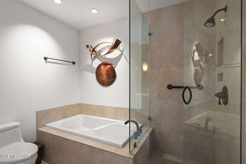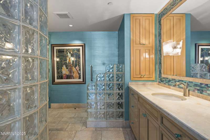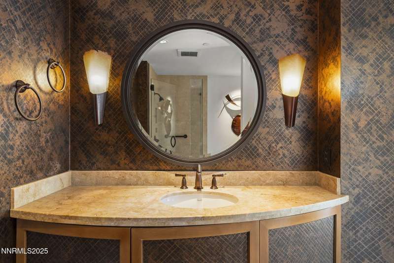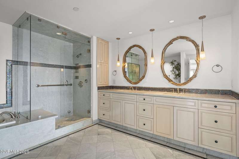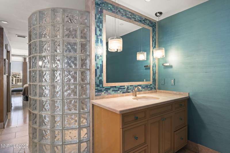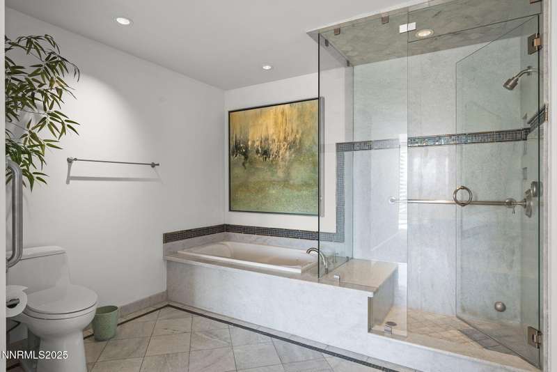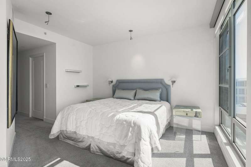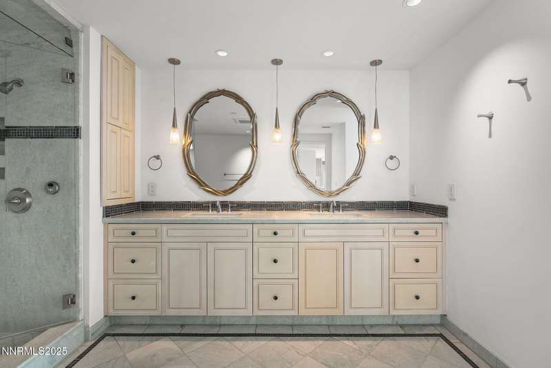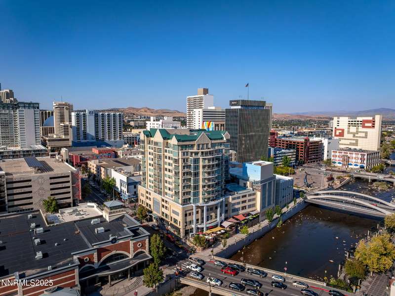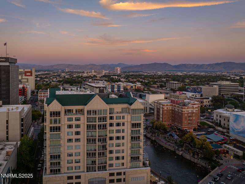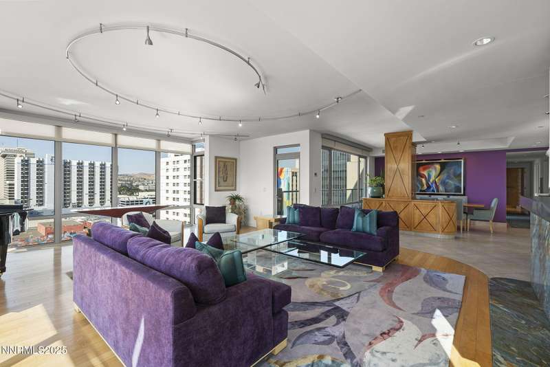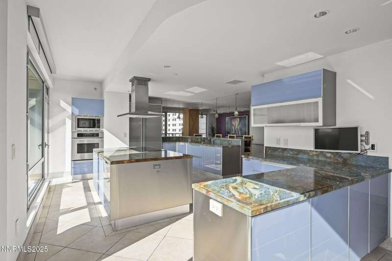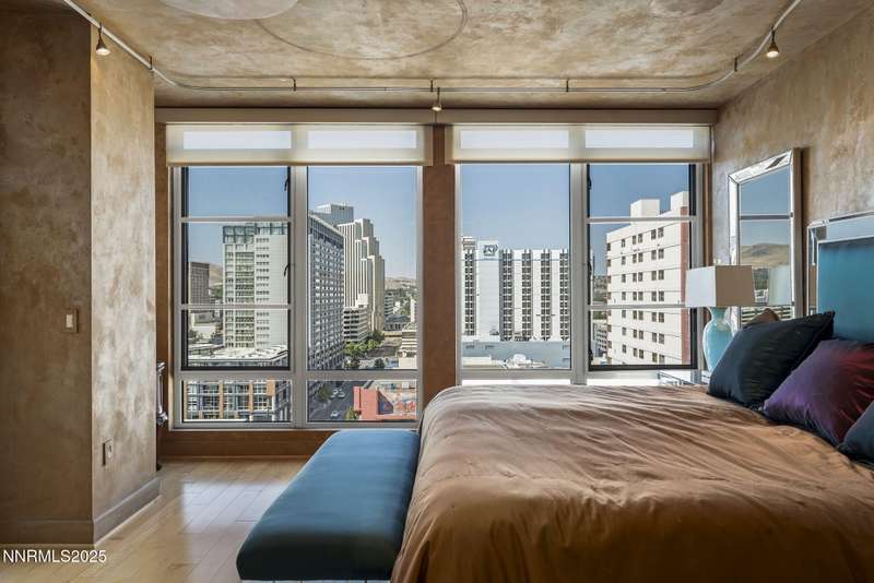 Where space meets sky: this penthouse at The Palladio offers a rare combination of size, privacy, and views seldom seen in downtown Reno. Available for the first time in nearly 20 years and one of only four penthouses in the building, this 3,066 sq ft residence blends genuine single-family scale with the convenience of lock-and-leave living. The great room at 50 N Sierra St PH13 sets the tone with maple floors, custom wood details, and a fireplace wrapped in striking Blue Louise granite—both a stunning feature and a cozy hearth. Walls of glass reach full height, bringing the horizon indoors and turning sunrises, sunsets, and city lights into part of everyday life. Two terraces extend the living space skyward, showcasing a sweeping panorama from Sierra peaks to the Truckee River and the glowing city lights. The dining room flows seamlessly from this central gathering area. Framed by windows and opening onto the terrace, it's spacious enough for long tables and celebrations, yet warm enough for daily meals. Bathed in natural light, the room invites gatherings to move easily between indoors and outdoors, with the city shimmering as a backdrop. The kitchen combines sleek design with professional-grade functionality. Italian Scavolini cabinets in a rare periwinkle hue pair with polished countertops and statement lighting. A Thermador induction cooktop, double ovens, a Miele dishwasher, and a vented hood deliver precision for the home chef. A walk-in pantry adds utility, while the oversized counter-height bar and bright breakfast nook support everything from quick mornings to dinner parties that linger. Beyond the kitchen, a dedicated wine and storage room highlights the home's exceptional livability. Here, a Sub-Zero dual-zone refrigerator holds 147 bottles, complemented by shelving and cabinetry, proving that penthouse living can offer the same capacity and practicality as a single-family home. Each ensuite bedroom is distinct. The primary suite combines comfort with elegance: heated marble floors, dual vanities, and a walk-in shower paired with a custom closet system. Wide windows frame the downtown skyline, anchoring the room in its urban setting. The secondary suite provides a peaceful retreat with a soaking tub, steam shower, dual vanities, and generous closet space. Expansive windows open to mountain views, filling the room with natural beauty. Beyond the main living areas, the home is designed for versatility and ease. A dedicated office offers built-in storage and abundant natural light, ideal for remote work or daily tasks. The laundry room features a side-by-side washer and dryer, deep cabinets, a utility sink—a practical space with thoughtful details. A powder bath with a vessel sink and rich finishes leaves a striking impression for guests. Throughout, motorized shades, integrated lighting controls, custom closets, and built-ins create a home that is both effortless and elegant. Life at The Palladio balances privacy with connectivity. With only 92 residences, the building was designed from the ground up as condominiums, featuring higher ceilings, true outdoor terraces, and thoughtful layouts. Residents enjoy secured entry with camera monitoring, two garage parking spaces accessible via fob, dedicated storage, and Reno's only infinity-edge pool suspended above the Truckee River. From this address, the best of the city is at your doorstep: Pioneer Center performances, river festivals, museums, Midtown dining, and café culture. Yet at home, quiet and privacy prevail. For buyers seeking a lock-and-leave lifestyle without sacrificing space or storage, this penthouse offers both. Beyond square footage or finishes, this residence grants a rare opportunity to live with mountain, river, and city views converging at your windows—a downtown home crafted for both ease and impact. Claim your place in Reno's skyline and experience a home where every horizon belongs to you.