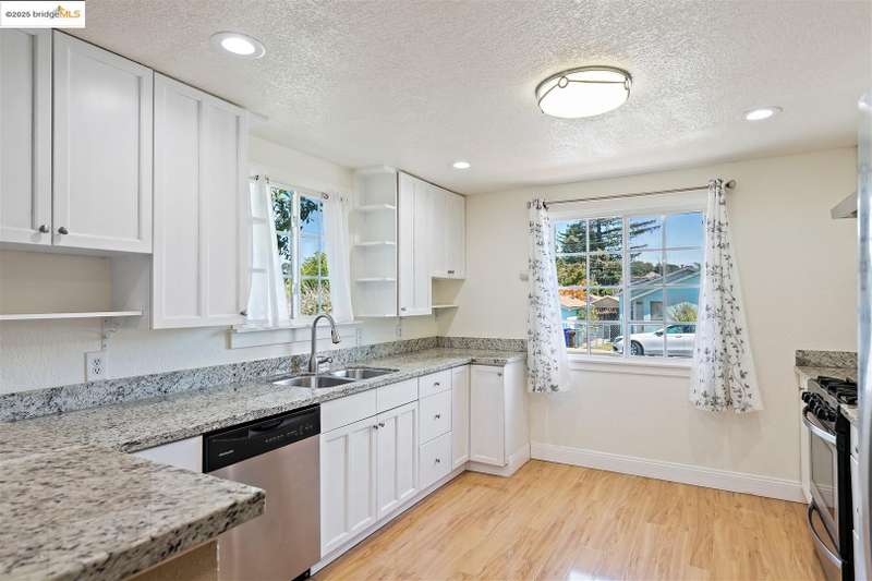 Sweet 3 bedroom/2 baths ranch-style home has a nice living room with a fireplace and hardwood floors. There is a spacious separate dining room opening to an updated kitchen. The bedrooms are good-sized and the primary bedroom has its own bathroom. The bathrooms are updated. Separate garage and an upslope terraced yard.