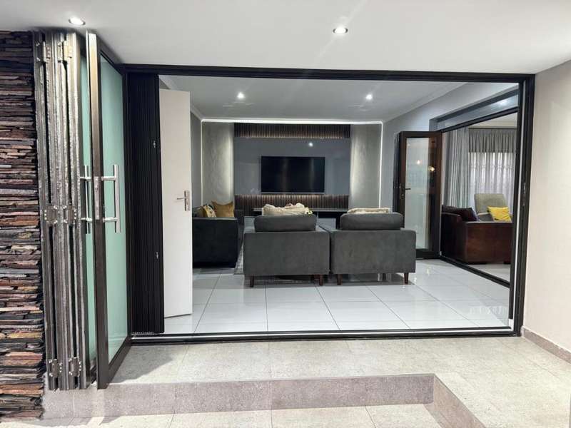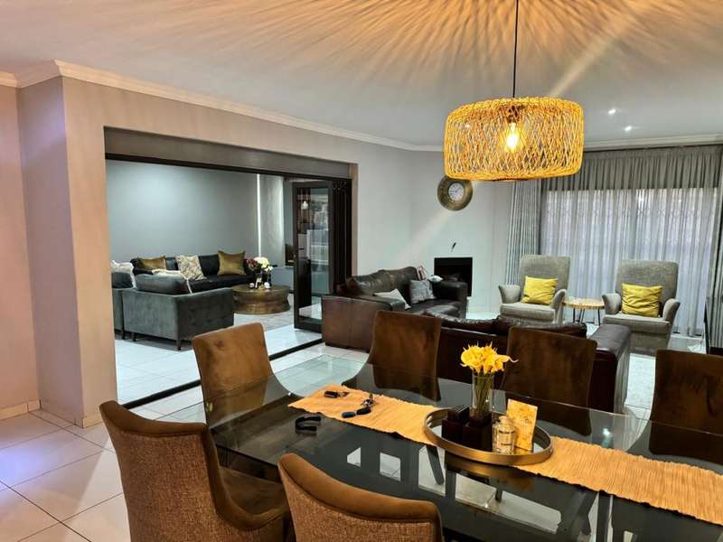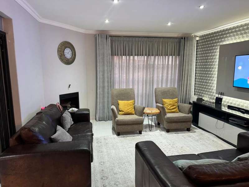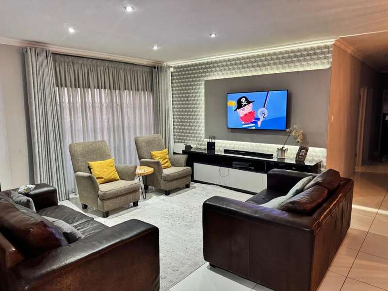 Welcome to this stunning and spacious extended 4-bedroom family home, located in one of the most tranquil neighborhoods in Secunda. As you enter the property, you are greeted by beautifully manicured landscaping and a long driveway that leads to a double-door garage featuring sleek aluminum frames and glass doors. The garage is generously sized, complete with built-in cupboards, offering ample storage. Step inside, and you?ÇÖll find a tastefully designed sitting area, complete with aluminum folding doors that seamlessly connect to a second sitting room. This space opens up to the heart of the home: an expansive open-plan dining area that flows effortlessly into the modern kitchen. The kitchen is a chef's dream, boasting plenty of cupboard space, granite countertops, and a convenient scullery with outdoor access. The sleeping quarters are thoughtfully located down a long passage, where you?ÇÖll find four spacious bedrooms, all featuring built-in cupboards. The family bathroom is fully equipped to cater to your needs. The master bedroom is a sanctuary of its own, complete with an en-suite bathroom, additional cupboard space, and luxurious finishes. This home is equipped with practical features such as a JoJo water tank, an advanced alarm system, and electric fencing for added security. To the rear of the property, you'll find a lush, green lawn, perfect for enjoying those warm family summer days. This property is the perfect blend of modern living, comfort, and security?Çöideal for families seeking peace and space in Secunda.