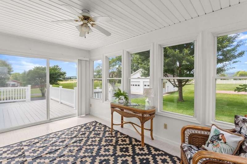 Welcome to the Shenandoah Valley in the quaint town of Broadway to this lovingly maintained one-owner home on large level town lot with public water/sewer and a country feel. The covered front porch welcomes you into the spacious and bright foyer with the formal living and dining rooms to the left. Straight ahead is the den with the spacious kitchen and mud room to the left. You will love the bright airy sunroom with access to the large rear deck overlooking the mature back yard with mountain views! Back inside, you will find the primary bedroom with full bath; 2nd bedroom (NE) with a half bath; 3rd bedroom and hall bath. The bedrooms offer new carpet while the main living areas offer new luxury vinyl flooring. The fresh paint creates a bright and cheery atmosphere. There is a double detached garage, only steps away from the rear deck into the large mud room with laundry hookup, utility sink and cabinet space. Convenient to Broadway's amenities that include festivals, parks, shops, restaurants, community center with pool, ballfields, skateboarding, walking trail and more. Near the North Fork of the Shenandoah River, Linville Creek, vineyards and within 2 hours of DC and major airports.