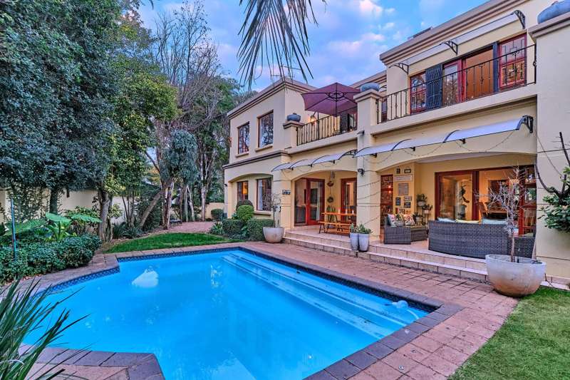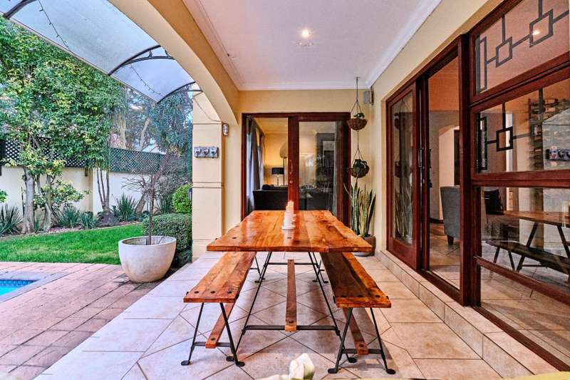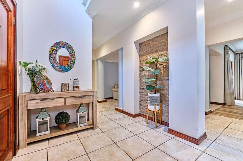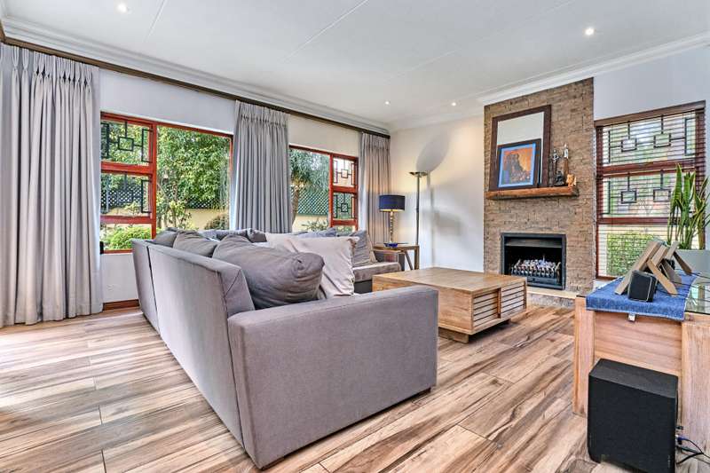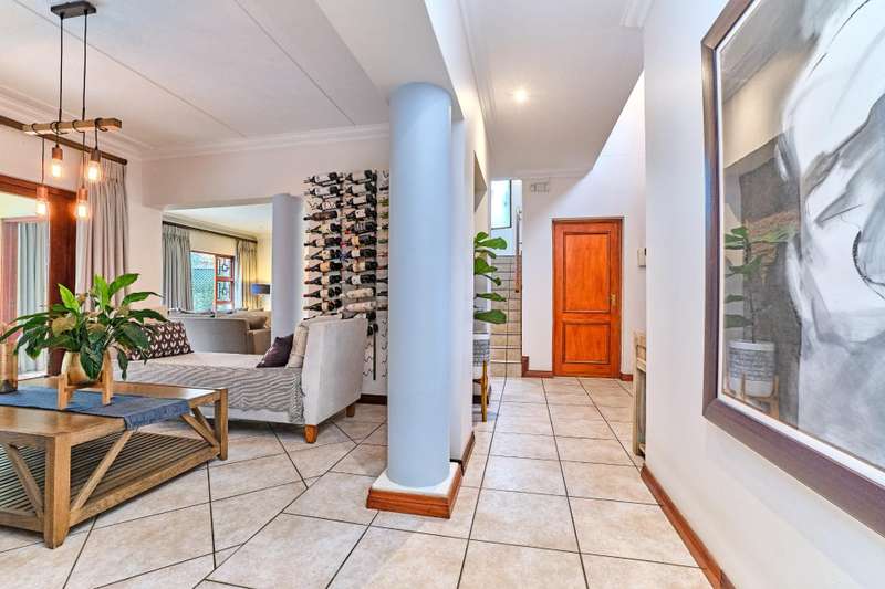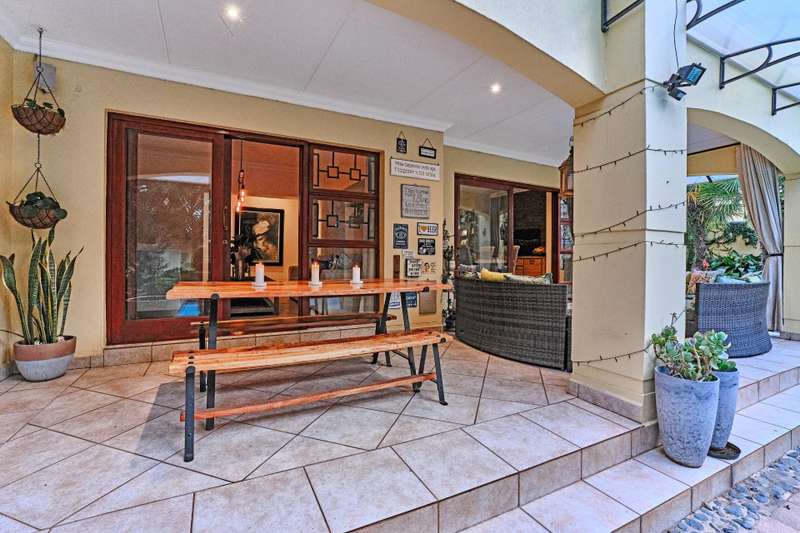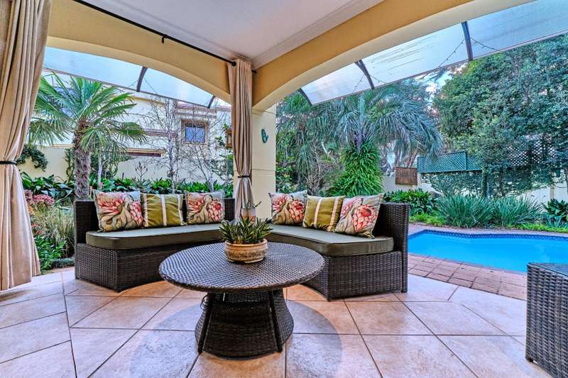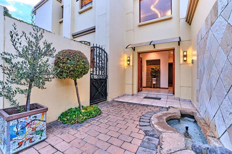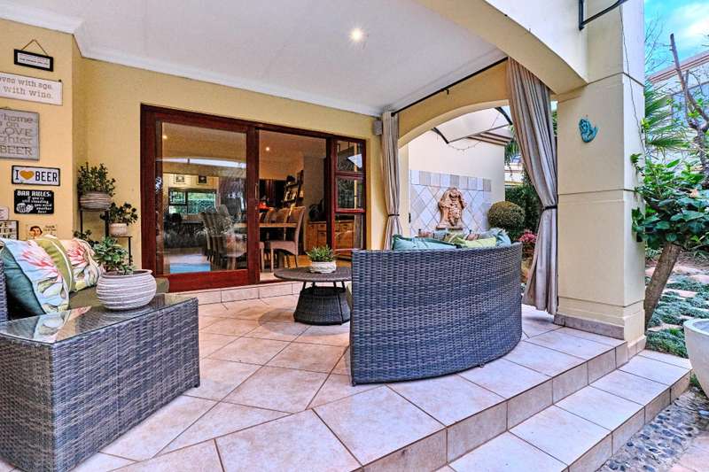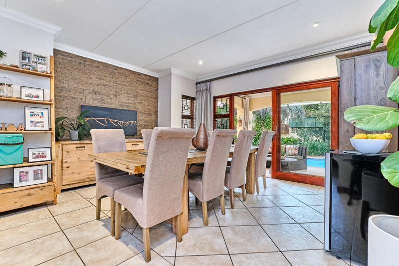 Immaculate Move-In Ready Cluster in Exclusive Secure Estate Seller looking at offers from 4.5M This beautifully maintained cluster home is set in a sought-after, secure complex offering luxury, comfort, and seamless indoor-outdoor living. The spacious open-plan layout includes a lounge with a gas fireplace, a dining area and a well-appointed kitchen with a scullery and premium Smeg gas stove. All reception areas flow effortlessly to a covered entertainment patio overlooking a solar-heated, salt-chlorinated pool and a lushious landscaped garden. Accommodation includes 3 generous air-conditioned bedrooms and 2 full bathrooms finished in elegant Travertine with Hansgrohe fittings. The expansive main suite boasts a large walk-in dressing room offering versatility as a study Additional features include a guest cloakroom, staff accommodation, solar panels and a double automated garage. Set within a 24-hour guarded estate, this home offers secure, upmarket living in a prime location.
