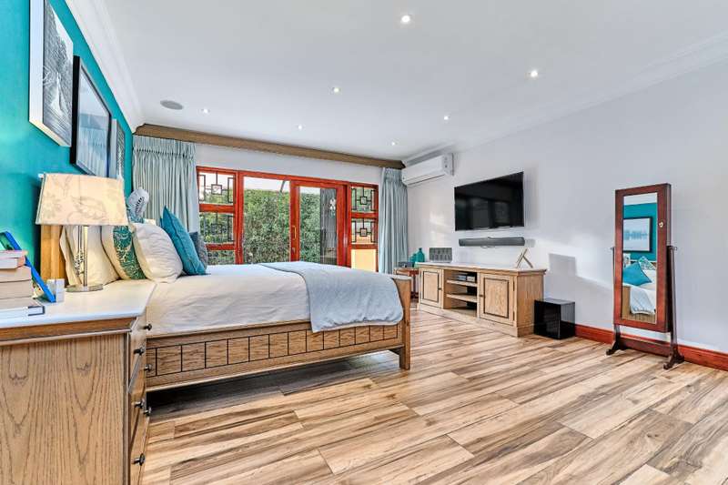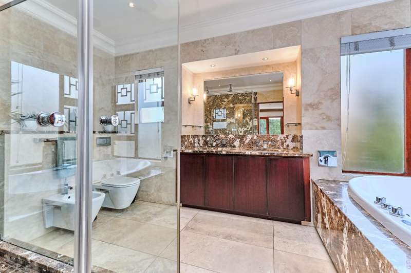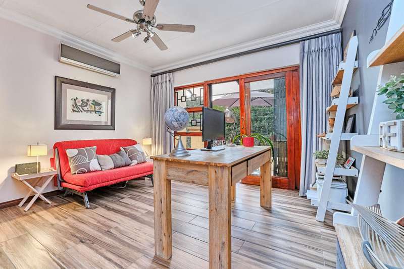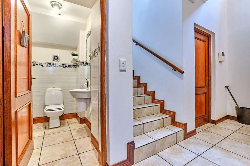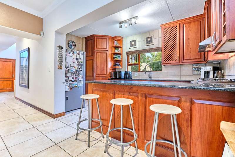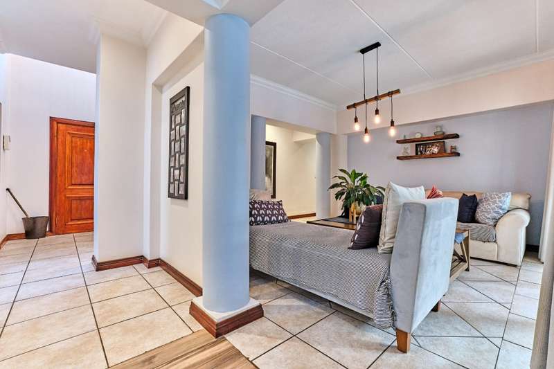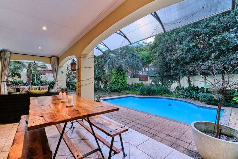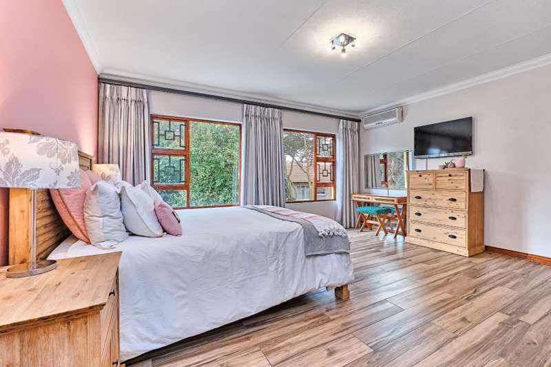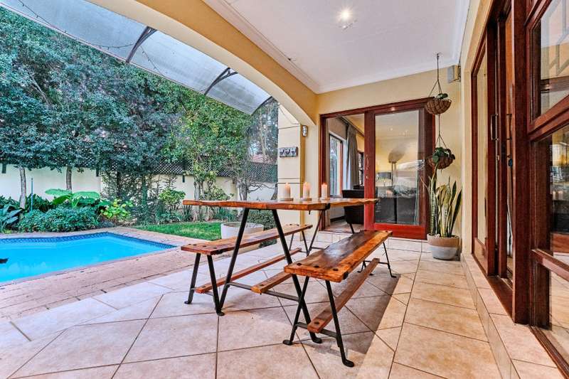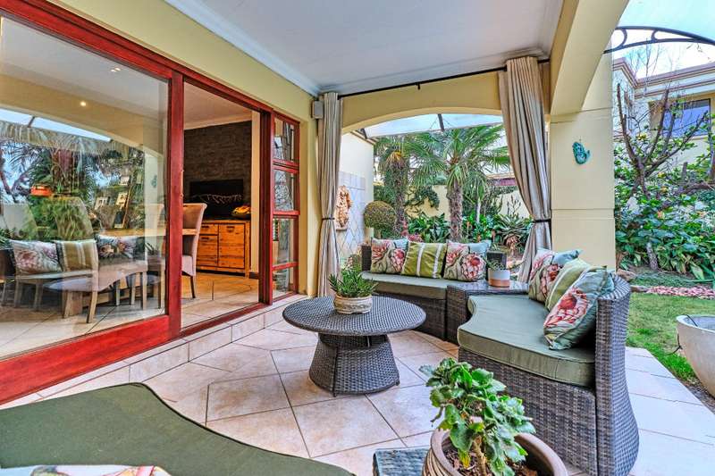 Immaculate Move-In Ready Cluster in Exclusive Secure Estate Seller looking at offers from 4.5M This beautifully maintained cluster home is set in a sought-after, secure complex offering luxury, comfort, and seamless indoor-outdoor living. The spacious open-plan layout includes a lounge with a gas fireplace, a dining area and a well-appointed kitchen with a scullery and premium Smeg gas stove. All reception areas flow effortlessly to a covered entertainment patio overlooking a solar-heated, salt-chlorinated pool and a lushious landscaped garden. Accommodation includes 3 generous air-conditioned bedrooms and 2 full bathrooms finished in elegant Travertine with Hansgrohe fittings. The expansive main suite boasts a large walk-in dressing room offering versatility as a study Additional features include a guest cloakroom, staff accommodation, solar panels and a double automated garage. Set within a 24-hour guarded estate, this home offers secure, upmarket living in a prime location.
