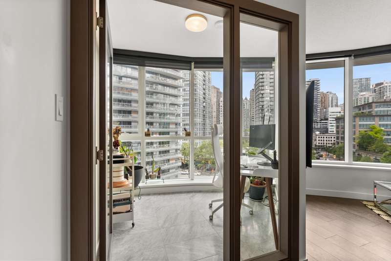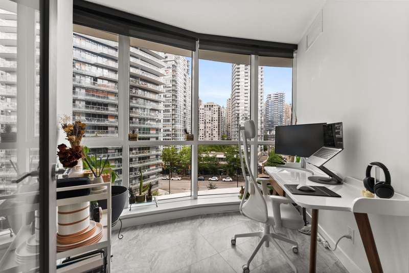 Welcome to 820-68 Smithe Street - a high-design 1 Bed+ Den+ Solarium in One Pacific, where modern luxury meets Vancouver's most electric neighbourhood.Wrapped in floor-to-ceiling windows, this sunlit corner home serves up city views, sleek interiors & serious style. The integrated kitchen is minimalist perfection, while the open-concept layout gives you room to host, unwind or hustle from home in the glass-framed solarium. Retreat to your serene bedroom. Turn the den into a walk-in closet, guest space or studio. Whatever your lifestyle, this space flexes with you. The amenities? Think resort-level: a glass bottom outdoor pool, hot tub, sauna, rooftop terrace with fire pits and BBQs, elegant lounge,& 24hour concierge. Steps to the Seawall, Yaletown & the best of the city.