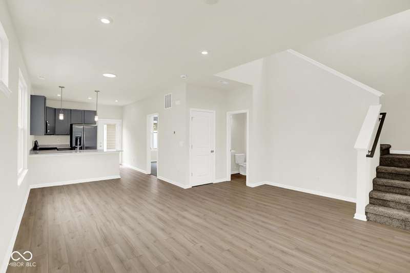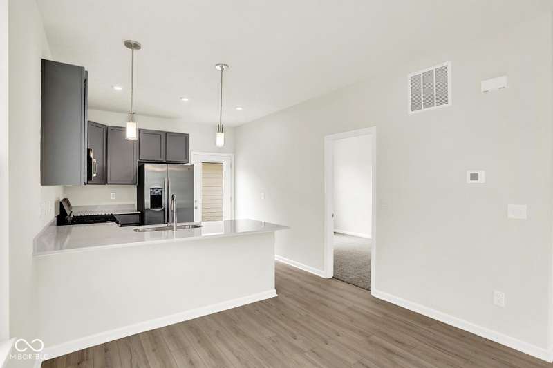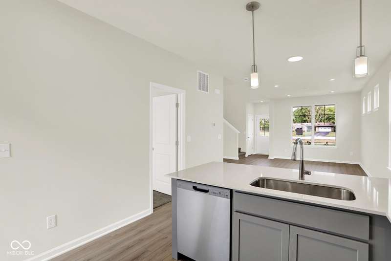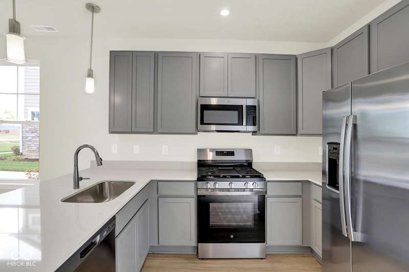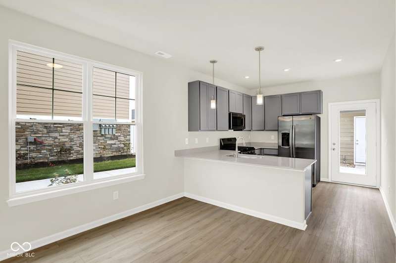 This 3 bedroom Adler is available now! The open concept End-Unit, with main floor w/9' ceilings offers plenty of natural light and the perfect space to make your own. You'll love your new kitchen w/42" White cabinets, quartz countertops, and kitchen appliances including the refrig. The main floor bedroom and a walk-in shower in the powder bath add convenience for a guest room, family member, or home office space. The 2nd floor features a generous sized owners' bedroom with walk in closet, bathroom and a 2nd bedroom. Includes Luxury vinyl plank flooring throughout the main living area and upgraded carpet on the 2nd floor. A Ring doorbell, and low maintenance landscaping w/irrigation make this home complete. Enjoy peace of mind with the 10-year structural and 4-year workmanship on the roof warranties along with an industry best customer care program. Visit Talon Woods to view this floor plan. Highlights: Low Maintenance Living ~ Desirable End-Unit ~ First Floor Bedroom ~ Private Courtyard ~ 2nd Floor Laundry ~ 2-Car Garage ~ Stainless Steel Kitchen Appliances & Quartz Countertops ~ Covered Front Porch.