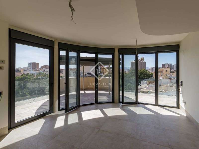 Lucas Fox, the absolute leading company in the sale of luxury properties, is pleased to present this elegant and sophisticated brand new two-bedroom penthouse in the heart of Alameda Principal de Málaga, in the historic centre . The property, located in the most exclusive area of the city, is close to everything you need for your daily life, as well as various leisure and entertainment options. Malaga has now become, without a doubt, the fashionable city in Europe, the city in which leisure and culture are combined like no other. The building, just completed in 2023, has a design that mixes classic and modern architecture, with a very elegant line, slightly staggered and with rounded corners, which make it integrate perfectly into its surroundings. The attic consists of two bedrooms and a bathroom. The main bedroom has an area of 15 m², while the bathroom has authentic luxury finishes. The secondary bedroom , spacious and bright, is also exterior. The living-dining room with the modern open kitchen receives abundant natural light from the large windows and from the impressive 65 m² terrace, which complements the living room, from which you can contemplate all the life of the Alameda Principal. And all this luxury is complemented by an exclusive 52 m² communal terrace, on par with the best chill-out terraces in the city from which you can enjoy the excellent views over Malaga in the best company. The bathroom has authentic luxury finishes, with large-format marble and porcelain pieces. In addition, the apartment has areas aerothermics air conditioning, fine woods, electric shutters and double glazing with brands such as Tiemme, Porcelanosa or Schuco. The building has garages and storage rooms for greater comfort for a price of €50,000 each garage and €30,000 each storage room. Some of the photographs are rendered and may not match the advertised floor type. Contact for more information.