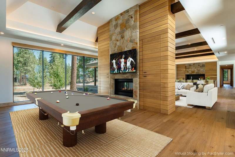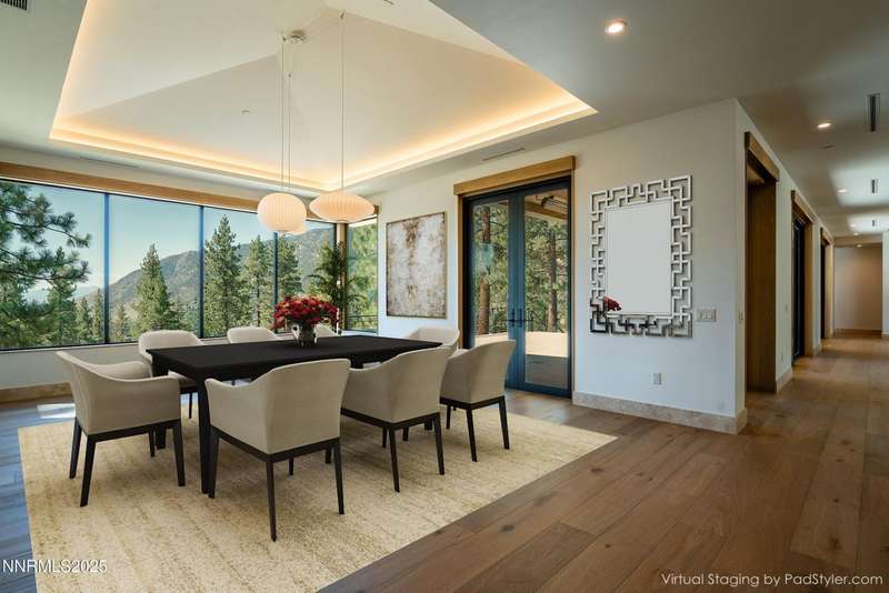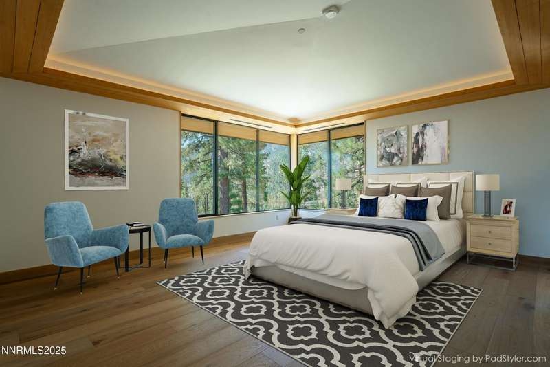 Perched high above the Carson Valley, where the air is crisp and the views seem to stretch forever, sits a single-story mountain retreat unlike any other. Tucked behindthe private gates of Clear Creek Tahoe, this 1.88-acre estate blends the serenity of nature with refined elegance. The moment you step inside, the walls of glass frame sweeping vistas of the valley floor and the rugged peaks of the Sierra mountains. Sunlight floods the 6,448 square feet of thoughtfully crafted living space, where soaring ceilings and open, flowing rooms invite gatherings both grand and intimate. With an expansive 1,000 square foot patio facing south over the Carson Valley, the evening views are endless.Four spacious bedrooms, each with its en-suite bath, promise restful nights and quiet mornings. The heart of the home is built for both comfort and style-high-end finishes, warm natural textures, and seamless indoor-outdoor living make every day feel like a retreat. An expansive wine room, accommodating over 2,000 bottles, is a lavish haven for the true wine aficionado. Downstairs, a 678-square-foot bonus space offers endless potential: a game room for late-night laughter, or a private theater for cozy movie marathons. Life here extends far beyond the walls.*Note - the pictures are virtually staged and for illustrative purposes only.Clear Creek Tahoe offers private golf, scenic hiking trails, and an exclusive lakefront club on the shores of Lake Tahoe-all just minutes from the vibrant heart of Carson City. This is more than a home. It's where luxury meets adventure, where each sunrise feels like a fresh invitation to explore, and every evening ends with the mountains silhouetted against the fading light.