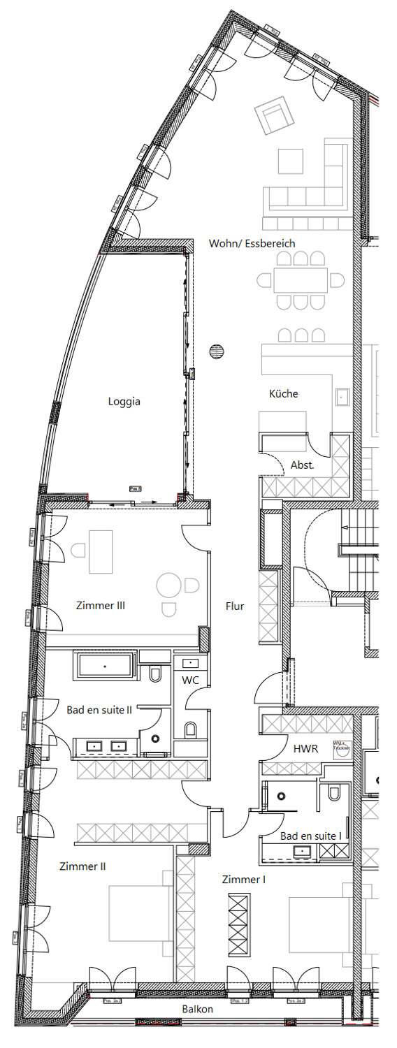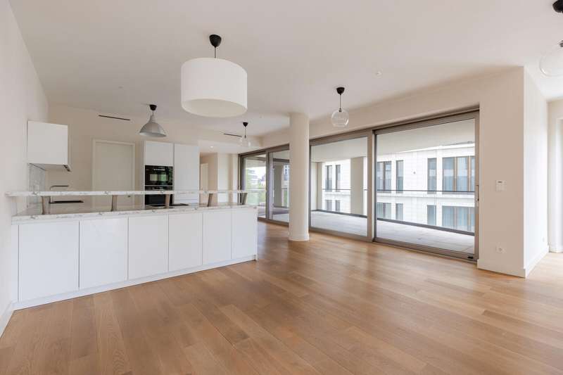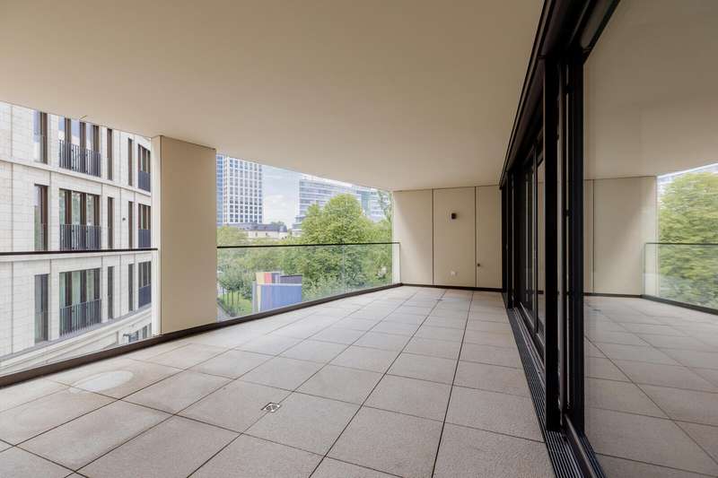 This extraordinary residential ensemble rises in one of Frankfurt's most sought-after addresses, directly on Opernplatz - an architectural masterpiece that combines timeless elegance with modern clarity. The elegant natural stone façade, generous window fronts and recessed loggias give the building an international feel. The view of the adjacent green area as well as the Alte Oper and the historic Opernplatz creates a cosmopolitan living ambience in which urban vibrancy and tranquillity harmonize perfectly. Ready for immediate occupancy, the spacious four-room apartment with approx. 234 m² of living space impresses with its well thought-out room layout: three bedrooms, two luxurious bathrooms and a representative living and dining area with an open designer kitchen offer the highest level of living comfort. A spacious loggia with a view of the greenery invites you to relax and rounds off the elegant living ambience. The harmonious floor plan of the apartment offers generous space for individuality and the highest standards. High-quality oak parquet flooring, modern underfloor heating and light-flooded rooms with a ceiling height of almost 2.90 meters underline the exclusive character. The stylish bathrooms impress with exquisite fittings from renowned brands, fine sanitary ceramics and lovingly coordinated details that guarantee comfort and well-being. An elevator leads directly from the underground car park to the residential floor, ensuring barrier-free access and maximum comfort. Residents also have access to an exceptional service: The renowned five-star superior Sofitel Frankfurt Opera hotel, directly opposite, offers an optional full-service concept that seamlessly integrates luxurious hotel comfort into everyday private life. This exclusive offer is complemented by a free membership to Fitness First Black, which is already included in the scope of services. This exceptional living concept is rounded off by secure parking spaces in the underground garage managed by Q-Park - for a life at Opernplatz that combines luxury, style and urban living comfort at the highest level.