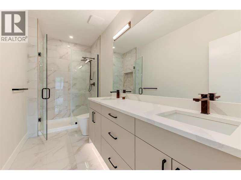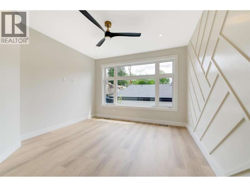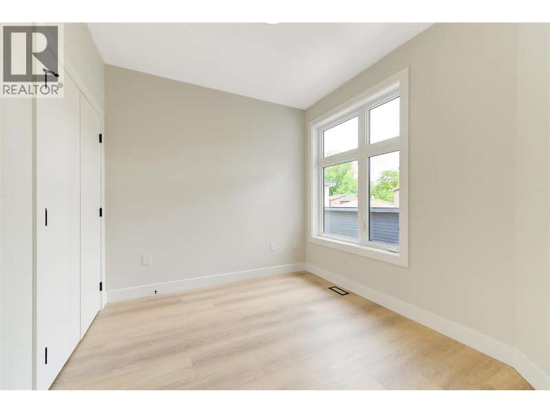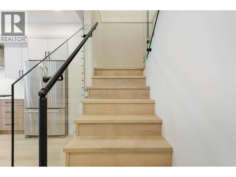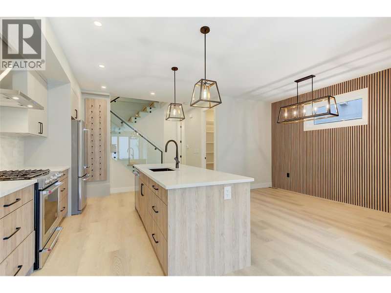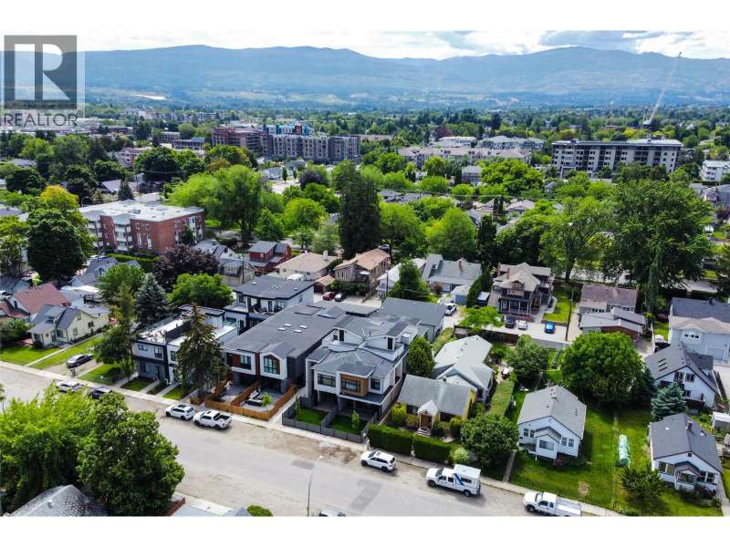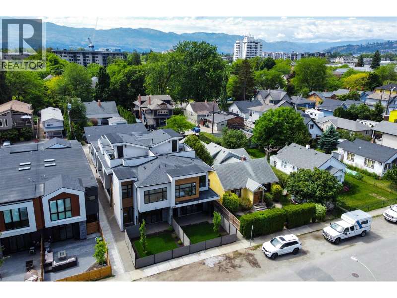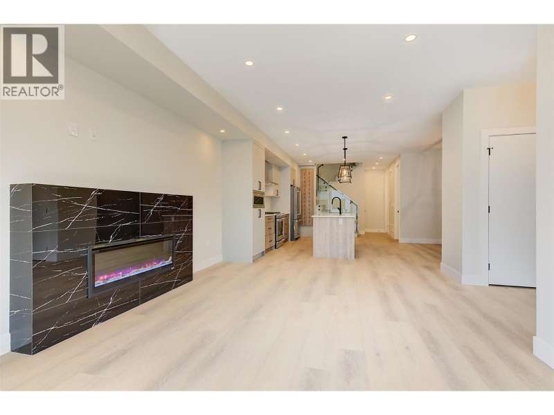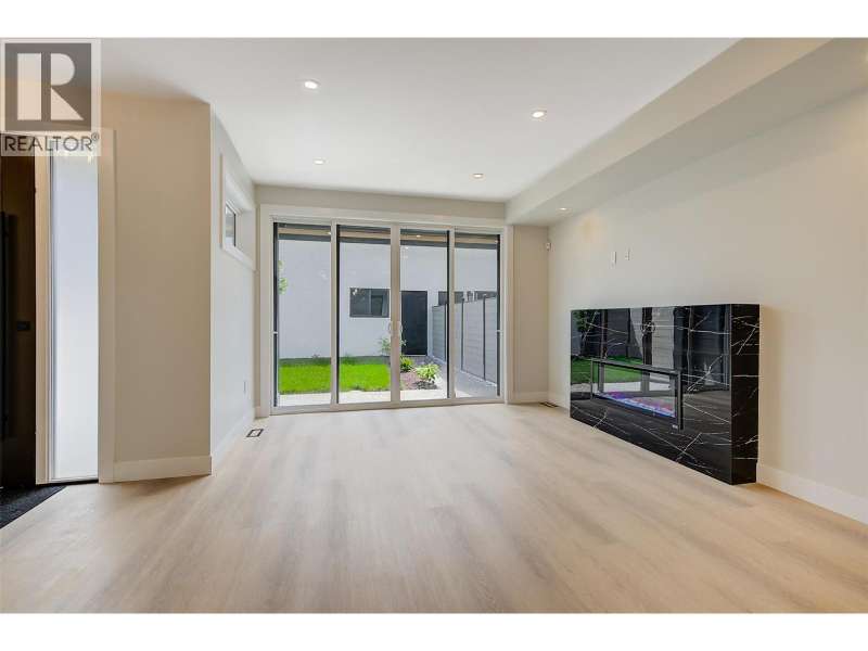 Discover Luxury Downtown Living - Step into this custom-built, North-facing townhome, offering 3 bedrooms, 2.5 bathrooms, and two stories of exquisite design. Topped with a rooftop patio prepped for a hot tub, this home invites you to embrace the Okanagan’s signature outdoor lifestyle. Every detail has been carefully curated to exude sophistication. Expansive windows fill the space with natural light, complementing the modern exterior of concrete and wood finishes. Inside, the chef-inspired kitchen stands out with a large island, stainless steel appliances, quartz countertops, and a custom backsplash framing the gas stove and 28-inch hood range fan. Throughout the home, premium flooring, a built-in fireplace, and contemporary light fixtures enhance the luxurious ambiance. The primary suite features a spa-like ensuite with a double vanity and a sleek walk-in shower. A large crawl space on the main floor offers ample storage, while the private yard with a covered patio creates your personal oasis. Completing the home is a covered single-car garage with rough-in for an EV charging station, blending convenience with modern living. This townhome isn’t just a residence—it’s a statement of style, comfort, and urban sophistication. Make it yours and elevate your lifestyle today. (id:58403)