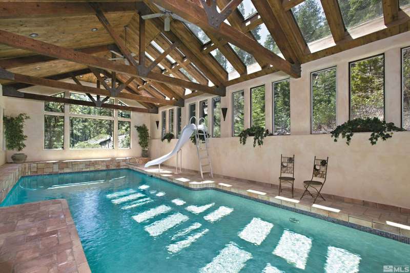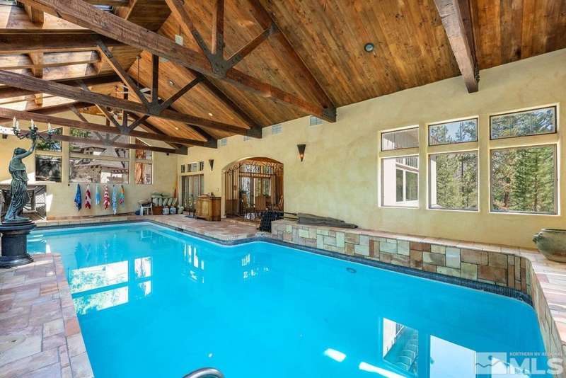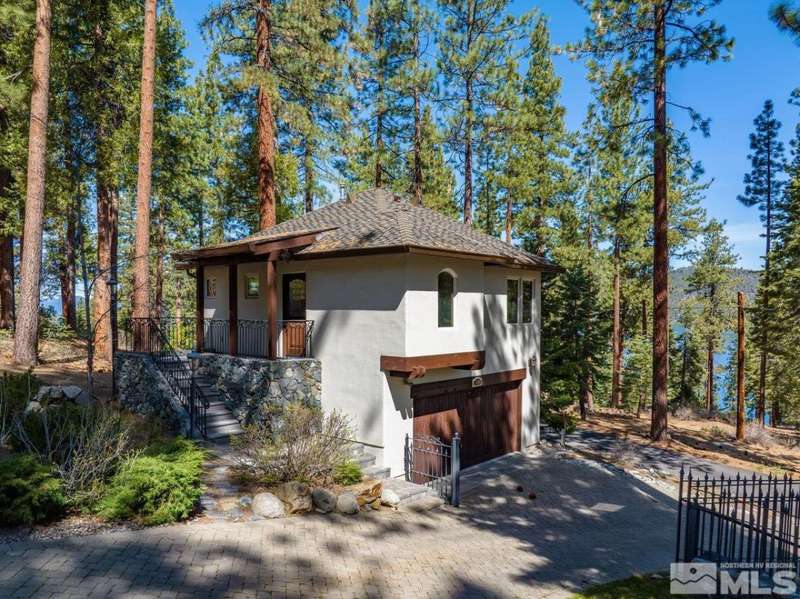 Fabulous Glenbrook estate property, sitting near to the water's edge, on a fully fenced and private 1.55-ac parcel with filtered lake views. The holding consists of 3 European fashioned structures, including a sprawling three bedroom main residence with high ceilings and elevator, a two bedroom guest house with kitchen and in-door pool plus a separate in-law apartment with kitchen, garage and laundry. The structures each feature elevated building materials and have a unique character and distinctive charm., The main house has an open floor plan with elevator, three fireplaces, private office, combo family room/billiards room, bar, and two cozy fireplaces. The gourmet kitchen has two Sub Zero fridge/freezer combo units, granite counter tops, a 6-burner Thermador range and a Bosch dishwasher. The three bedroom suites in the main house can each be primary suites with their own connected baths and two of the suits have fireplaces and screened porches. The fully equipped guest house features an over-sized indoor pool, full kitchen, two bedrooms, two baths, laundry and separate entrance. The charming apartment has one bedroom with bath, kitchen, lake views and dedicated laundry. The holding is fully fenced with colorfully landscaped grounds outdoor hot tub and and each of the structures has a new composition roof. Enjoy garage capacity for four cars with ample off street parking. Glenbrook homeowners enjoy an array of desirable benefits and amenities including: private gated entry, vast sandy beaches, buoy field with boat valet services, community park, hiking trails and optional Glenbrook Club membership that offers golf course and restaurant access, within the gated community. Nevada residence greatly benefit from an outstanding tax environment with no state income tax, comparatively low property taxes, no inheritance tax and much more...