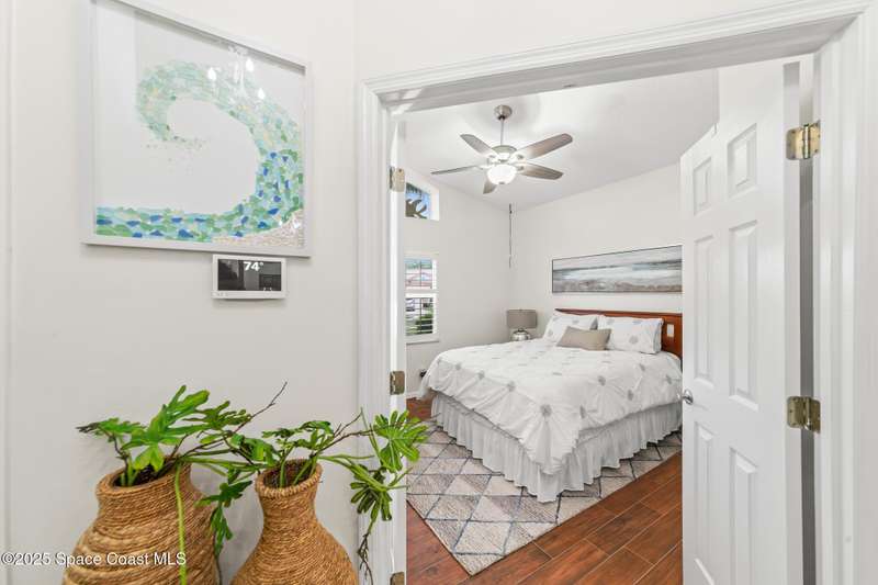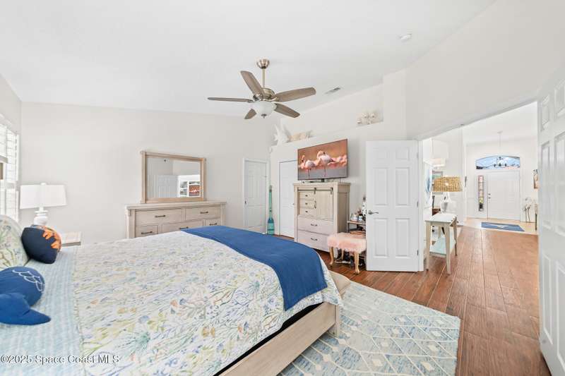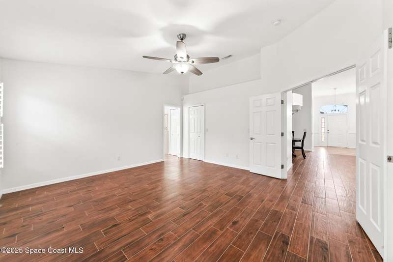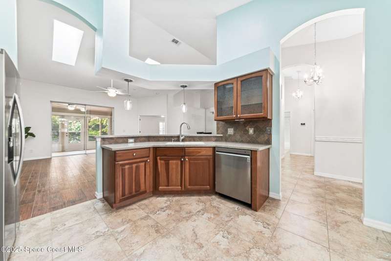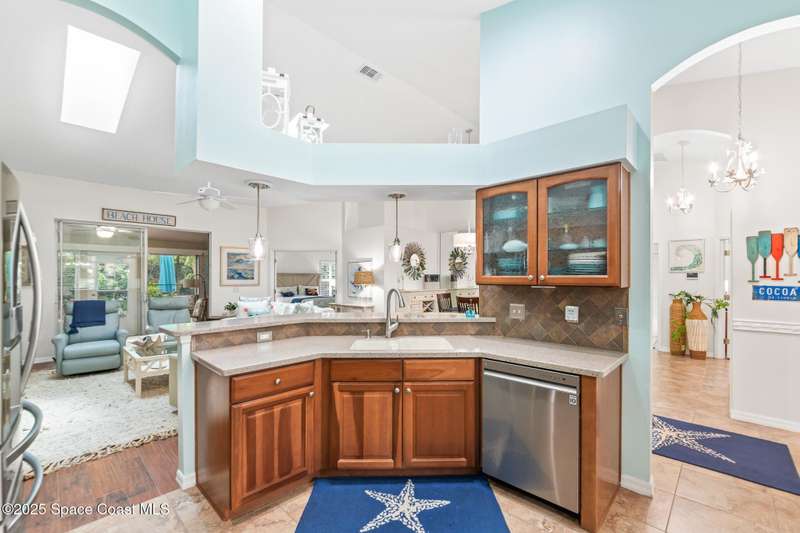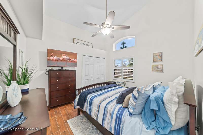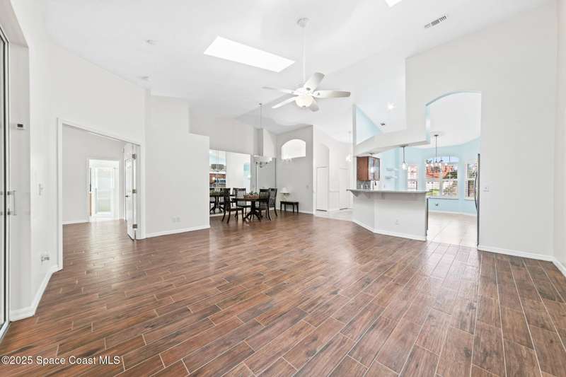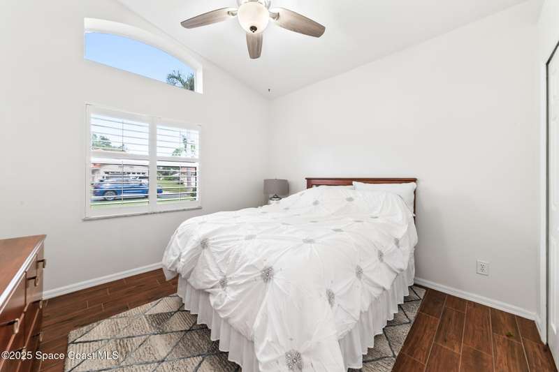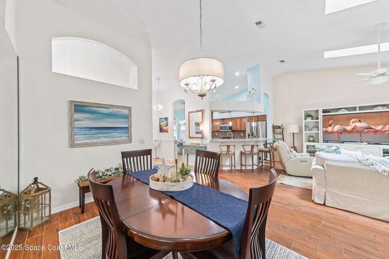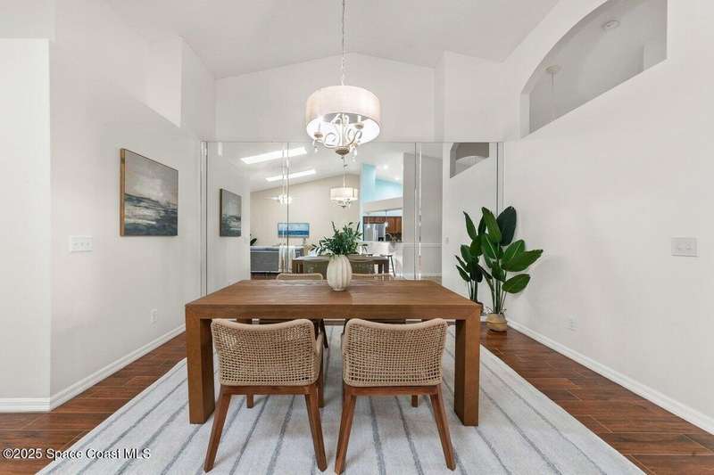 Step into comfort and convenience at 7701 Candlewick Dr, a beautifully cared-for end-unit home nestled in the gated community of Emerald Pointe in Suntree. This charming 3BDRM, 2BA residence offers over1,900sqft of living space with an open layout and vaulted ceilings.Natural light pours into the spacious living and dining areas, while sliding glass doors lead to a fully enclosed Florida room, ideal for year-round enjoyment. The primary suite includes a generous walk-in closet, dual sinks, a relaxing garden tub and a separate walk-in shower. Recent updates throughout the home, including sleek flooring, new epoxy garage floors, modern lighting, upgraded fixtures, & new AC! Enjoy added privacy with the corner lot and lush landscaping, plus extras like plantation shutters, a garage screen, and a metal roof for long-term peace of mind. Located just minutes from beaches, parks, golf, and local shopping and dining!