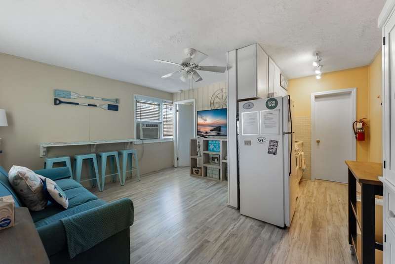 Diamond in the Rough! Located 2 blocks from the beaches of Wildwood Crest, and 1.5 blocks from Sunset Lake this 1 bedroom 1 bath gem is waiting for you! Use as a vacation spot for yourself, or rent out as an AirBNB, it is YOUR choice! NO CONDOTEL RESTRICTIONS. The seller has successfully rented the property from May-September for $13,000 a season, but could get more if rented weekly! This cute, updated property features a large living room with a dining nook for four, galley kitchen with full oven and chic glass backsplash, clean and bright bathroom, and bedroom with a double bunk bed. Small condo association of just 9 friendly units, who take pride in their upkeep: new roof 4 years ago, new 2nd floor concrete deck 2 years ago, new concrete parking area June 2025! Each unit has their own storage in the common storage garage. Sold fully furnished. Condo fees are $711 per quarter and cover master liability insurance, master flood insurance, common area maintenance, water and sewer. This is a seasonal property, open from mid-March to mid-December.