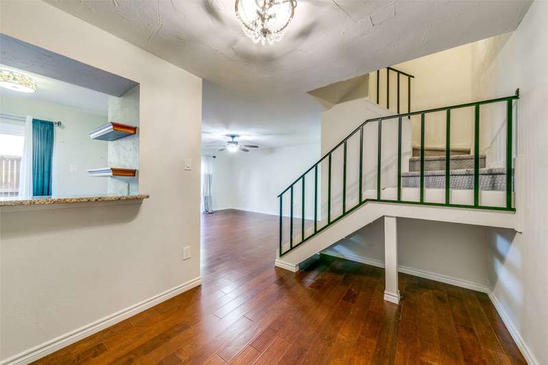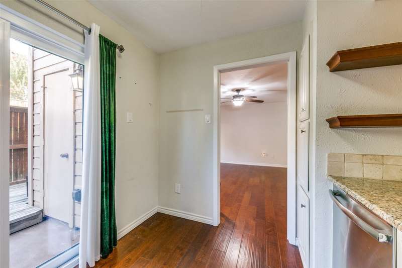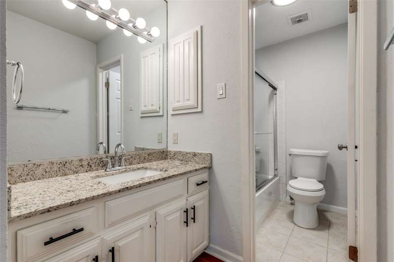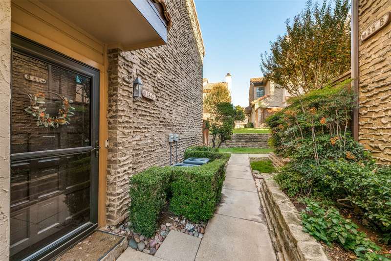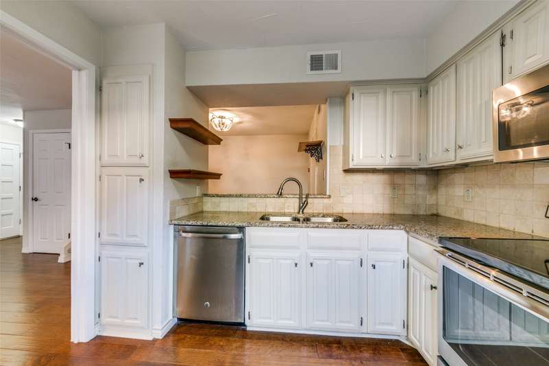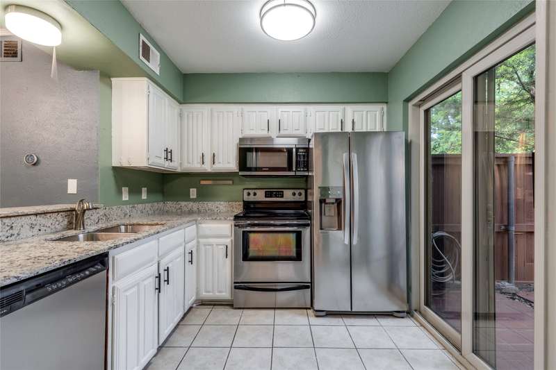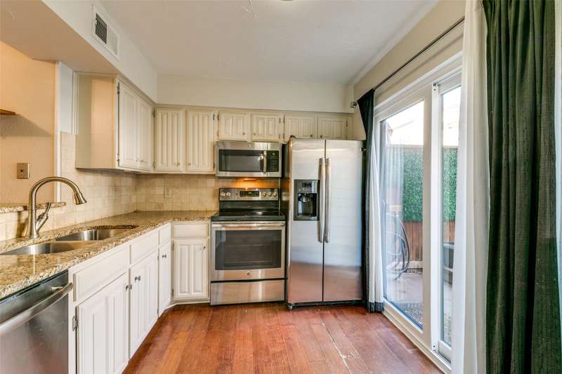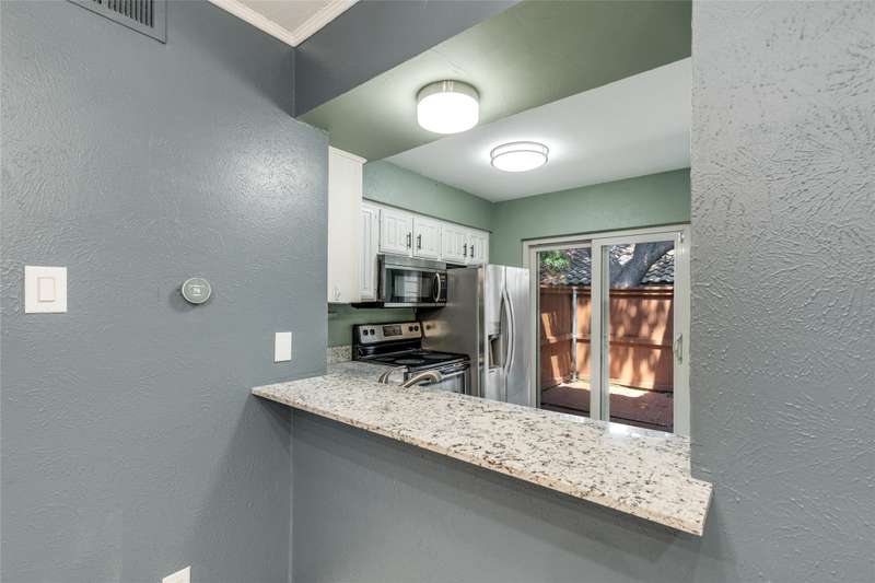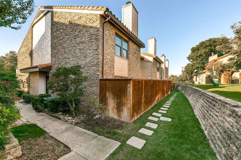 Darling & rare 2 bedrooms, 2.5 bath unit, tucked away in this quiet community. An open concept plan invites get togethers or cozy evenings at home. A corner fireplace set in black granite provides a focal point for the living area which opens to the kitchen and dining area. A large sliding glass door allows natural light to flow into the space. The kitchen features stainless appliances including a built-in microwave, granite counters, painted cupboards, and a pass through to the dining room which could also serve as a breakfast bar. Another sliding glass door opens from the kitchen to private deck area, a perfect spot for your morning coffee. A half bath and an ample size laundry closet complete the first floor. Upstairs are 2 bedrooms each with their own bath and walk in closets. A linen closet is located in the upstairs hall. Preston Oaks offers 2 swimming pools and a community space. It is a lovely community with a canopy of trees and pretty landscaping. The HOA includes cable TV, internet, water, valet trash pick up and use of all of the facilities. One covered parking spot is included. Washer, Dryer, Refrigerator are negotiable.