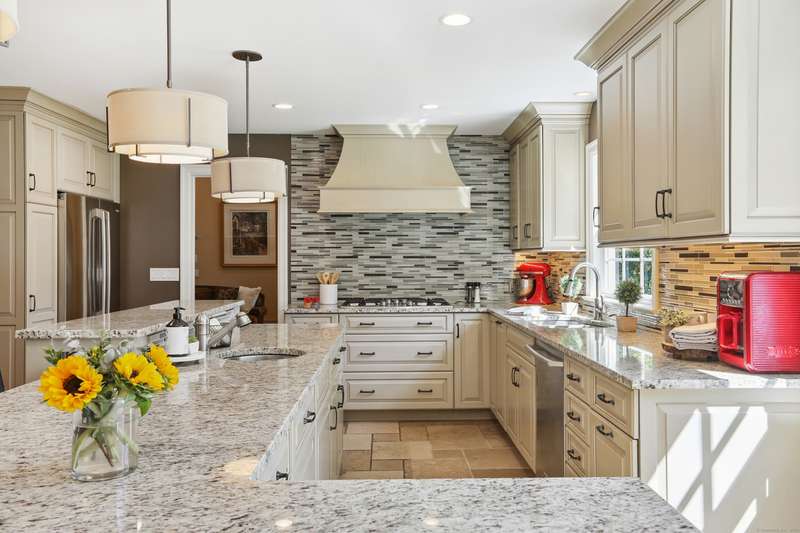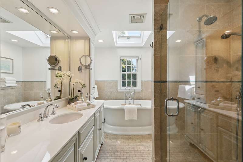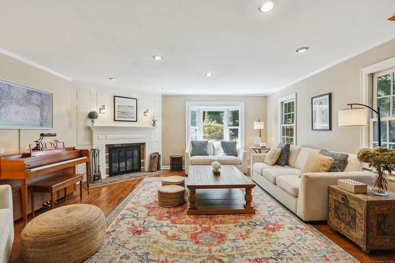 A Rare In-Town Estate set on nearly 5 sweeping acres in the heart of Newtown, this gracious homestead offers refined living and everyday enjoyment in an unrivaled location just a short stroll to schools, shopping, restaurants, Cyrenius Booth Library & Newtown's infamous Labor Day Parade plus Halloween & Christmas on Main celebrations. The main residence offers comfortable living at its best with purposeful & relaxed rooms & coveted features. Both the stunning gourmet kitchen with its granite counters, Stainless Steel appl incl the gas cooktop, wall ovens, butlers pantry & built-in hutch with beaded glass & interior lighting, stone fully heated flooring & the incredible Primary Bth showcase high-end luxe cabinetry/fixtures by Klaffs. An inviting Living & Dining Rm lead to the Family Room retreat where you can enjoy an evening fireside. If working from home is necessary, look no further as here you will find a gracious sized private light filled Study/Home Office adorned with a convenien