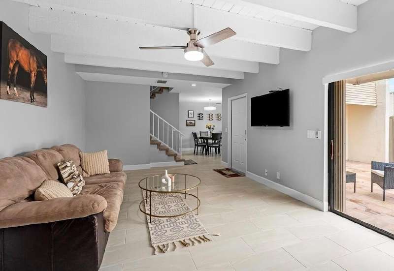 This listing is a 2-bedroom, 2-bathroom fully furnished rental located in Sheffield Woods, a highly desirable neighborhood in Wellington. This newly renovated unit offers a convenient living space with a washer and dryer inside the unit. The rental includes access to a community pool and covers essential utilities such as electricity, water, and internet.Sheffield Woods is an ideal location with proximity to great schools and equestrian activities, making it perfect for seasonal residents or those enjoying the Wellington area. It is minutes away from dining, shopping, the Winter Equestrian Festival (WEF), and the International Polo Club (IPC). The property is also approximately 20 minutes from Palm Beach Airport, the Turnpike, and the beaches.Pet Policy: Up to 20 lbs.