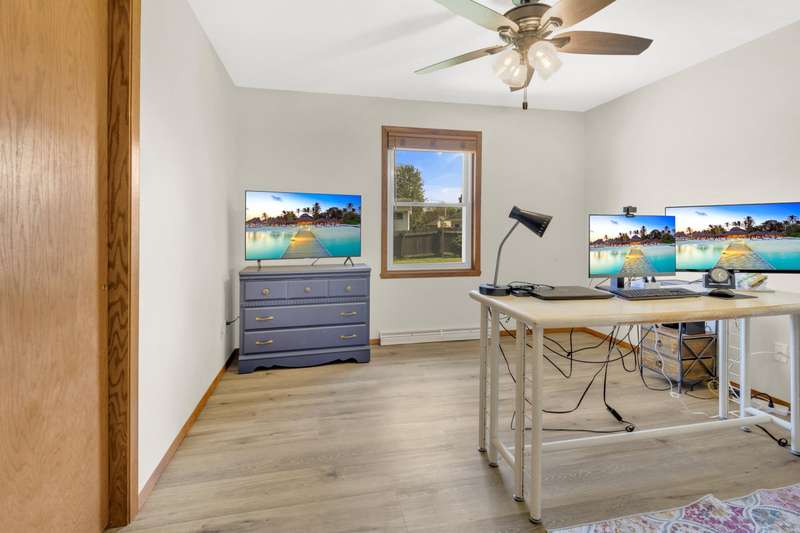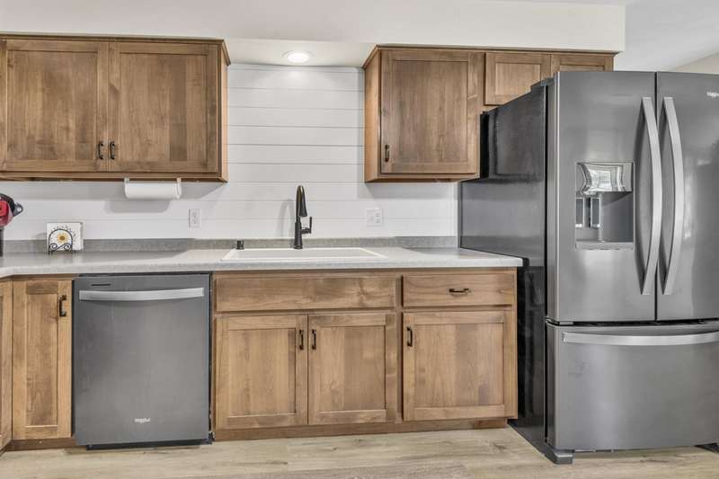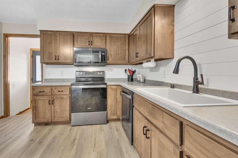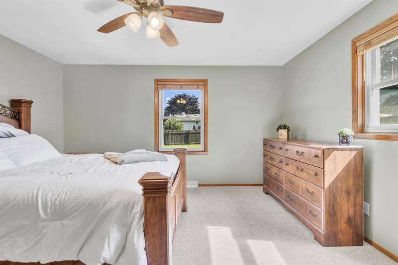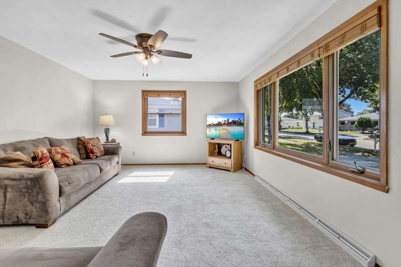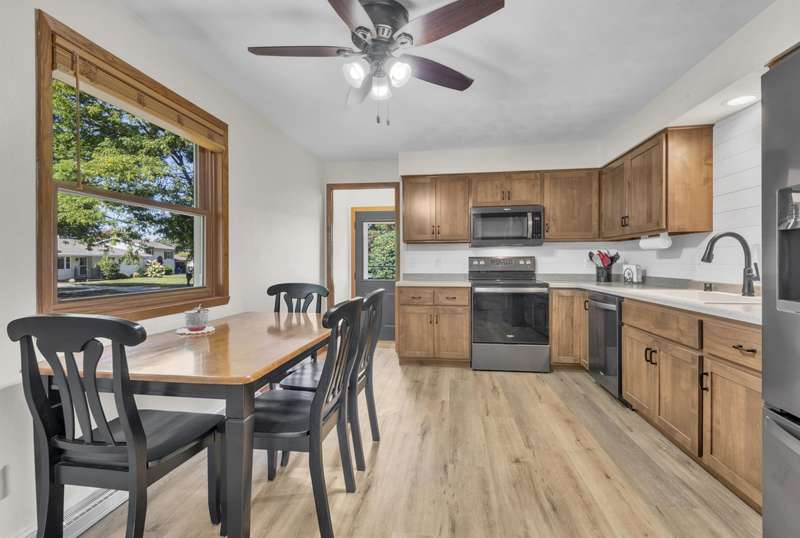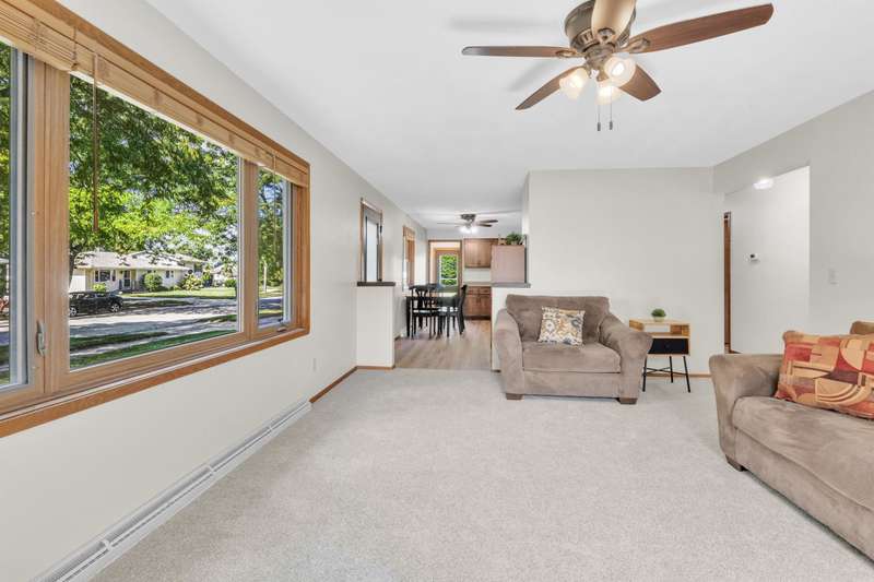 Welcome home! Wonderful ranch home in premium location within walking distance to schools, shopping, recreation, and transportation arteries. Enjoy the open concept. Many updates to include bathroom with walk-in tile shower, LVP flooring installed in kitchen through hallway into 2 of the 3 bedrooms in 2025. Primary bedroom and living room are carpeted. Refaced kitchen cabinets and new appliances in 2023. Pantry adjacent to kitchen. New blinds in 2023 in living room, bedrooms, and bath in 2025. Some rooms were freshly painted in 2025. Patio doors to enormous 17 x16 patio to enjoy entertaining family and friends. Family room and bath in lower level. Extra deep garage! Yard is fenced on 2 of 3 sides. This home is sure to please! 48hrs for binding acceptance.