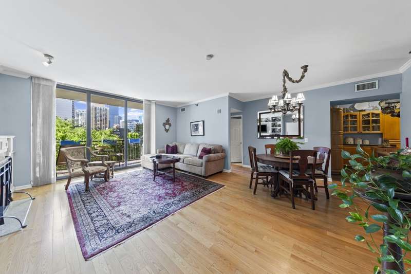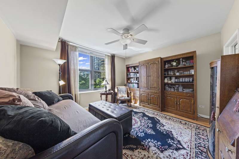 Welcome to the prestigious full amenity Park Newbury, a luxury condominium complex by the renowned Loewenberg & Associates overlooking Washington Square Park and the historic Newbury Library. The building exterior exudes opulence and grace with the center fountain and professionally landscaped gardens. Enter through the recently renovated lobby and be greeted by the professional, 5 star 24-hr door staff (truly the friendliest door staff in the city!) Head up the elevators to unit #608, one of the largest 2 bedroom floor plans in the building with skyline and treetop views for miles. An expansive chef's kitchen, appointed with warm honey-toned wood cabinetry and sleek granite countertops (PLUS an under counter wine fridge) opens seamlessly to the dining and family rooms-both accented with gleaming hardwood floors and extending out to a remarkable 18-foot balcony. Curl up on the couch in front of the fireplace in the coming cold months while gazing out over the balcony to the city beyond. Just off the kitchen, a versatile bonus room offers endless possibilities - currently designed as a chef's prep area with additional custom cabinetry and ample counter space, it could easily serve as a third bedroom, private home office, or charming breakfast nook (in addition to the full dining room). The thoughtful split floor plan enhances privacy, ensuring no shared walls between the two bedrooms. The primary is adorned with two extra large walk in closets, a large set of windows overlooking the skyline, and a huge primary bathroom with separate shower and double sinks. The large second bedroom is also outfitted with a large, built out walk in closet and is positioned right next to the guest bath for convenience. Deeded prime parking spot #16 is included with the price. This well planned building has 5 elevator banks, a larger than life state of the art fitness center, a renovated party room, business center, two sundecks, a receiving room, and an onsite dry cleaners. Private MASSIVE 80 sq. ft. storage room with a steel door included in the price. The Park Newbury is dog friendly, has onsite management, and an onsite engineer. Walk to the Mag Mile, Oak Street Beach, and all of the shops and restaurants you could imagine. Please exclude the butcher block counter in the current breakfast nook.