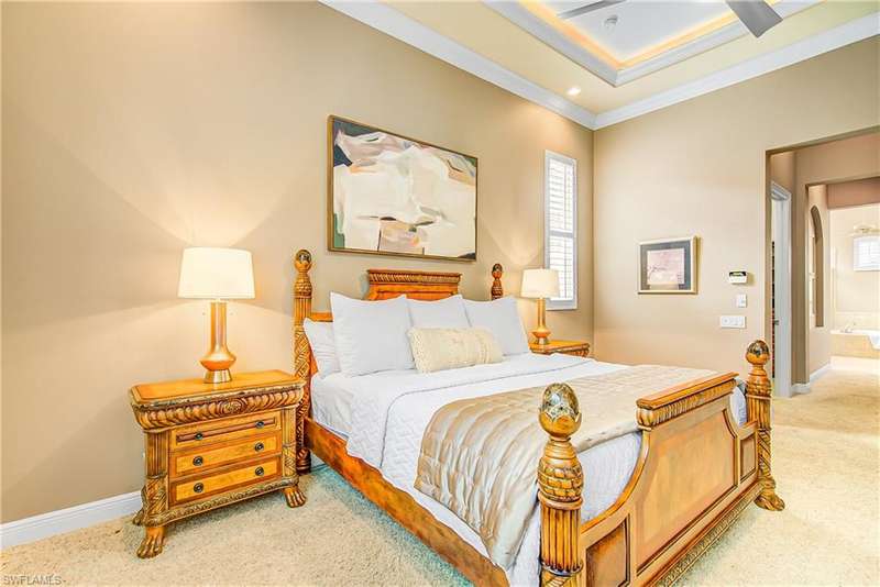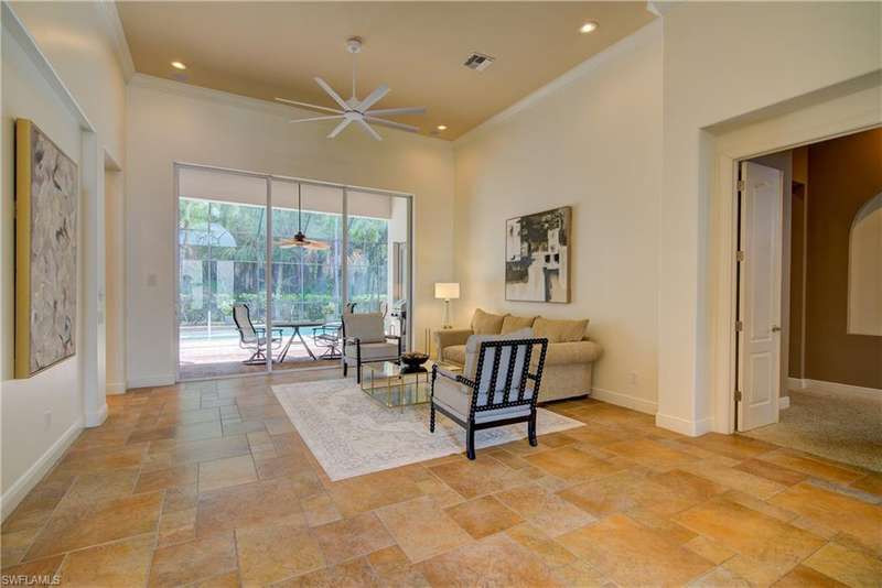Live the Florida dream in amenity-rich Vasari Country Club! Renowned for its lush landscaping and welcoming neighbors, Vasari offers immediate membership to championship golf, active tennis, a lively bocce league, bustling card rooms, dining options, and pickleball coming soon. The community is known for its vibrant social scene and resort-style lifestyle. At the end of prestigious Arezzo s cul-de-sac, discover this 3,000 sq. ft. estate home featuring 3 bedrooms + 3 baths, den/office, 3-car garage, formal dining, living room, and family room, a layout ideal for entertaining. The light-filled design showcases soaring ceilings, new lighting, and an open kitchen with pantry. The split-bedroom plan ensures privacy, with the primary suite on one side and two guest rooms with their own baths on the other. The primary suite is a true retreat with two large custom walk-in closets, dual vanities, soaking tub, and private access to the pool. Step outside to your private oasis with pool, spa,