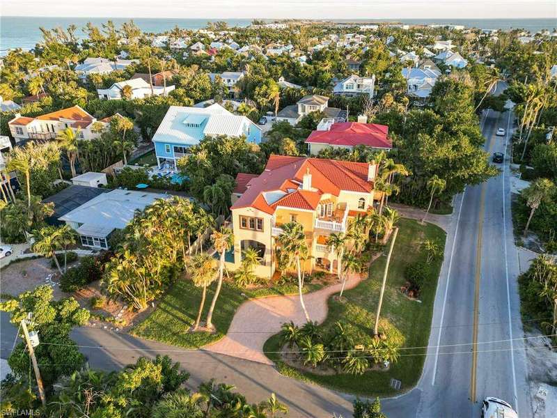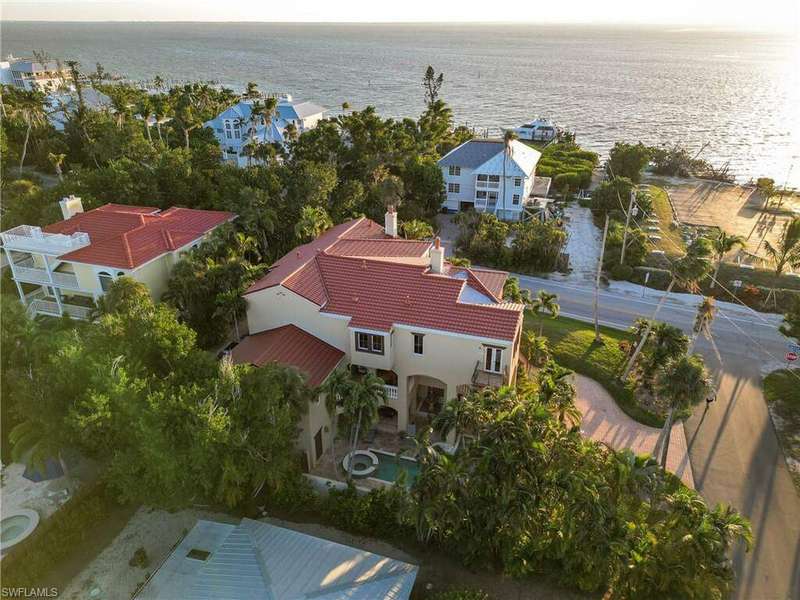 Experience the charm of Sandcastle, a stunning coastal estate with a unique reverse floor plan. This impressive 6-bedroom + den, 6.5-bath residence spans over 4,800 square feet, offering breathtaking bay views from its multi-level decks. Designed in Coastal Tuscan style, the home features luxurious touches throughout, including travertine floors in the living areas, wood floors in the bedrooms, and soaring 10+ ft ceilings with elegant crown molding. The spacious layout boasts multiple living rooms, en-suite bedrooms, an elevator, a morning kitchen, and a private in-law suite. The chef's kitchen is a culinary dream, featuring a gas stove, stainless steel appliances, granite countertops with a breakfast bar, a walk-in pantry, custom wood cabinetry, an oversized sink, and a dedicated bar area. Enjoy the #IslandLifestyle with your private pool and spa, multiple covered and open patios, or a short walk to the beach. Sandcastle is conveniently located near the Village, renowned restaurants, and plenty of shopping, offering everything you need to embrace the #CaptivaLifestyle.