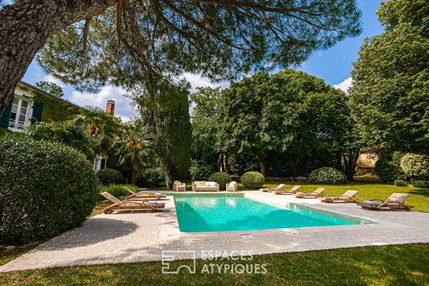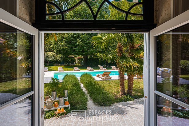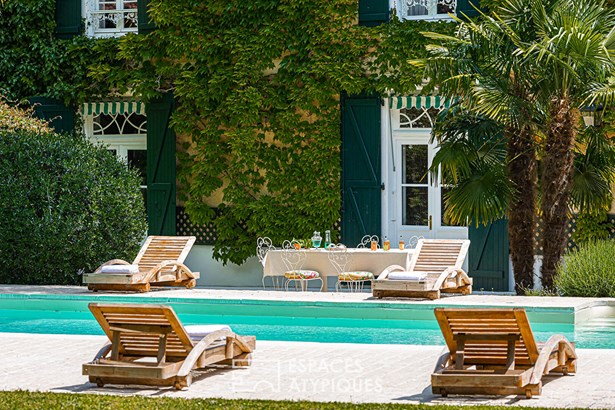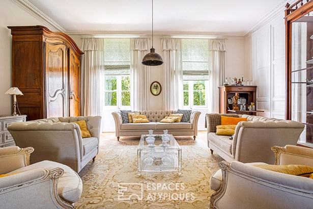 Today, it has the air of a charming house fitted out and decorated with finesse and elegance, like a timeless interlude that leaves no one indifferent after their visit. On one side, the property is bordered by a park with century-old trees of approximately 2 hectares, which offers a prestigious access path to the heart of the place guarded by two imposing plane trees and a vault. On the other, an orchard of approximately 4,000 m2 on the banks of the Boutonne delimits the property.
