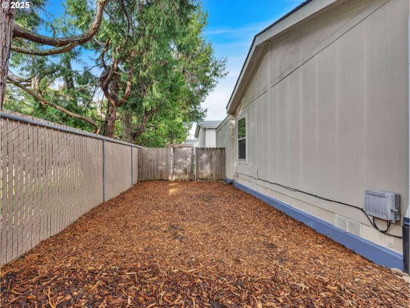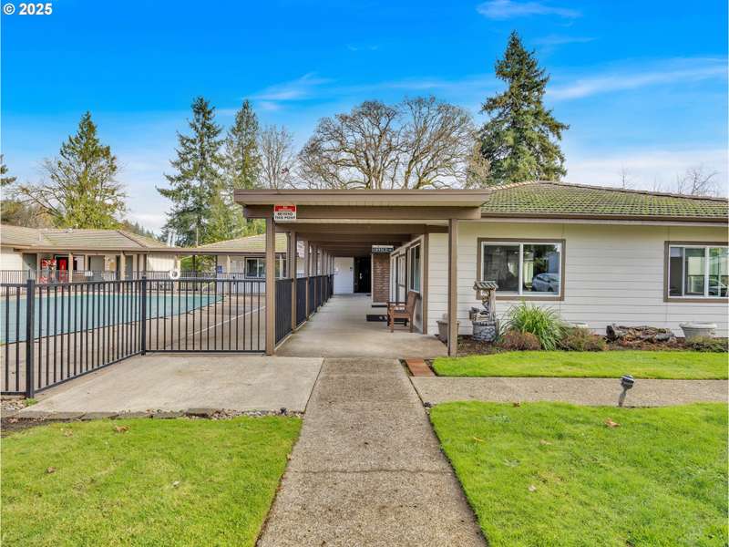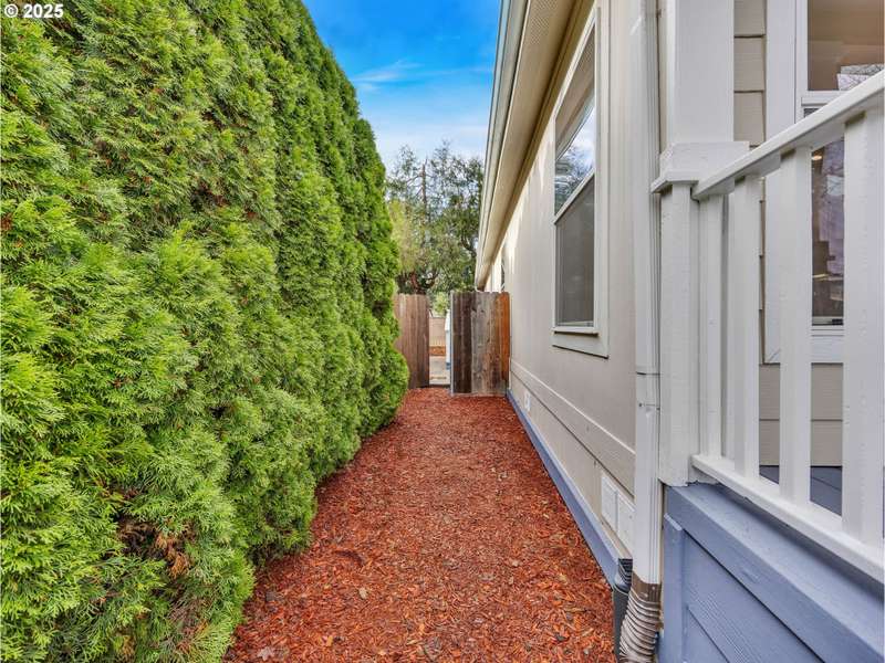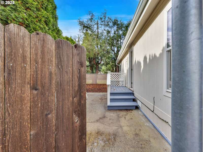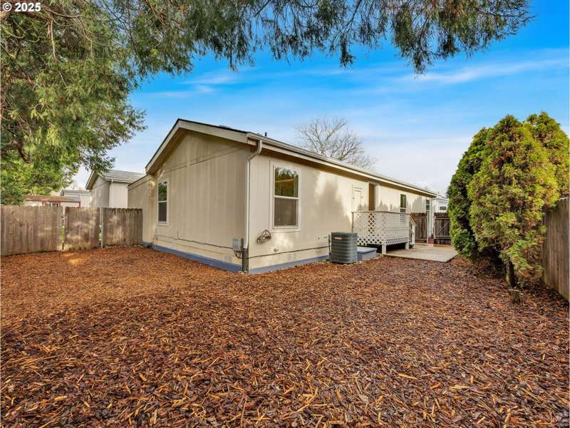 Quaint and private manufactured home located in the highly sought-after Shadowbrook Mobile Home Park, a 55+ community known for its peaceful atmosphere. Residents enjoy access to a serene setting with a community clubhouse and pool. This charming home features an exterior door from the second bedroom leading to a lovely side yard with a concrete patio & porch - perfect for relaxing or entertaining. The spacious, fully fenced back yard offers plenty of room for raised garden beds or a new lawn. All 3 porches and railings are newly painted along with the outside baseboards. A covered carport provides parking for two vehicles and includes an attached storage/tool shed for added convenience. Fresh interior paint, brand-new carpet throughout, vaulted ceilings, skylights, and ceiling fans enhance the home’s comfort and appeal. Large windows throughout bring in the sunshine. All appliances, including the washer, dryer and refrigerator are included—making this home move-in ready!