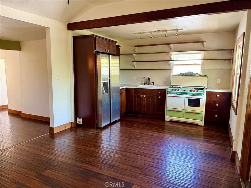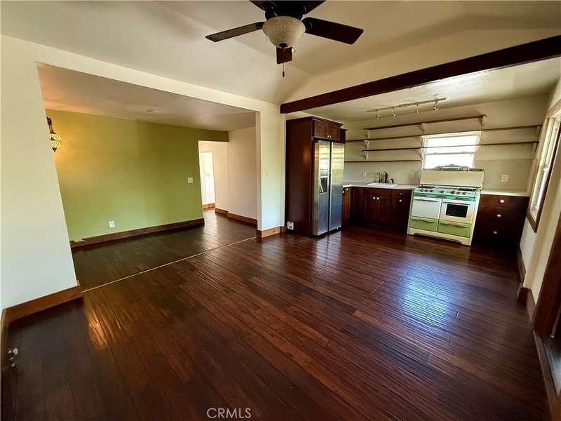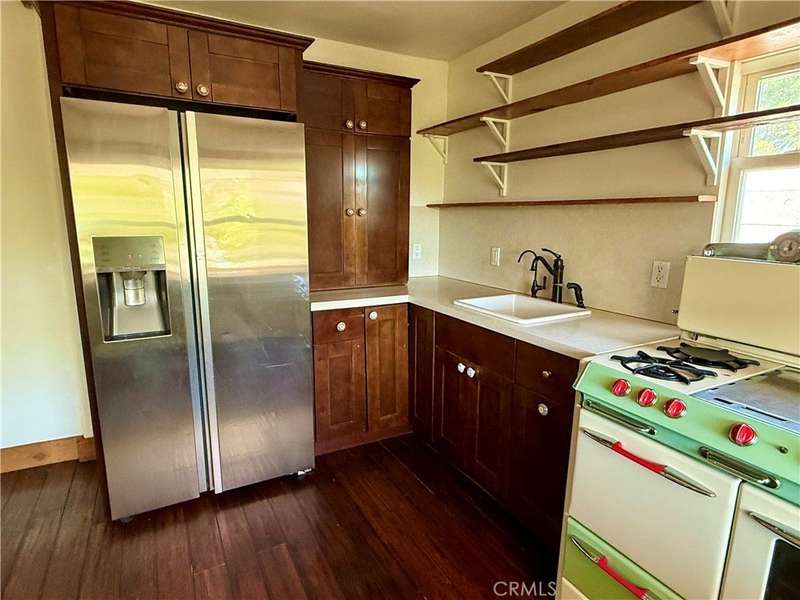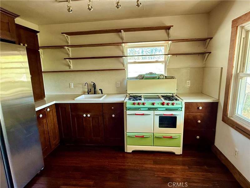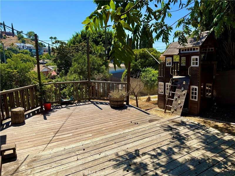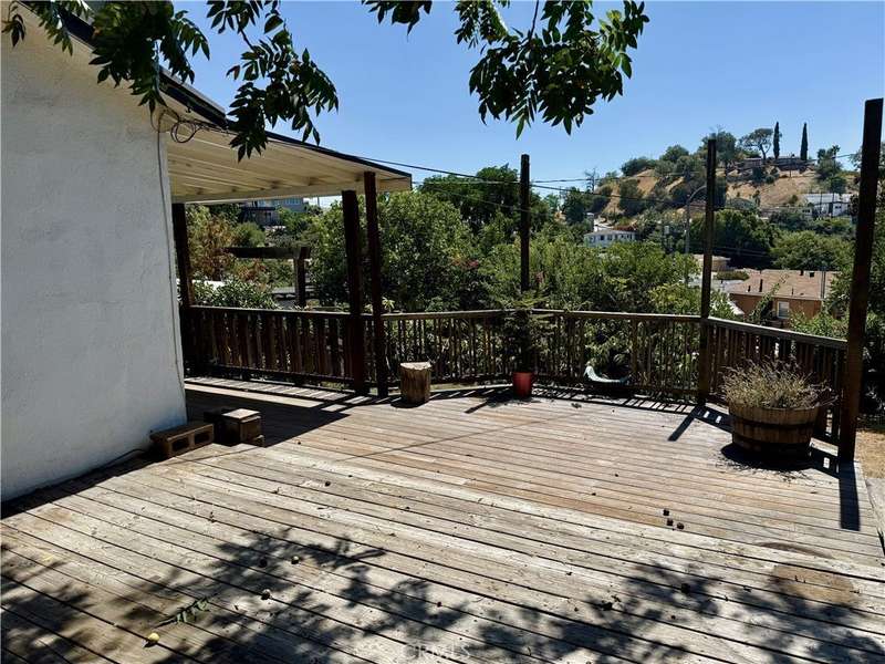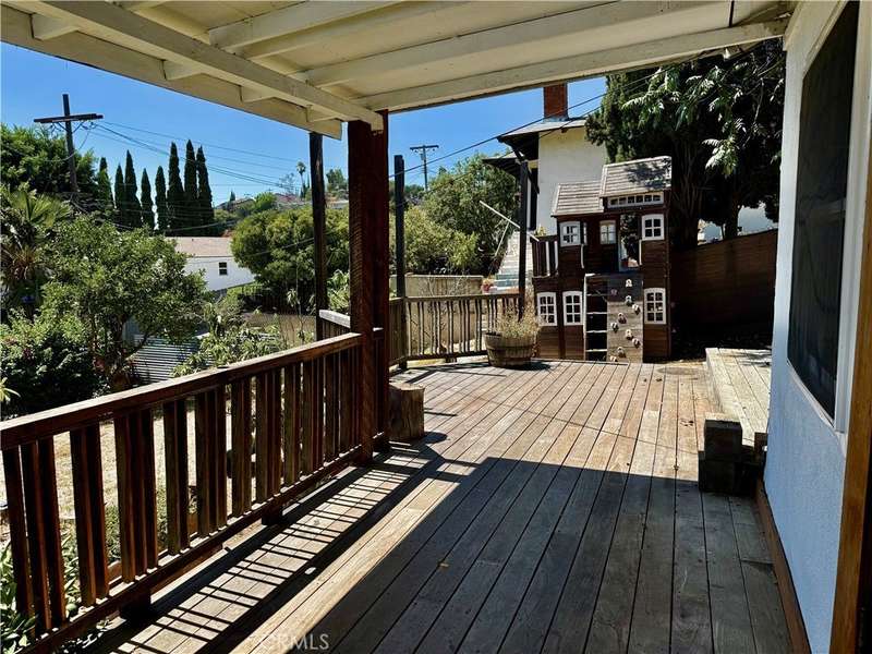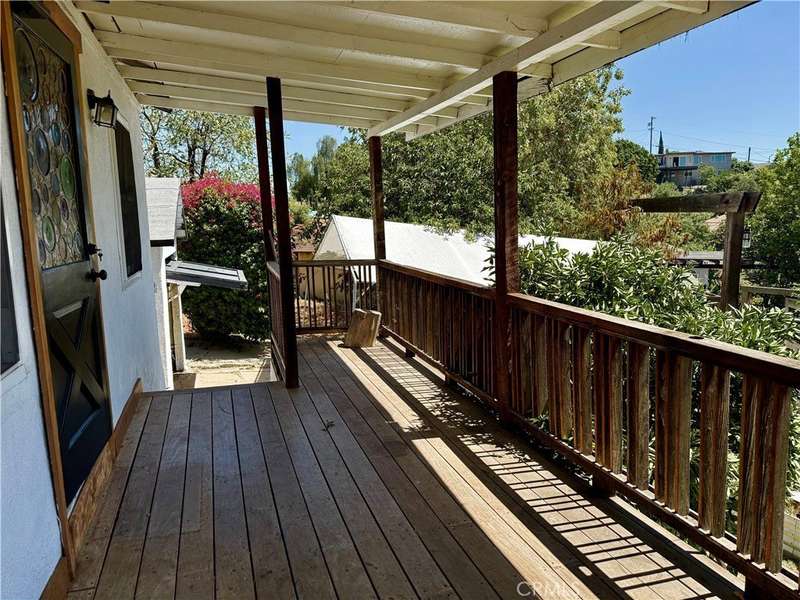 Welcome to Bougie Acres—named for the vibrant bougainvillea that frame the front yard. If you’ve dreamed of extra space for gardening, outdoor living, or a more grounded lifestyle—without leaving the city—this property delivers. Set on two lots totaling over a third of an acre, this 2-bedroom, 1-bath home is full of character. Once featured on a home renovation show, it showcases live-edge wood accents, a clawfoot iron tub, and a striking stained-glass front door. The gated ranch-style entry leads to a custom Dutch door with a pizza delivery swivel window—a playful, one-of-a-kind detail. The wraparound Brazilian Ipe deck offers space for entertaining, yoga, or evening sunsets, with a slide to the yard that’s always a hit. The grounds feature fruit trees, mature landscaping, ample space for gardening, and room for pets or even chickens. Perched on a hill, the property enjoys incredible sunsets and cooling breezes. Inside, the home is warm and inviting. The kitchen flows into the living area and includes a vintage O’Keefe & Merritt stove. The primary bedroom features reclaimed wood beams and a sliding farmhouse door, while the second bedroom is ideal as a guest room or office. A washer/dryer nook, detached garage, and storage shed complete the property.