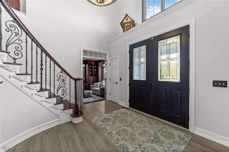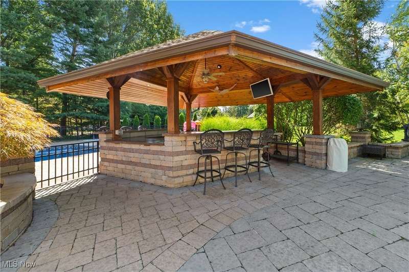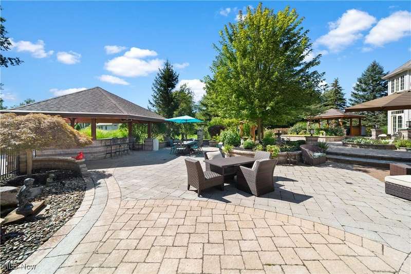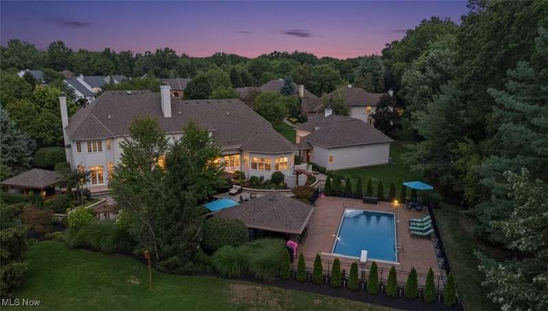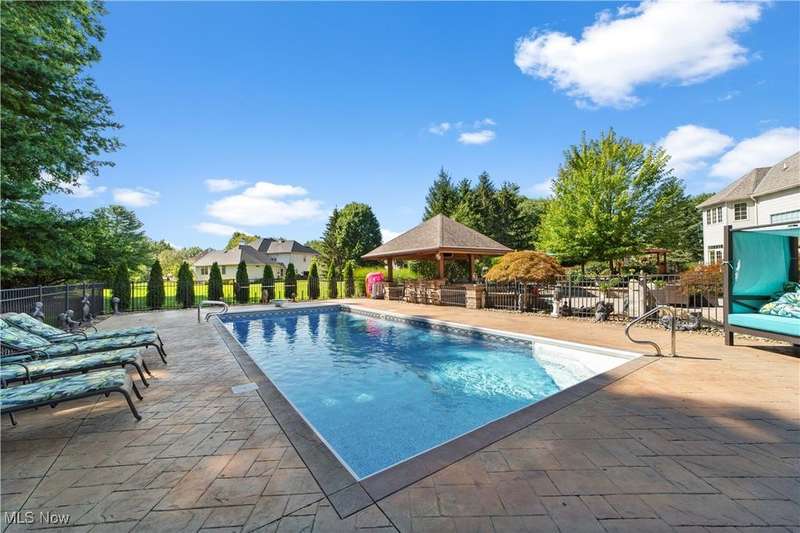 Welcome to a home where grandeur and comfort converge?a private retreat designed for both luxurious living and effortless entertaining. From the moment you enter the soaring marble foyer, every detail reveals an uncompromising commitment to craftsmanship and style. Elegant formal spaces flow seamlessly, including a richly appointed library with fireplace and a versatile dining/billiard room framed by French doors. The heart of the home is the stunning great room and chef's kitchen, where architectural drama meets everyday function. Towering ceilings, abundant natural light, and custom finishes create a space as beautiful as it is welcoming. Premium appliances, a sprawling granite island, and thoughtful touches like a butler's pantry and walk-in pantry make this kitchen a culinary dream. Retreat to the serene primary suite with its fireplace, dual walk-in closets, and spa-inspired bath, while family and guests enjoy spacious bedrooms each with private or shared designer baths. The lower level extends the lifestyle with a recreation room, fitness studio, full bath, and generous storage. Outside, resort living awaits: a sparkling heated pool with automatic cover, full outdoor kitchen with bar, two gazebos?including one with a built-in hot tub?stone patios, fire pit, and lush landscaped gardens with water features. A whole-house generator, integrated security, indoor/outdoor audio, and ample climate-controlled garage space complete this remarkable estate. This is not just a home?it's a lifestyle of elegance, sophistication, and unforgettable moments.