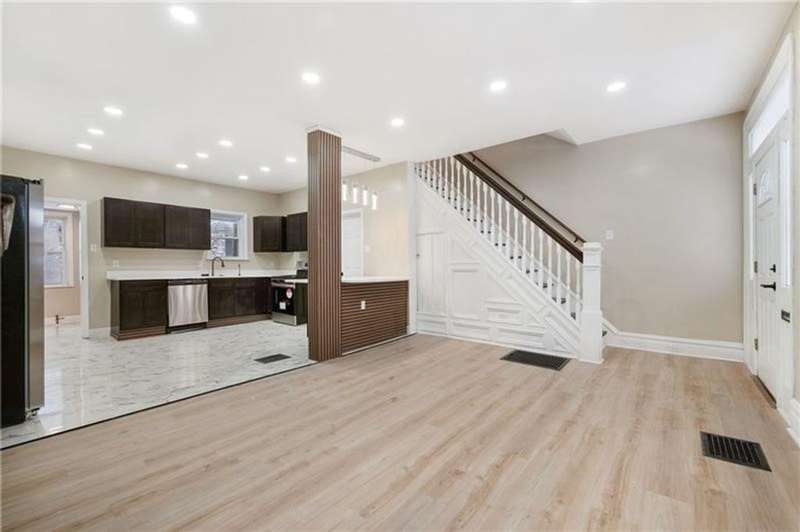 Welcome to this beautifully renovated home located in the charming neighborhood of Swissvale! The first floor features a spacious, open floor plan that seamlessly flows into a modern, fully-equipped kitchen. With brand-new stainless steel appliances, sleek granite countertops, and convenient washer and dryer hookups just off the kitchen, this space is both stylish and functional. Two new gas fireplaces, one in the kitchen and one in the living room, add warmth and ambiance throughout the main level. The second floor boasts two cozy bedrooms and a beautifully updated full bathroom with elegant quartz finishes. Third floor has large open space. The basement also features its own private entrance, making it perfect for use as an office, family playroom, or a private guest bedroom. Off-street parking is available at the back of the property. Tenant pays, gas, electric and gas. Available for immediate occupancy.