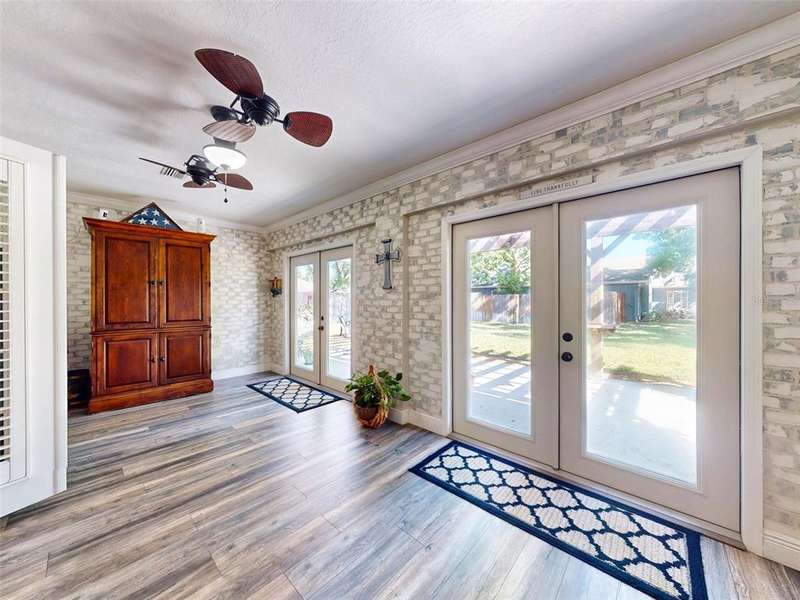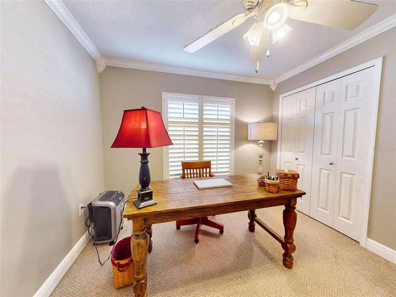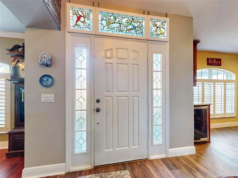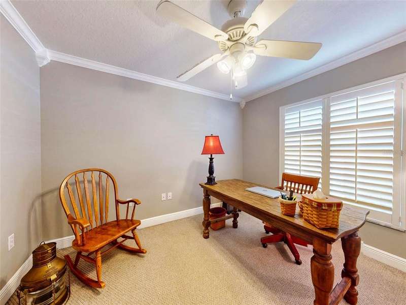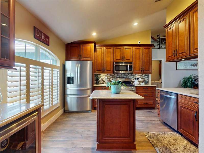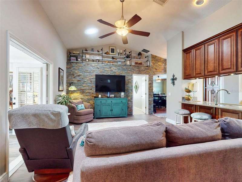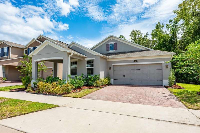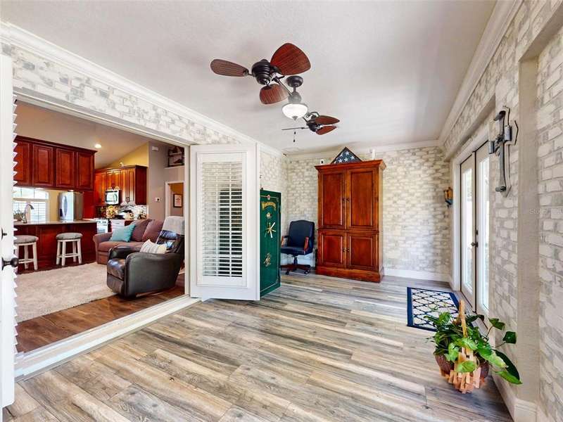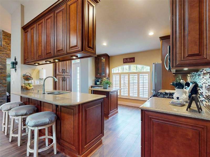 PRICE REDUCTIONS OVER $30,000! Don't miss the opportunity to make this inviting, open, split plan, 3 bedroom, 2 bath home situated on a corner lot in the peaceful and well-established neighborhood of Springview your new home! Stained glass transom windows on both sides of the front door welcome you into the home. Upon entry, the foyer offers a grand view of the stunning stacked stone wall ahead, beckoning you into the thoughtfully designed living room featuring upgraded ceramic tile, fabulous custom shelving bathed in glorious light from the skylights. Extending the living space, French doors open into an additional 206 square foot sitting room/office with beautiful faux brick walls and views into to pergola covered porch and meticulously maintained spacious yard.The heart of the home is the remodeled, gourmet kitchen, boasting high ceilings, stainless steel appliances, gas range, quartz countertops, wine refrigerator, center island, stylish tile backsplash and open breakfast bar seamlessly joining kitchen and living room.Large owner’s suite, includes a luxurious tray ceiling, walk in closet with built ins, and ensuite bath with dual sinks, walk in shower and soaking tub. Two additional bedrooms are located on the opposite side of the home and share a fully remodeled bathroom with stand-up shower, Bluetooth speaker in vent and a door to the rear of the home for future pool access. Plantation shutters and crown molding are throughout the home. Storage is a breeze with floor to ceiling storage closet in foyer, an abundance of kitchen cabinets, laundry cabinets and a large linen closet in hallway. Driveway has been expanded to accommodate 3 vehicles.New roof in 2024, new HVAC in 2018, new gutters and downspouts, newer gas hot water heater, and newer washer and gas dryer included. Smoke and pet free home.This beautifully maintained, move in ready home offers the perfect blend of comfort, elegance and functionality. Walk to the community pool, playground, basketball court and access to the Spring to Spring Trail. Conveniently close to Sunrail, I-4 and zoned for top rated schools.