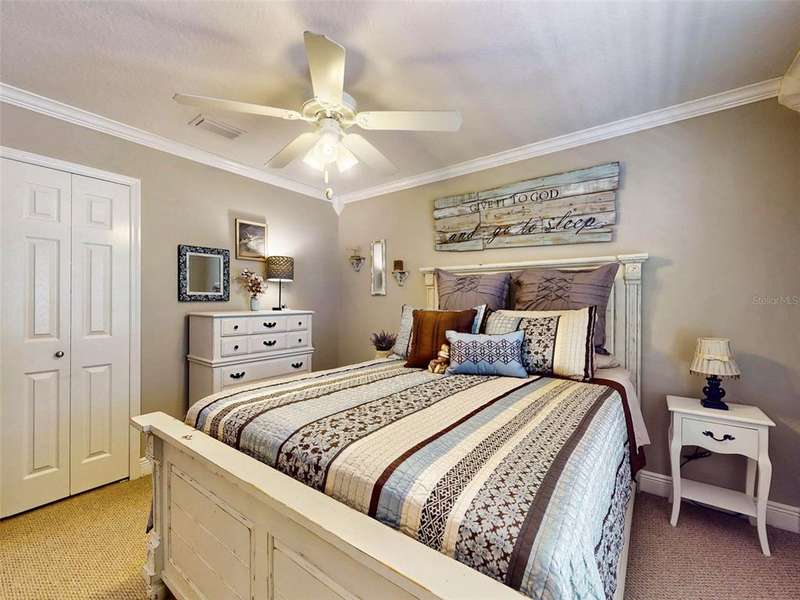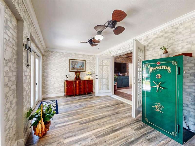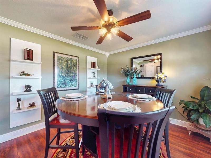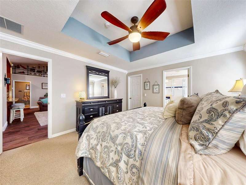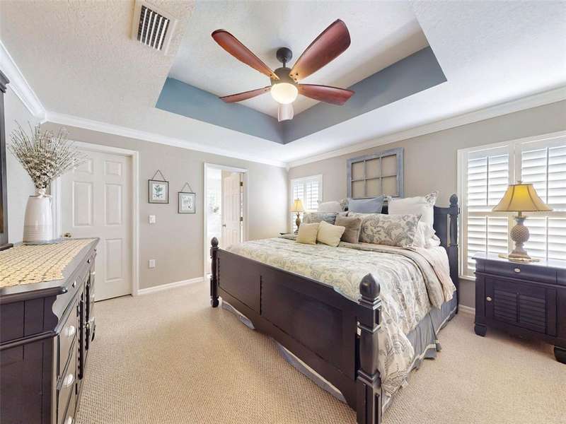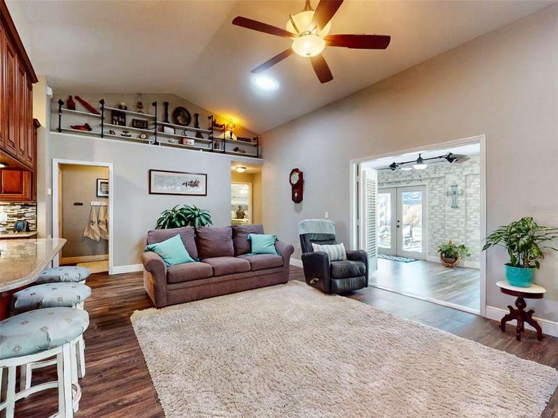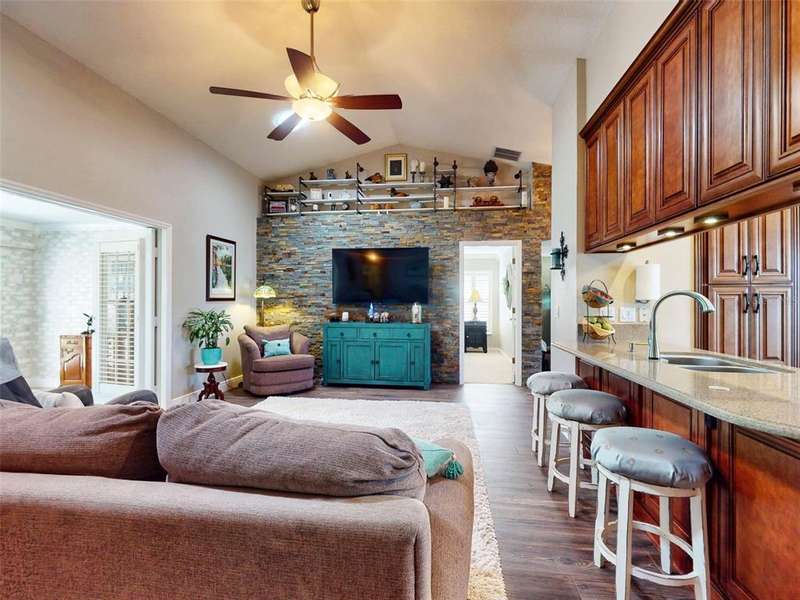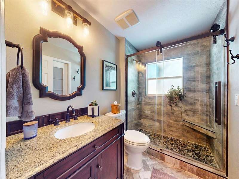 PRICE REDUCTIONS OVER $30,000! Don't miss the opportunity to make this inviting, open, split plan, 3 bedroom, 2 bath home situated on a corner lot in the peaceful and well-established neighborhood of Springview your new home! Stained glass transom windows on both sides of the front door welcome you into the home. Upon entry, the foyer offers a grand view of the stunning stacked stone wall ahead, beckoning you into the thoughtfully designed living room featuring upgraded ceramic tile, fabulous custom shelving bathed in glorious light from the skylights. Extending the living space, French doors open into an additional 206 square foot sitting room/office with beautiful faux brick walls and views into to pergola covered porch and meticulously maintained spacious yard.The heart of the home is the remodeled, gourmet kitchen, boasting high ceilings, stainless steel appliances, gas range, quartz countertops, wine refrigerator, center island, stylish tile backsplash and open breakfast bar seamlessly joining kitchen and living room.Large owner’s suite, includes a luxurious tray ceiling, walk in closet with built ins, and ensuite bath with dual sinks, walk in shower and soaking tub. Two additional bedrooms are located on the opposite side of the home and share a fully remodeled bathroom with stand-up shower, Bluetooth speaker in vent and a door to the rear of the home for future pool access. Plantation shutters and crown molding are throughout the home. Storage is a breeze with floor to ceiling storage closet in foyer, an abundance of kitchen cabinets, laundry cabinets and a large linen closet in hallway. Driveway has been expanded to accommodate 3 vehicles.New roof in 2024, new HVAC in 2018, new gutters and downspouts, newer gas hot water heater, and newer washer and gas dryer included. Smoke and pet free home.This beautifully maintained, move in ready home offers the perfect blend of comfort, elegance and functionality. Walk to the community pool, playground, basketball court and access to the Spring to Spring Trail. Conveniently close to Sunrail, I-4 and zoned for top rated schools.