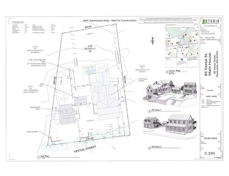 Exceptional Estate-Ready Offering at 85 Vestal Street, Nantucket HDC-Approvals pending Compound with Pool, Studio, Cabana & More, June 2026 Occupancy. Ideally located just west of town, this spacious half-acre parcel - offering a seamless path to high-end Nantucket living. Development includes- A gracefully designed main residence with five bedrooms, five full and one half baths, open-concept living spaces, and timeless Nantucket detailing throughout. A detached garage with full second-floor studio, connected to the main house by a private underground tunnel a standout feature that opens the door for exciting possibilities such as a private bowling alley. A heated in-ground saltwater pool with auto cover and integrated spa creating a true backyard sanctuary. A charming cabana for seamless indoor-outdoor living and entertainment. Ample room on the lot for a future sports court ideal for basketball, pickleball, or tennis enhancing the estate s active lifestyle potential. Every de