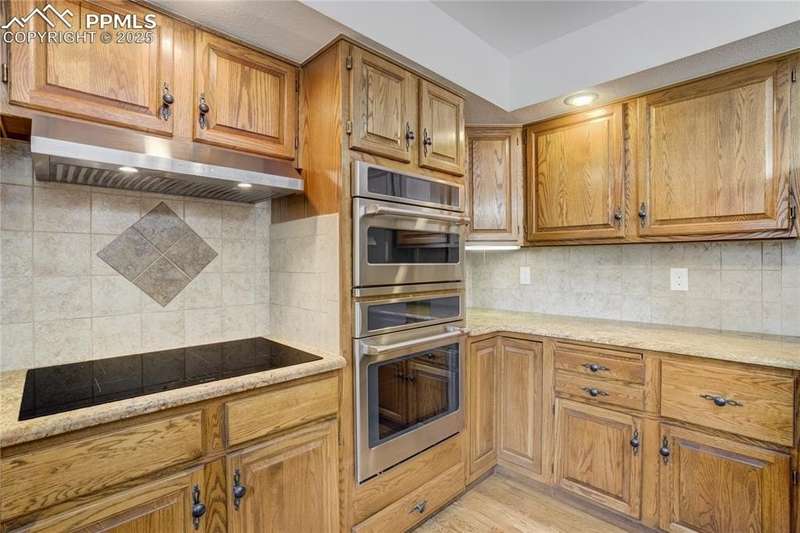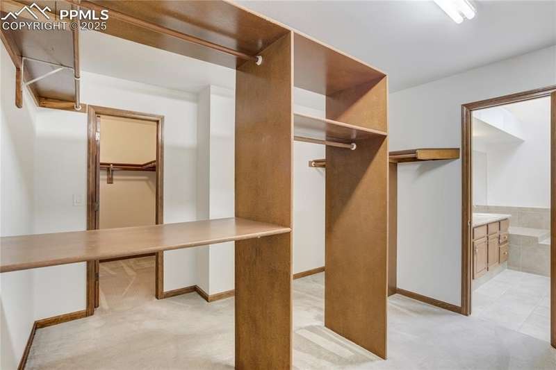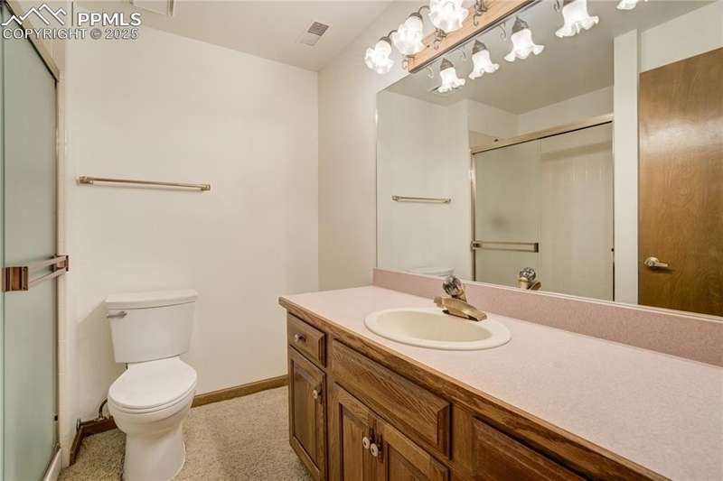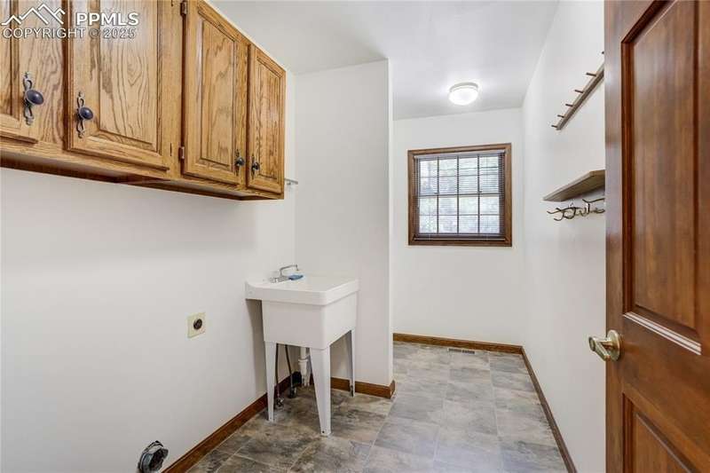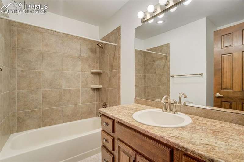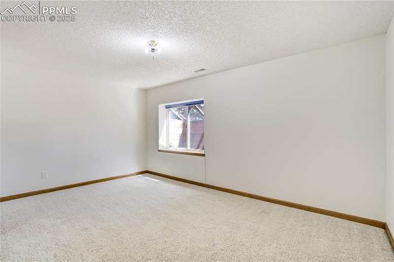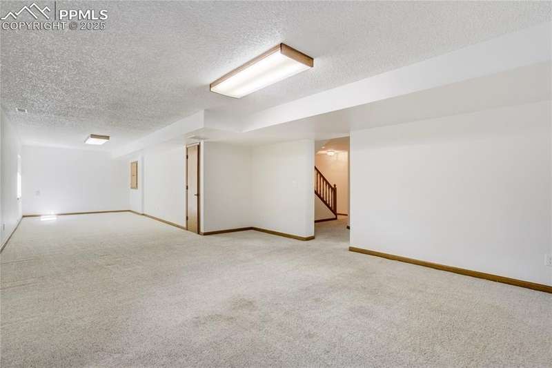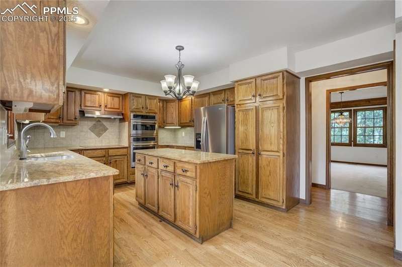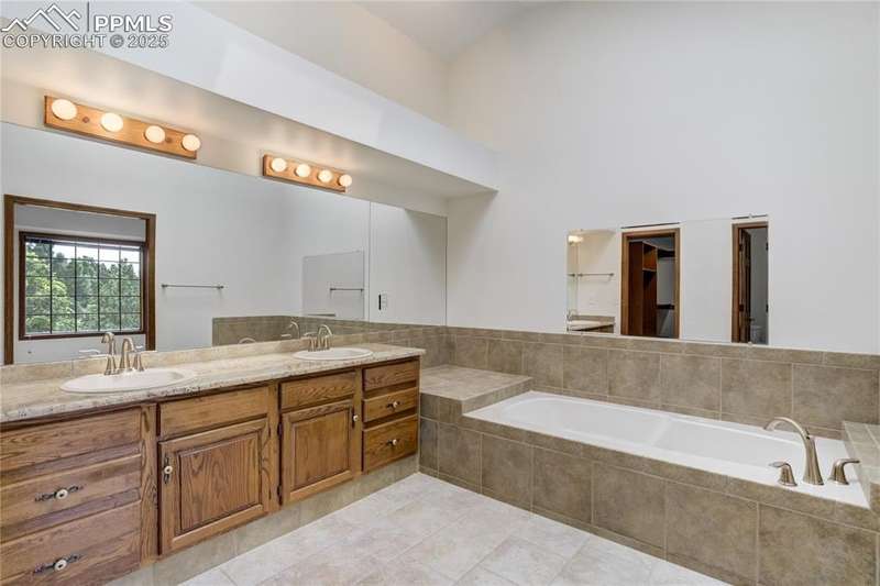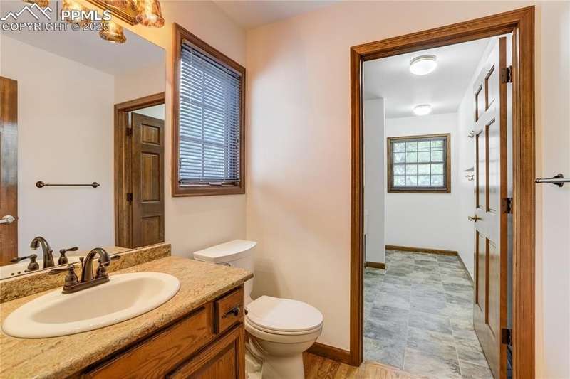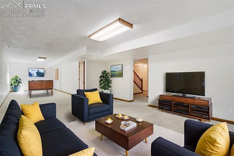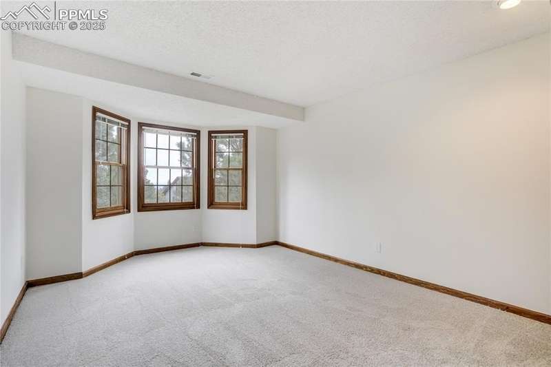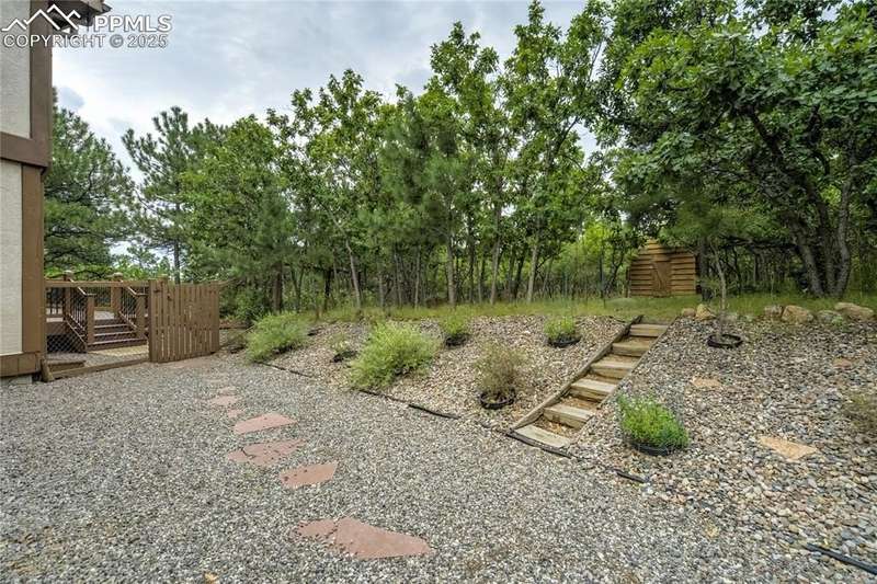 Set in the Broadmoor Bluffs neighborhood near D-12 schools, this home combines mountain & city views w/ a private, nearly half-acre lot close to parks, trails, shopping & military bases. A covered entry opens to solid oak hardwd flrs & a formal living rm framed by a bay window, crown molding, & views of the landscape. From here, the layout flows into the great rm where craftsmanship stands out, beamed ceiling, wainscoting paneling, built-ins, FP, & a wall of windows w/ walk-out access. An integrated bar w/ sink, granite counters & storage enhances the space while keeping everything tucked neatly away. The adj gourmet kitchen offers an eating nook surrounded by windows & deck access, plus hardwd flr, center island, granite countertops, updated lighting, tile backsplash,SS appliances incl range-top & GE Advantium wifi enabled wall oven, pantry, & built-in work area. A formal dining room connects easily, designed w/ crown molding & chair rail. Completing the main lvl is a half bath & a laundry room w/ sink, cabinets & window. Upstairs, the primary suite features a tray ceiling, sitting area w/ wd-burning FP, & large windows. The adj 5-pc bath has vaulted ceilings, soaking tub, glass shower & tile flooring, plus a massive walk-in closet w/ custom shelving & bonus room. Three additional bedrooms share the upper level each spacious w/ large closets & new carpet throughout. One bedroom captures mountain views, while all share easy access to a hall bath w/ tiled surround.The finished bsmnt expands the living space w/ a rec room anchored by a FP at one end & open space at the other, plus a bedroom & bath nearby. storage room w/ built-in shelving. Outdoors, a composite deck w/ wrought-iron railing overlooks the xeriscaped backyard, complete w/ fenced garden space & privacy from mature trees. The lot feels secluded while still connected to every convenience. Add highlights incl central A/C, HE furnace, metal tile roof, brick & stucco ext, oversized 2-car garage.