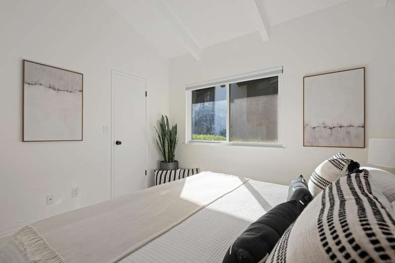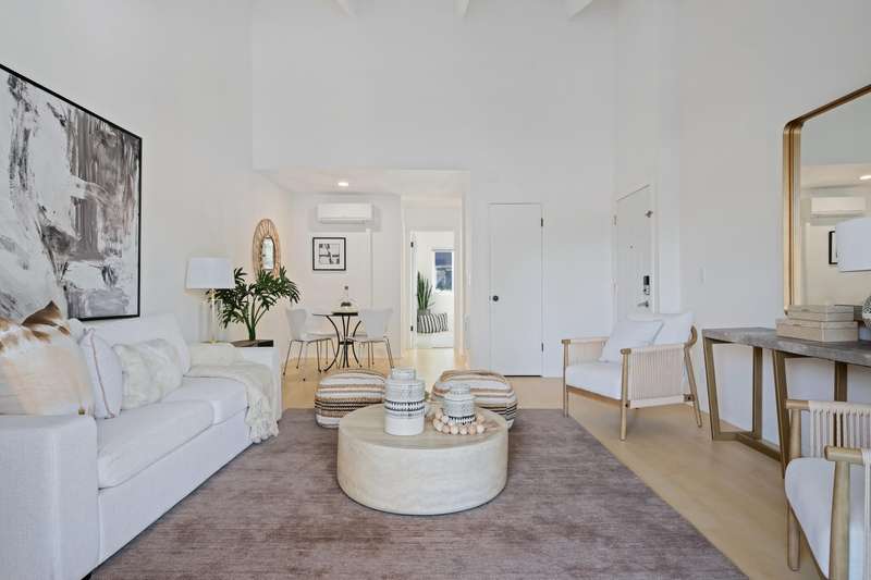 Bright and updated 1BD/1BA condo in Santa Barbara Highlands with soaring vaulted ceilings and sunny southern exposure. The remodeled kitchen features full-height cabinetry, stainless appliances, water filter, recessed lighting, and butcher block counters. Enjoy updated dual-paned windows and sliding glass door, a new electrical panel, all new electrical outlets, split A/C and heat, added attic insulation, and a renovated deck with a privacy screen. HOA allows in-unit laundry for this floorplan. Low HOA fee covers water, trash, sewer, insurance, exterior maintenance, and more. Community offers 2 pools, clubhouse, and a quiet, convenient location between the Mesa and downtown. Includes carport with large storage cabinets. Enjoy mountain views and peaks of the ocean.