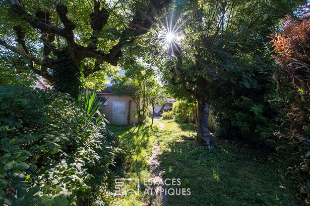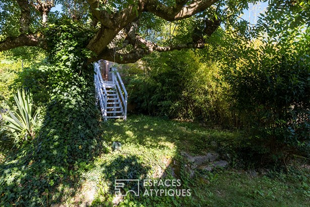 Arranged on two levels, it comprises four main rooms, including two bedrooms, and opens onto a lush garden.
