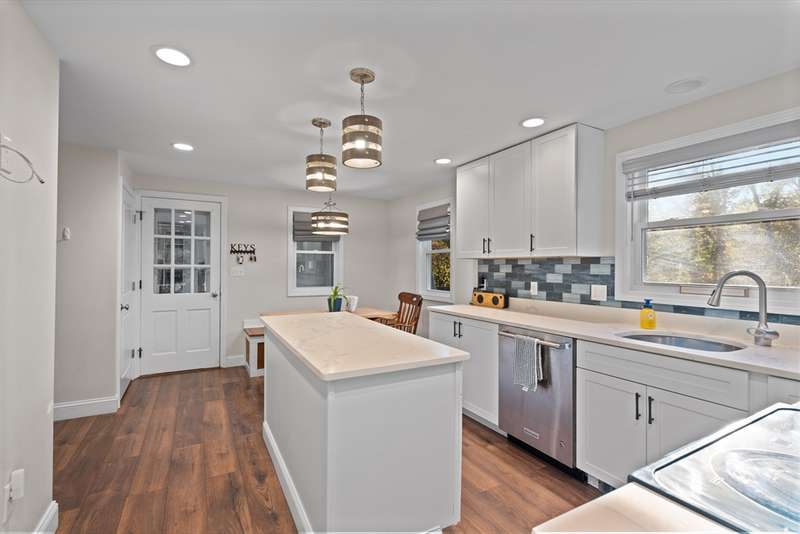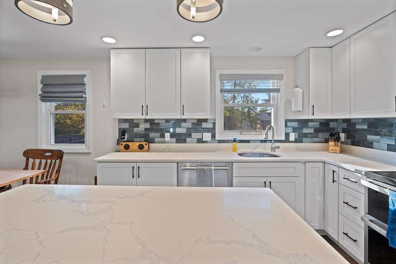 Nestled at 2 Woodbrier Rd, this 4 bedroom 2 sits on a large corner lot at the beginning of a quiet cul de sac. The heart of this home is undoubtedly the updated kitchen, featuring shaker cabinets and quartz countertops, providing a stylish and functional space for culinary creations and gathering with loved ones around the large kitchen island. The living room offers a warm and inviting atmosphere, featuring a fireplace that promises cozy evenings and wood walls that add a touch of rustic charm. On this level you will also find 2 bedrooms and a newly updated bathroom that provides a gorgeous tiled showered offering a serene space to start and end your day. The second floor provides 2 large bedrooms and another renovated bath with a double vanity! On the lower level is a spacious area that can be used as a secondary living space, game room, or office! On the outside is a large level lot with an above ground pool, attached to a walk out deck, perfect for entertaining!