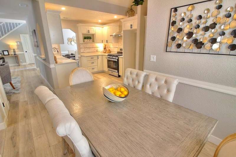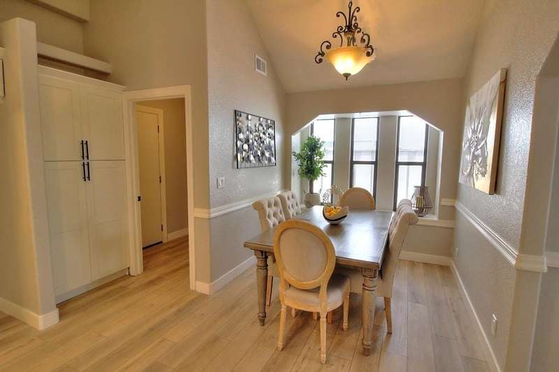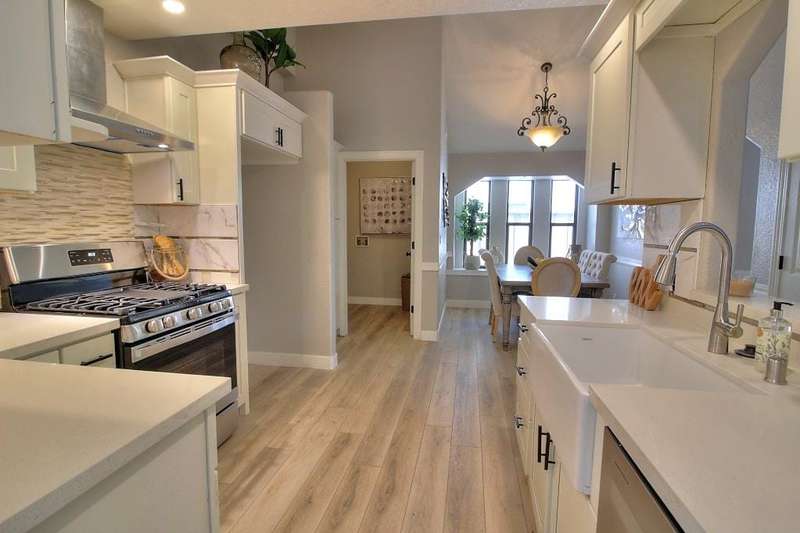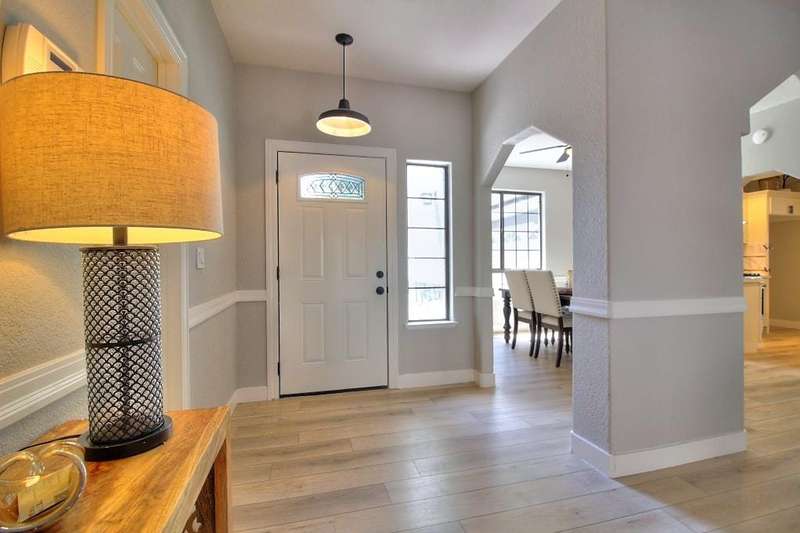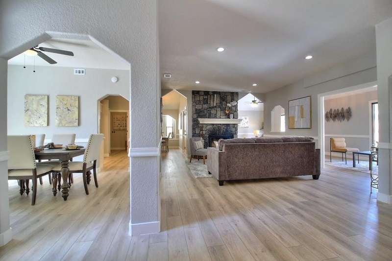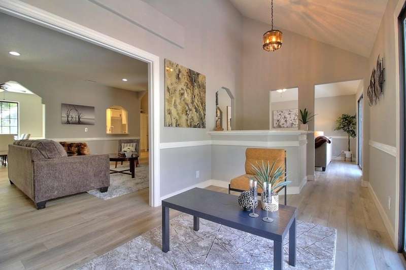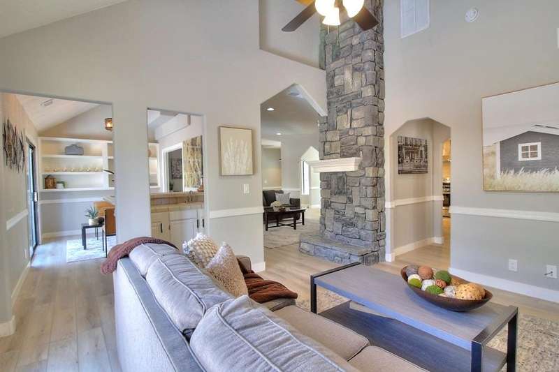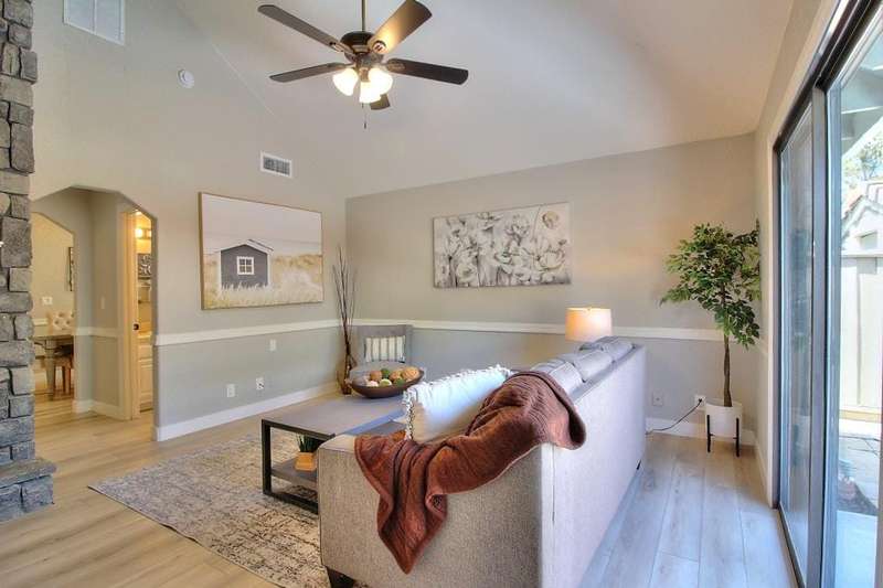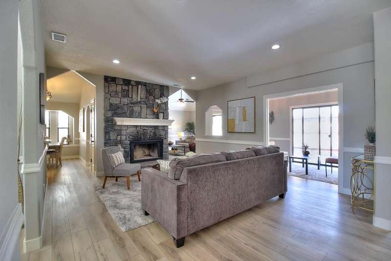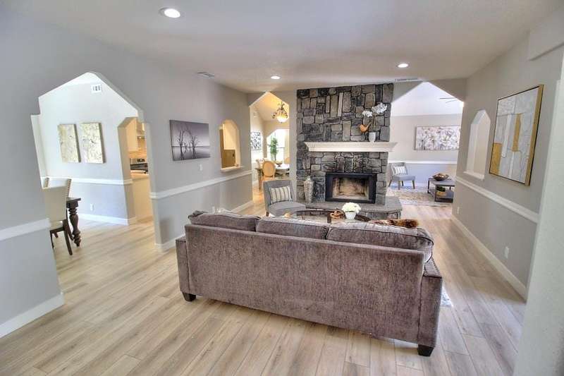Come & fall in love w/ this one-of-a-kind custom home! Blending architectural charm w/ modern upgrades & fresh two-tone paint. This stunning property features arched doorways, vaulted ceilings, & a striking rock fireplace. The remodeled kitchen is a chef's dream w/ new quartz counters, a porcelain farmhouse sink, stainless steel appliances, decorative backsplash, & sleek white maple cabinetry. The layout offers a spacious formal dining room, a cozy breakfast nook, a downstairs half bath, a warm family room, & a formal living room w/ sliding glass doors that lead to the backyard. A bonus room w/ a b/i bar & shelving adds flexibility & style. The luxurious primary suite boasts two sliding doors, vaulted ceilings, a spa-like bathroom w/ a dual vanity, soaking tub, walk-in shower, new toilet, & a generous walk-in closet. Upstairs, you'll find two bedrooms w/ a Jack & Jill bath, plush new carpet, & a versatile loft space. Upgrades t/o include luxury vinyl flooring, 6 baseboards, decorative lighting & plumbing fixtures, new interior doors, & a fully finished garage w/ a pull-down attic access, new garage door & opener, & painted floors. The low-maintenance exterior features fresh concrete paint & two new side gates. Plus, enjoy peace of mind w/ a brand-new HVAC system & water heater!