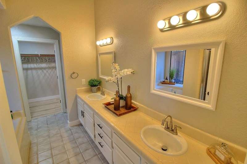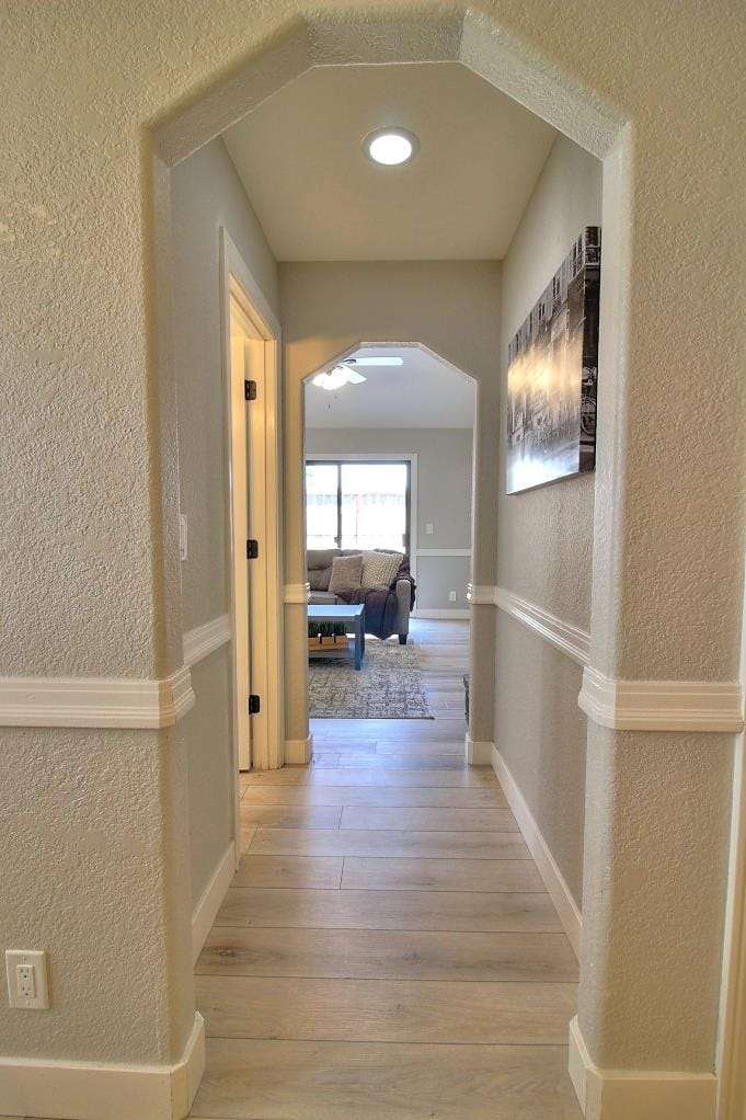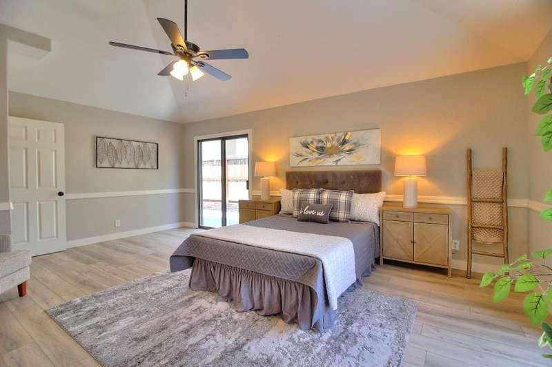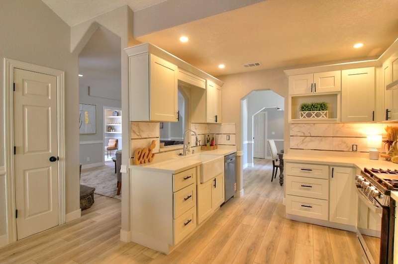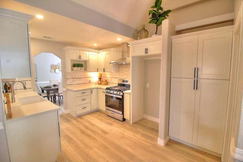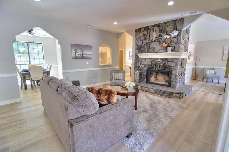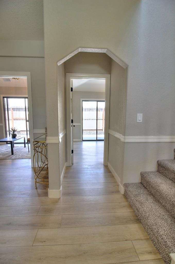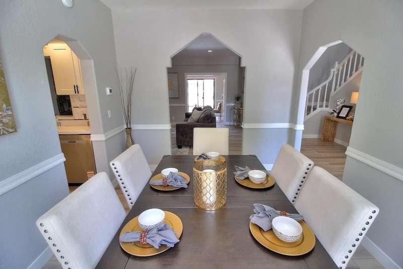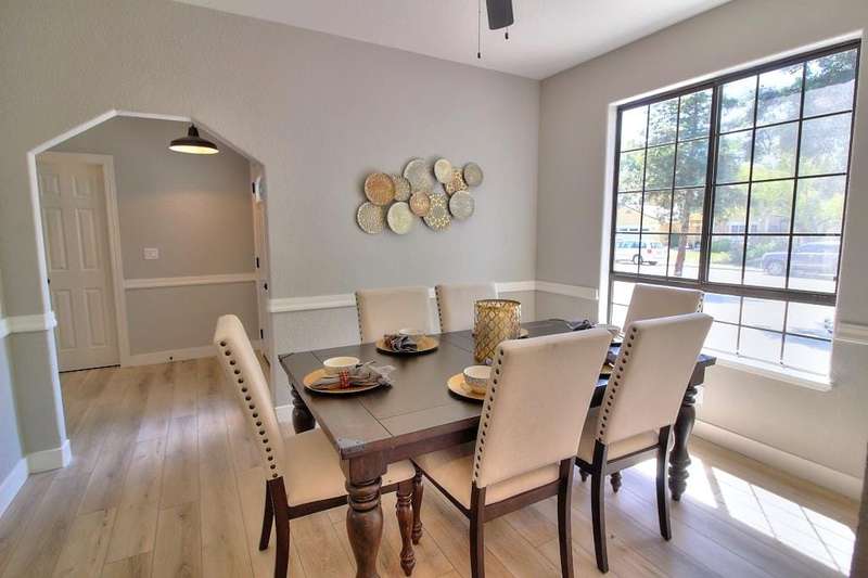 Come & fall in love w/ this one-of-a-kind custom home! Blending architectural charm w/ modern upgrades & fresh two-tone paint. This stunning property features arched doorways, vaulted ceilings, & a striking rock fireplace. The remodeled kitchen is a chef's dream w/ new quartz counters, a porcelain farmhouse sink, stainless steel appliances, decorative backsplash, & sleek white maple cabinetry. The layout offers a spacious formal dining room, a cozy breakfast nook, a downstairs half bath, a warm family room, & a formal living room w/ sliding glass doors that lead to the backyard. A bonus room w/ a b/i bar & shelving adds flexibility & style. The luxurious primary suite boasts two sliding doors, vaulted ceilings, a spa-like bathroom w/ a dual vanity, soaking tub, walk-in shower, new toilet, & a generous walk-in closet. Upstairs, you'll find two bedrooms w/ a Jack & Jill bath, plush new carpet, & a versatile loft space. Upgrades t/o include luxury vinyl flooring, 6 baseboards, decorative lighting & plumbing fixtures, new interior doors, & a fully finished garage w/ a pull-down attic access, new garage door & opener, & painted floors. The low-maintenance exterior features fresh concrete paint & two new side gates. Plus, enjoy peace of mind w/ a brand-new HVAC system & water heater!