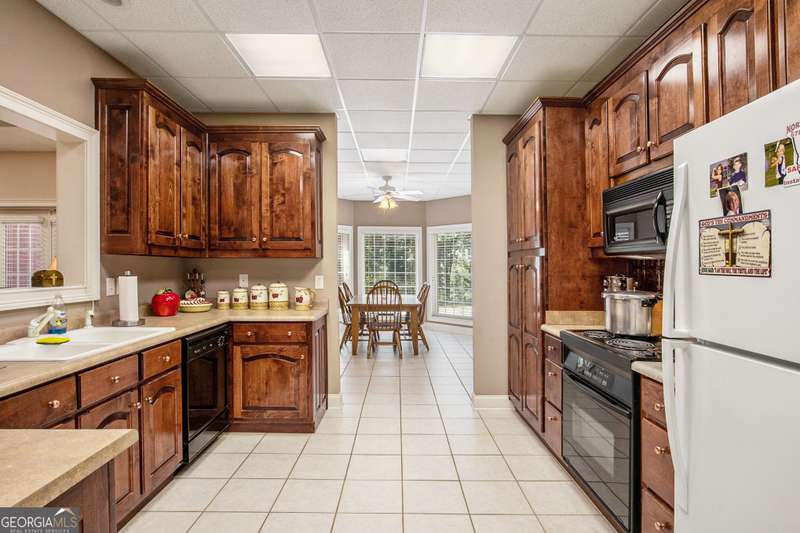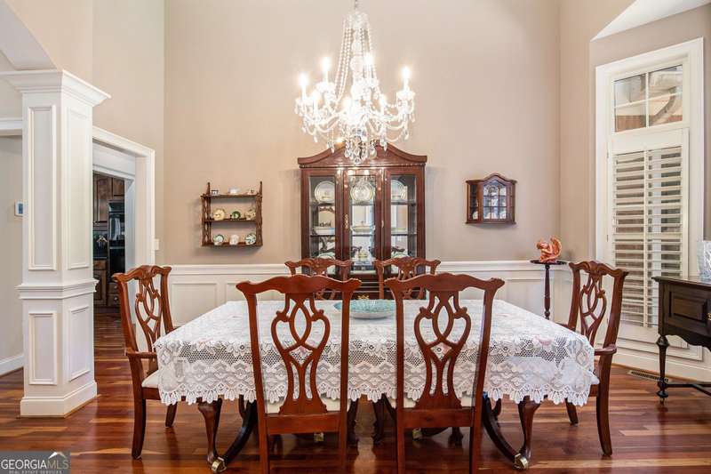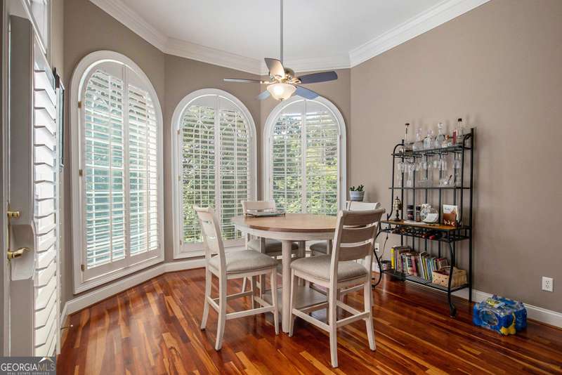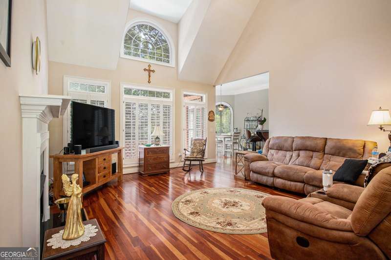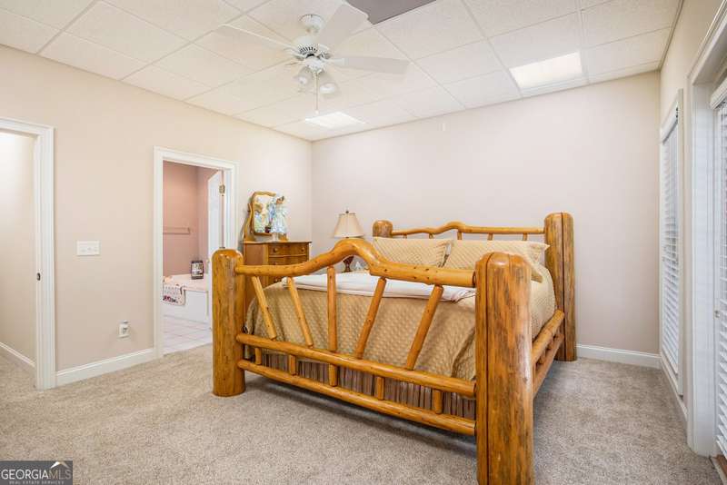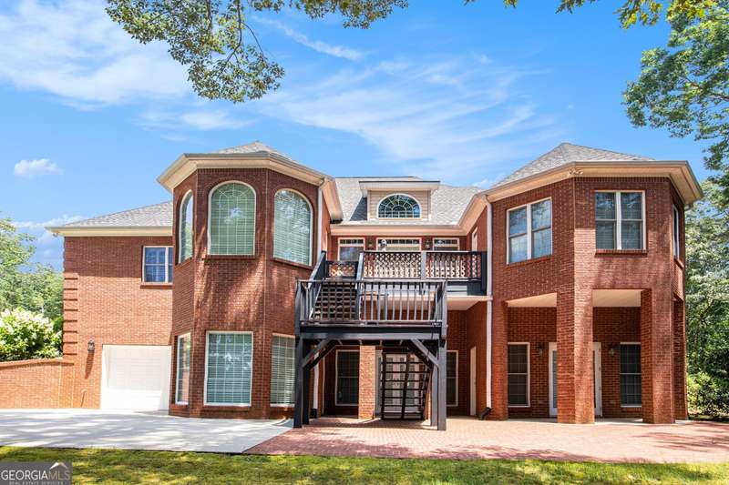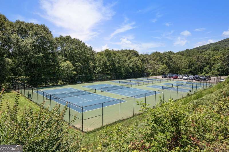STUNNING BRICK HOME beautifully maintained and nestled on 2.65 acres in the prestigious, gated community of The Orchard Golf & Country Club-located in the scenic Northeast Georgia Mountains. Enjoy breathtaking mountain views and privacy in this exclusive setting. As you enter through the elegant leaded glass front door, you're welcomed by gleaming Brazilian cherry wood floors, soaring cathedral ceilings, and a cozy fireplace in the spacious living room. The formal dining room features crown molding and a dazzling crystal chandelier, adding timeless charm and sophistication. Solid wood plantation shutters adorn every window on the main level, offering both beauty and functionality. The kitchen is a chef's dream with rich alder wood cabinetry, striking granite countertops, a copper sink, and matching backsplash. A sunny breakfast room opens to the rear balcony-perfect for morning coffee with a view. The primary suite includes a luxurious en-suite bath and large walk-in closets, with direct access to the balcony. Two additional bedrooms share a full bath, and there's also a versatile den or library just off the foyer. The terrace level offers a full second living space, complete with a kitchen, bedroom, two full baths, a craft/safe room, and a family room with a gas log fireplace and French doors that open to a brick patio. This level also includes an additional garage with an overhead door-ideal for a golf cart, boat, or workshop. The main-level two-car garage features a brand-new epoxy floor, extra storage, an upgraded electrical panel, and generator hookup. The beautifully landscaped yard includes an underground irrigation system, abundant concrete parking, and charming extras like a treehouse tucked in the woods for endless outdoor fun. The property borders the #2 fairway and includes a peaceful creek along the back. Additional highlights: * Recently painted exterior trim * Roof is only 6 years old * 500-gallon buried propane tank for heating, cooking, and fireplace * Move-in ready and meticulously maintained Select furnishings may be available for purchase. Don't miss your chance to own this exceptional home in one of North Georgia's most desirable communities.
