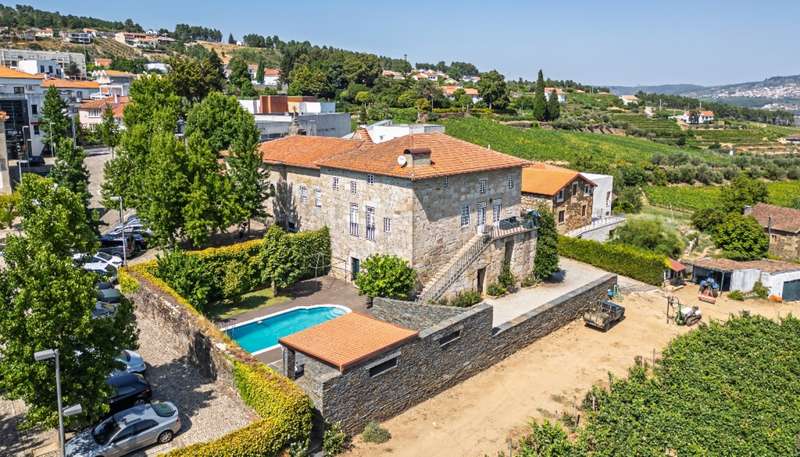 Located in the heart of the town, in the heart of the historic center, next to the beautiful, centuries-old Town Hall building, this quinta covers around 10 hectares. Most of them, around 7.5 hectares, have official DOC Douro vineyards which produce white and red grapes characteristic of the Douro region, destined for the production of DOC and Port wines of excellent quality. There is also an olive grove of around 2 hectares and various fruit trees, especially citrus fruit. At the top of the property is an imposing and noble 16th century manor house in excellent condition, with all the architectural and historical features well preserved.From the entrance halls, through the social rooms and the two kitchens that support the life of this manor house, to the Chapel where the two naves that differentiate the periods in which it was built stand out, we can find all the atmosphere and comfort that make us travel from the beginnings of its beautiful history to the present day. This agricultural property has ample potential for its own production of quality wines, with a registered trademark and a winery. It also enjoys excellent access, as well as being in the heart of the Douro Demarcated Region.It is also located in the heart of the Douro Demarcated Region, in the center of the town of Sabrosa, which is steeped in history and the birthplace of Miguel Torga - one of Portugal's most prestigious poets - and Fernão Magalhães, the legendary and heroic navigator. This Quinta thus benefits from excellent conditions for the development of a good, sustainable tourism project, and is a unique investment opportunity in one of the world's most renowned wine regions, the Douro Valley, just 60 minutes from Porto. CHARACTERISTICS: Plot Area: 98 407 m2 | 1 059 244 sq ft Deployment Area: 660 m2 | 7 104 sq ft Building Area: 1 190 m2 | 12 809 sq ft Bedrooms: 9 Bathrooms: 8 Energy efficiency: E FEATURES: 16th century manor house XVI; Swimming pool; Cellar; Warehouse; Wine, olive oil and fruit production.