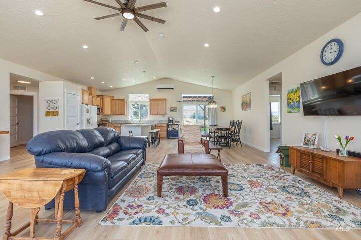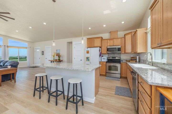 Own a little piece of paradise with room to breathe and panoramic views. This 2 year old custom home features a modern, open concept floor plan with thoughtful upgrades throughout. The great room and kitchen feature vaulted ceilings with lots of natural light and ample space for entertaining or enjoying the mountain and valley views. The master suite checks all of the boxes with a large walk in closet, dual vanities and a separate soaker tub. Complete with an extra large two car garage, RV parking with plug in, RO drinking water system and Culligan water filtration system, this home has it all. Outside features two private patio areas to relax and enjoy the views, along with over $20K in recently completed, low maintenance professional landscaping. With just under 5 acres of land, the possibilities are endless to develop the rest of the property according to your needs. The electrical is already set up to build a shop, and there is plenty of room for horses, chickens and a large garden space.
