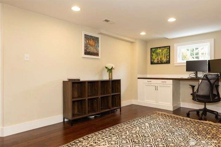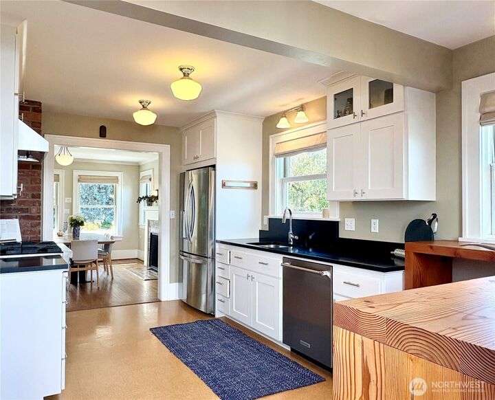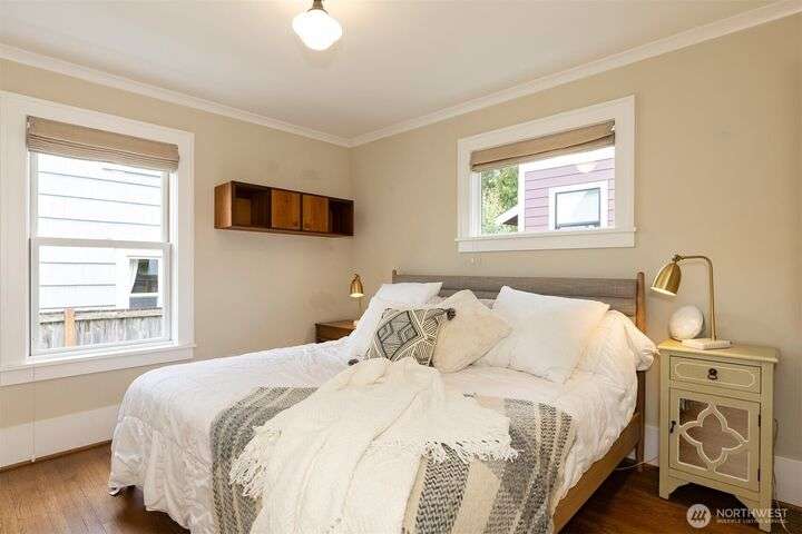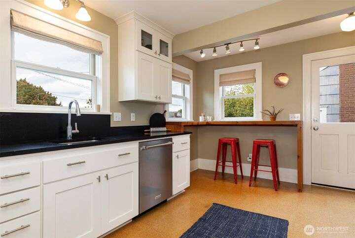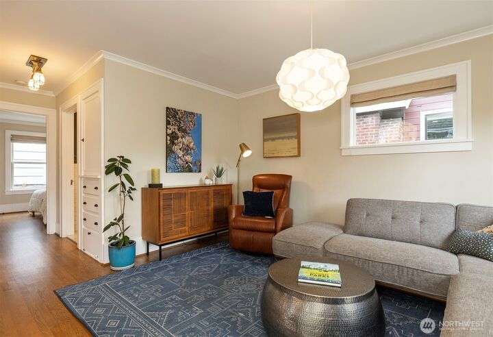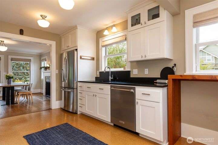 This happy, sun-drenched corner lot hosts the sweetest craftsman in the greatest location. With a tidy retaining wall & front stoop, enter the front door to a spacious and open dining, kitchen & living room w/ large wood fireplace, south-facing windows & updated kitchen w/ coffee bar. This home is primed for one-floor living with main floor bed and bath. Upstairs to a landing/office & separate bedroom. Downstairs is a media room w/ built-in home office, a 3rd bed + 3/4 bath, laundry space with tons of closets & attached garage (w/ EV charging). Enough yard space to enjoy gardening/hosting but not so much you give up weekends weeding! Remodeled in 2008 w/updated systems - this is the well located, turnkey home you've been waiting for.