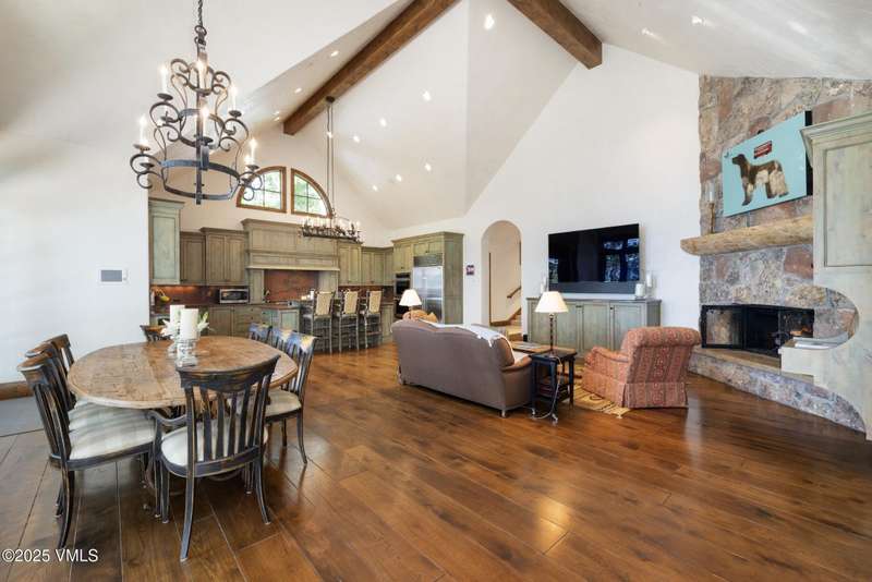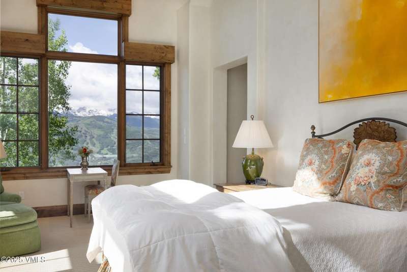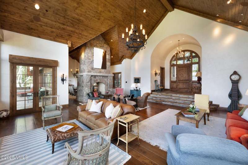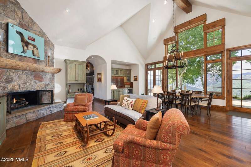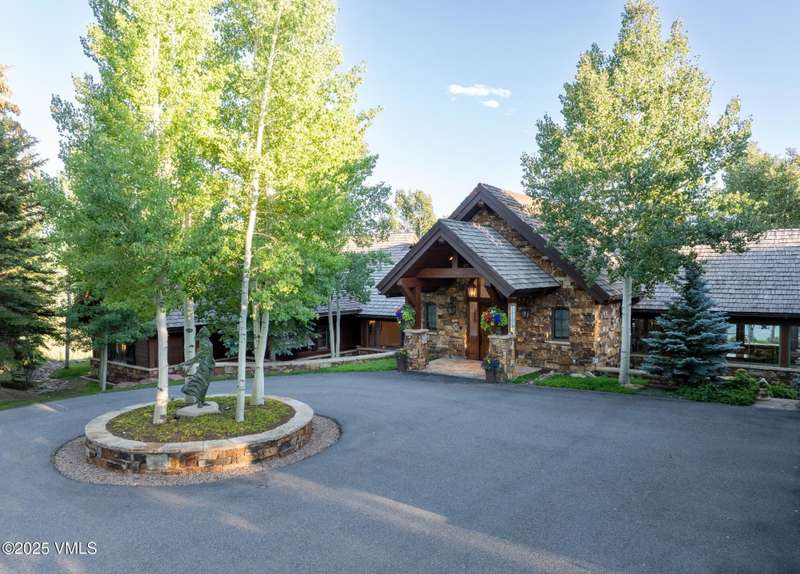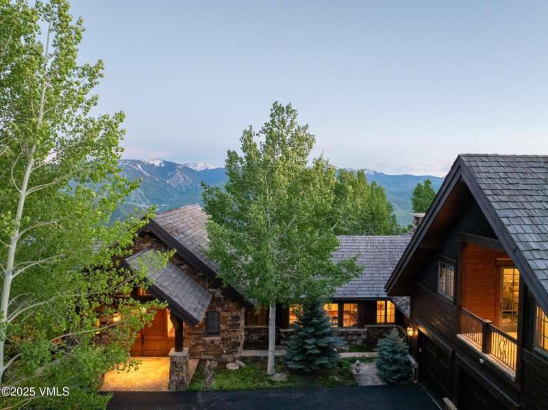 Perched on 4.5 private acres within the exclusive gated community of Mountain Star, this elegant mountain residence offers breathtaking panoramic views of Beaver Creek and the sweeping valley below. Bordered by protected open space, the setting is as tranquil as it is dramatic - Colorado mountain living at its finest. Designed with timeless craftsmanship and classic mountain style, the home features vaulted ceilings, rich wood accents, and expansive windows that frame the distant peaks of the Sawatch Range. The spacious great room centers around a striking two-sided stone fireplace, setting the tone for warmth and grandeur. This ranch-style layout embraces main-level living, with the primary suite, office, formal dining room, and two guest bedrooms thoughtfully located on the main floor. A well-appointed kitchen flows effortlessly into a cozy breakfast nook and family room - perfect for everyday living and family gatherings. Two additional bedrooms upstairs share a private balcony, offering ideal separation for guests or family. Multiple outdoor living spaces invite you to soak in serene summer evenings beneath the aspen canopy, while the seamless indoor-outdoor flow enhances relaxation year-round. Conveniently located just minutes from Avon and the vibrant offerings of the Vail Valley, this home also includes the option for a coveted Vail Mountain Club social membership, complete with ski locker access for effortless connection to world-class skiing. Additional highlights include a brand new Brava synthetic roof installed in October 2025. The home is located within a community overseen by an on-site caretaker, providing year-round peace of mind and enhancing the pristine environment. Considered one of the premier homesites in all of Mountain Star, this property offers an extraordinary blend of luxury, privacy, and natural beauty - an exceptional opportunity in the heart of the Vail Valley.