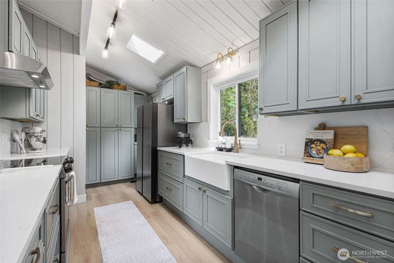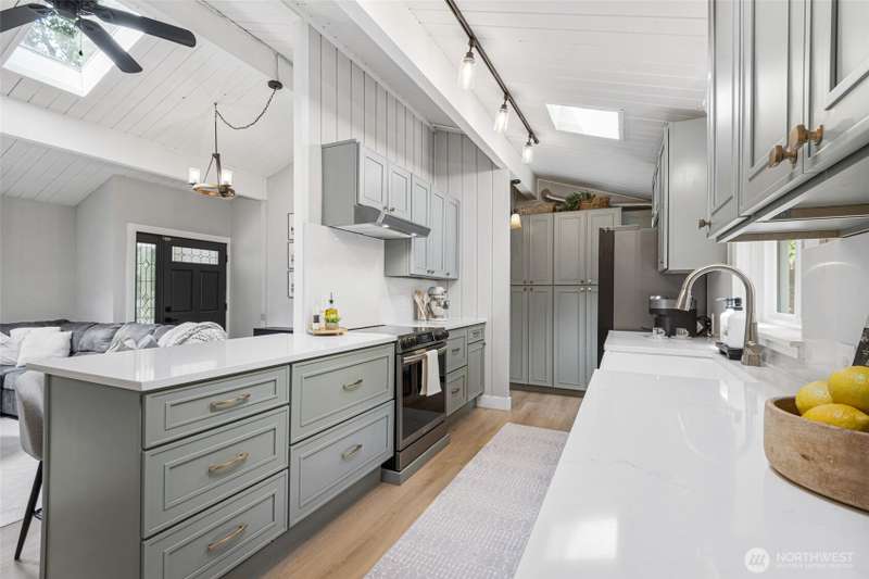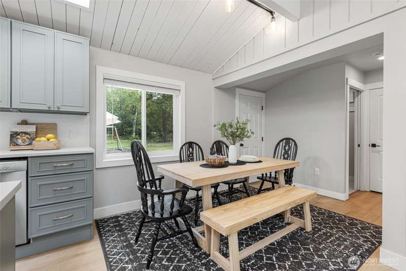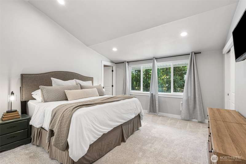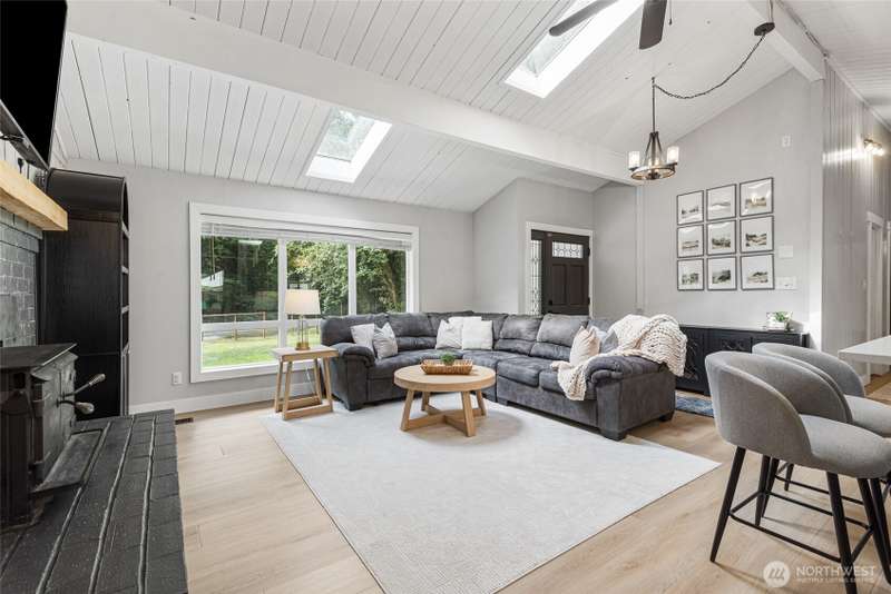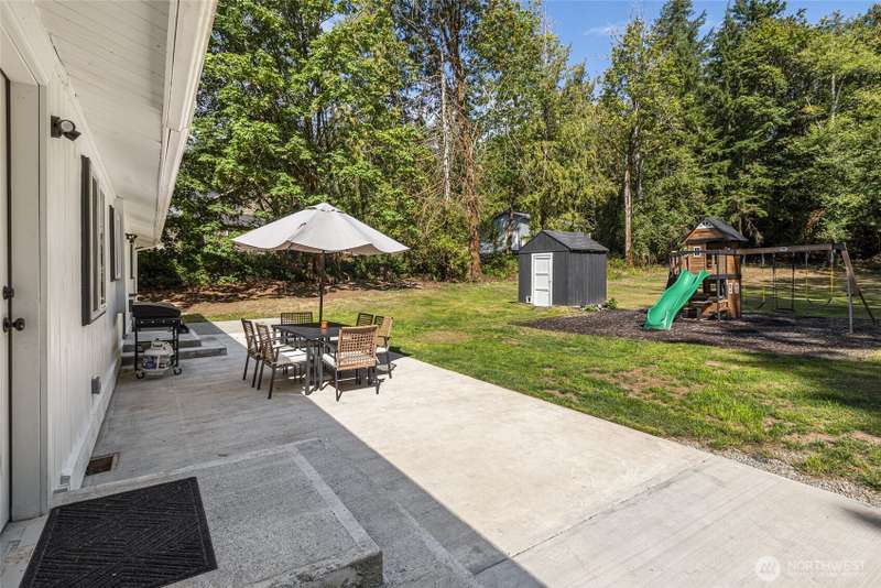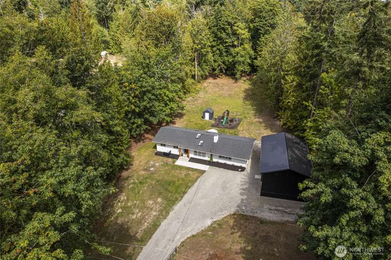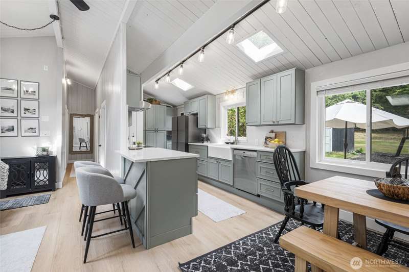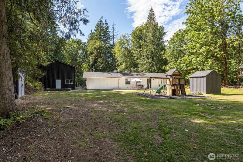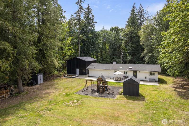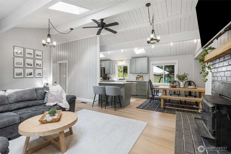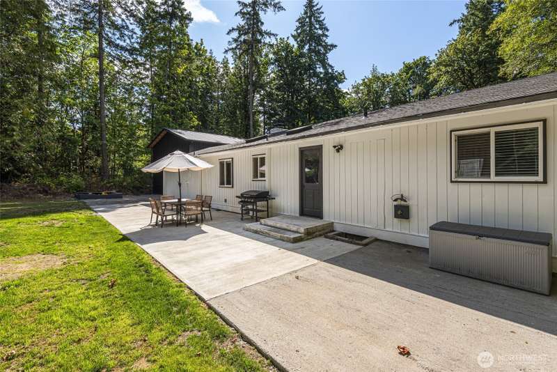 Gig Harbor! Over an acre in the sought-after Crescent Valley community with beach access to Crescent Lake! This inviting 3-bed/2-bath home blends cabin charm with modern living. The open kitchen, dining, and living spaces help to create togetherness with abundant natural light. Updates include a 960 sq ft detached shop (perfect for gym or hobbies), remodeled kitchen with high-end quartz counters and seamless backsplash, new flooring, and a professional water filtration system. The primary suite retreat boasts dual closets, convenient laundry, and a spa-like bath with a stunning 7-ft dual rain shower and space for a second sink. Step outside to a private, tree-lined backyard with an expanded deck—ideal for relaxation, play, or entertaining.