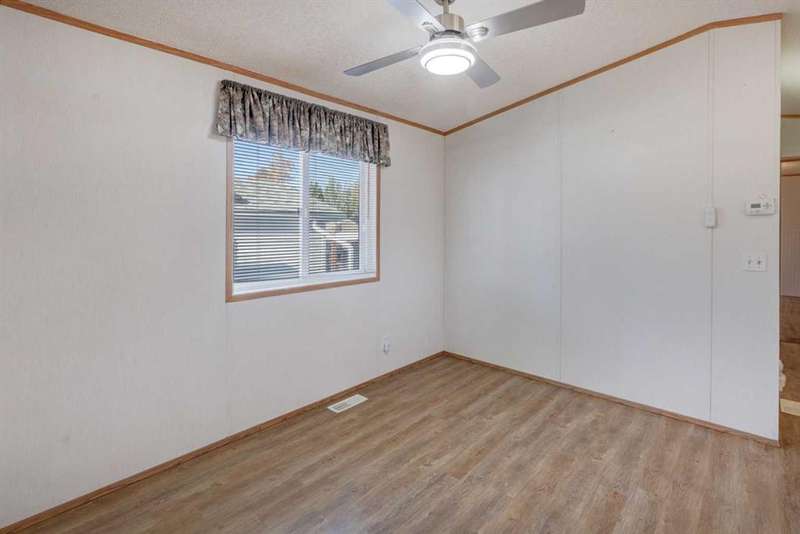 What a fantastic opportunity to own your own home on your own TITLED LOT with a detached garage! NO condo fees and NO lot fees! Situated on 43x100 FT lot within walking distance to schools and recreation facilities, this 3 bedroom 2 bathroom home is waiting for you! There is 1178 sf of living space in this 2000 Moduline featuring an open concept floorplan. The kitchen has upgraded granite countertops and all appliances are included, even the washer and dryer. The home has beautiful large windows facing West keeping your space bright with all the natural light. In summers you have the luxury of central air to keep you cool! The property has been fitted for a wood stove if you prefer using it as a means of heat in the winter months. The primary bedroom is large enough to accommodate a king bedroom suite and there is a full en suite with a soaker tub. Adjacent to the second and third bedrooms is a full guest bathroom also with granite adorning the vanity. If you prefer spending more of your time outdoors, perhaps the covered deck has caught your eye. The yard has inground sprinklers and room for a garden or space to throw around the ball (Baseball fever right now). The detached garage can be used for parking or a shop for hobbies, as there is additional room on the paved parking pad for 2 vehicles. This home is available for a quick possession. I have included the floorplan in the photos for your convenience. NOTE: The shingles on home and garage new as in 2025. Call your Realtor® to book a showing for this property and move in before its officially winter!