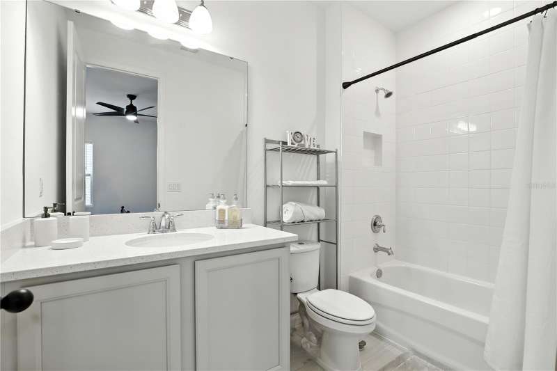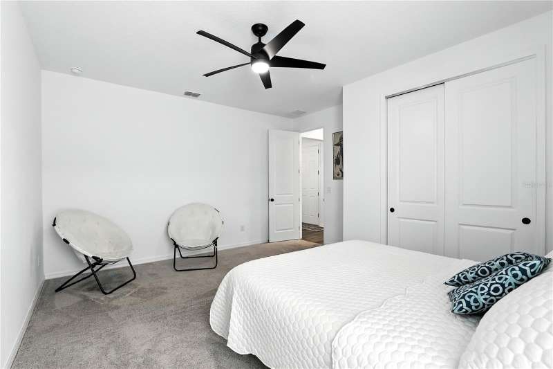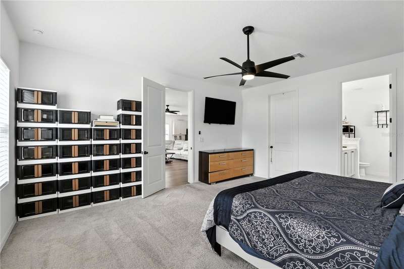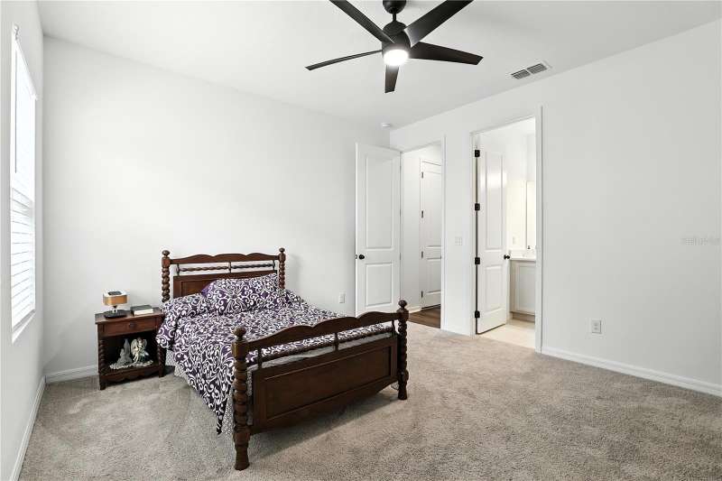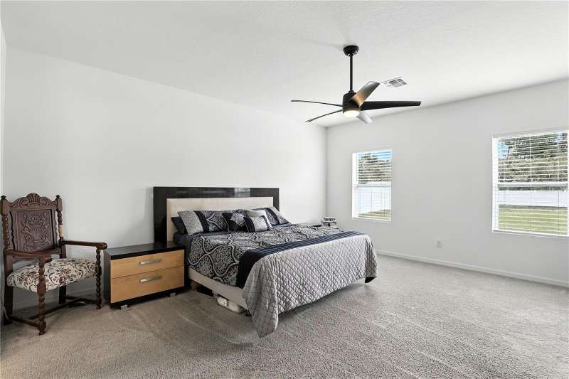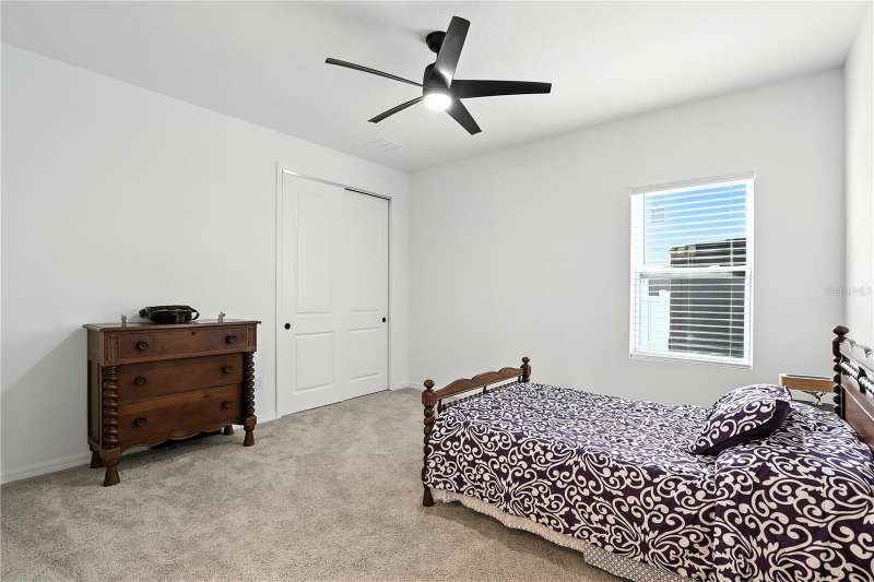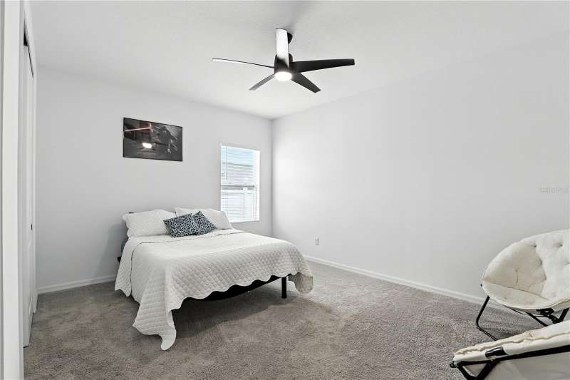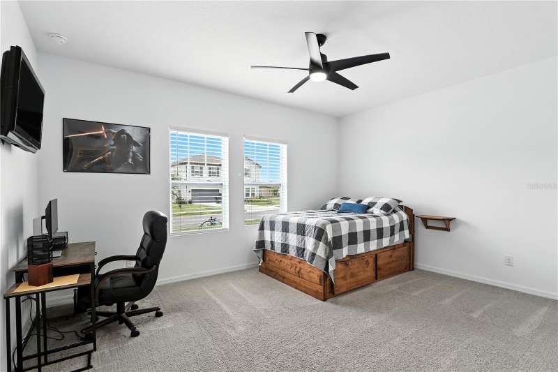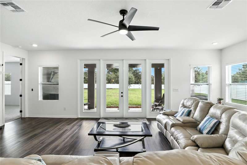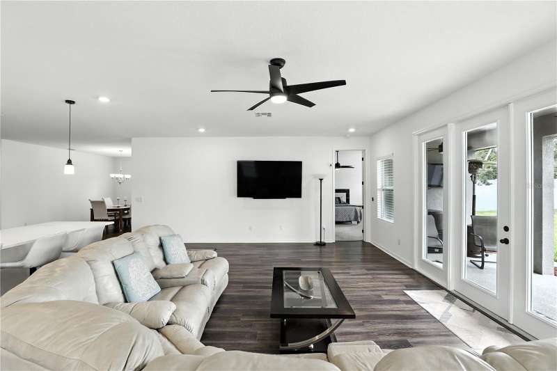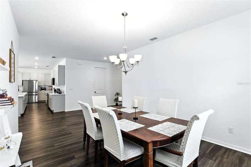 Welcome to 1647 Meadowlark Lane – Built in 2023, this beautifully designed 4-bedroom, 3-bath, 3-car garage home offering 2,691 sq. ft. of modern living space set on an oversized .37-acre lot. From the moment you arrive, the home’s stone-accented exterior, maturing landscaping with auto irrigation system, long lasting low maintenance vinyl fencing, and three car wide driveway set the tone for both elegance, convenience and longevity. Step inside to a welcoming foyer, tall ceilings with views straight through to the backyard, immediately showcasing the open and airy design, the design is a thoughtful split floor plan providing both comfort and privacy for residents and guests. Upon entry, to the left of the foyer are two spacious guest bedrooms with a full bath. To the right, access to the garage, inside laundry room and junior suite feature ensuite bath with quartz countertop and shower tub combo creating a perfect private space for guests. Proceeding to the heart of the home, the expansive great room and chef’s style kitchen create the perfect gathering space. The kitchen features an oversized 12-foot island with quartz countertops, white shaker cabinets, stainless steel appliances, stovetop with exterior exhaust venting, and a generous walk-in pantry. An adjacent open formal dining area makes entertainment seamless, or this area can be used as a general flex space. Enjoy Florida’s indoor-outdoor lifestyle with double French doors and a wall of windows leading to a covered lanai overlooking the expansive back yard. With green space behind the property, the backyard offers coveted privacy and endless potential—whether you envision a pool, summer kitchen, or custom garden, this area is large enough for all three! The primary suite is a private retreat tucked away off the great room, featuring en-suite bath with a large, fully glassed walk-in shower with rain shower feature, large window for natural light and linin closet and dual sink vanity, the owner’s retreat also includes a large walk-in closet with custom built-ins. Additional features of this home include luxury vinyl plank flooring in the main living areas, carpeted bedrooms, ceiling fans, recessed and pendent lighting, and abundance of natural light throughout. Perfectly located, this home is within walking distance to shopping, casual dining and just minutes to I-4 for an easy commute. For recreation, you’re a short drive from world-famous Volusia County beaches, the ultimate Florida lifestyle is waiting, schedule your private showing today!
