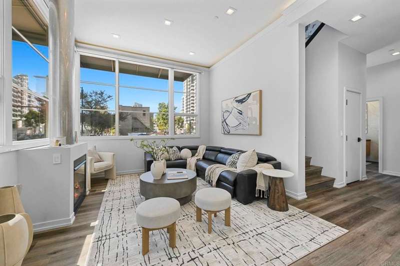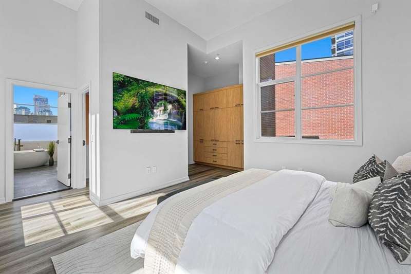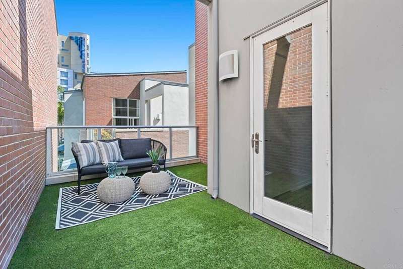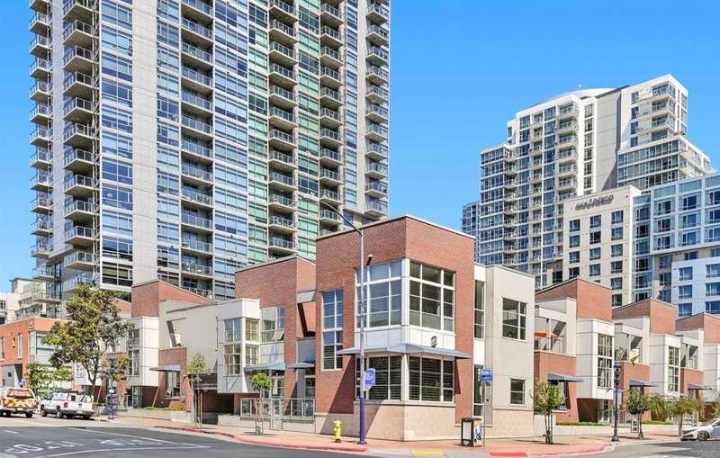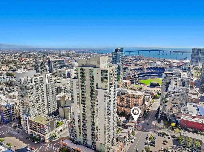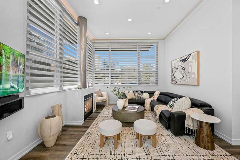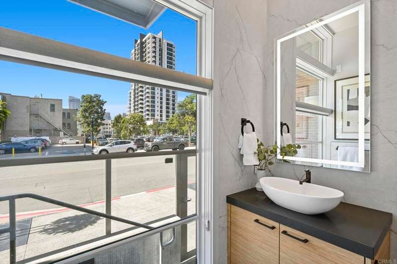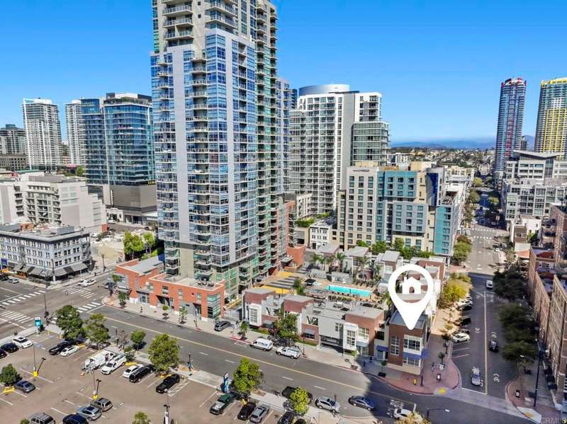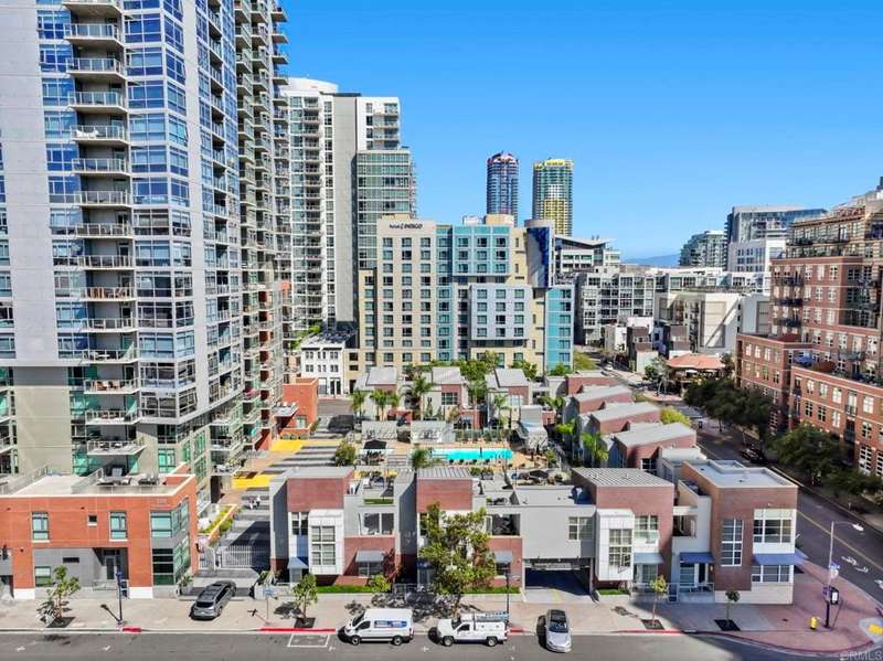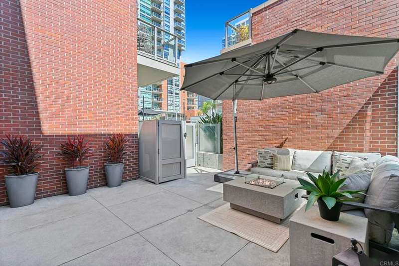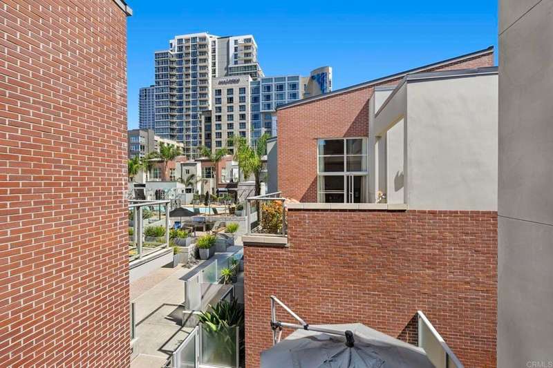 Rare Opportunity at The Mark - Premier Townhome - One of only 11 townhomes at The Mark, this corner residence is among the most covetedfeaturing one of the largest floor plans and most private patios in the community. Fully renovated with over 1,700 sq. ft. of modern living space, this 2 bed / 2 bath home is a rare East Village find: on a quieter street tucked away, yet just steps from Petco Park, dining, and nightlife. Vaulted ceilings, expansive windows, and automated Hunter Douglas blinds create a bright, inviting ambiance. The chefs kitchen is a showpiece with Sub-Zero refrigeration, Miele Combi Steam double ovens, custom cabinetry, and an oversized quartz island designed for entertaining. The spacious primary suite offers a walk-in closet, spa-style bath, and soaking tub. Every detail has been thoughtfully upgradedfrom custom stone bathroom floors and showers to built-ins, a Murphy bed, and plentiful storage throughout. Enjoy glimpses of Petco Park right from your home. And while in the heart of it all, youll feel tucked away in your two-story retreat, elevated just above street level for a sense of privacy and escape. Convenient dual access from the street or private interior courtyard leads directly to the elevator, parking, and amenities. The home includes two garage parking spaces and a private storage unit. The Mark itself is renowned for its luxury resort-style offerings: a lap pool, spa, BBQ area, fitness center, 24-hour concierge, and impeccably maintained grounds. This exquisitely finished turnkey townhome stands apartperfect for those seeking the ideal balance of urban energy, privacy, and refined comfort.